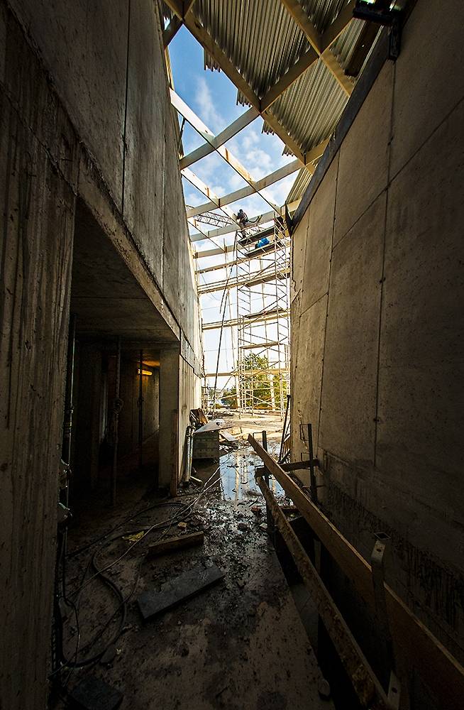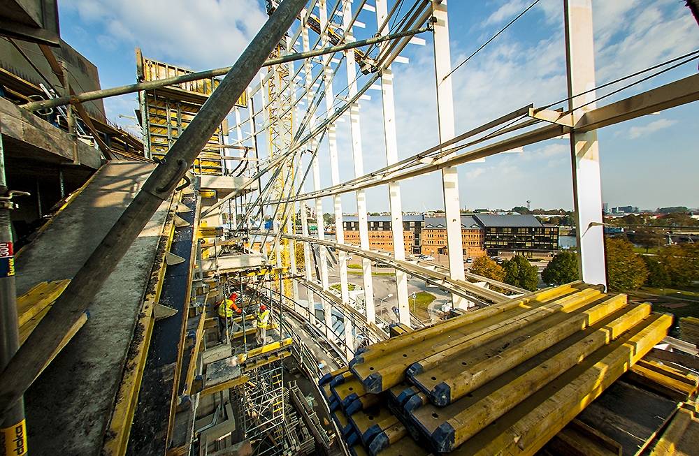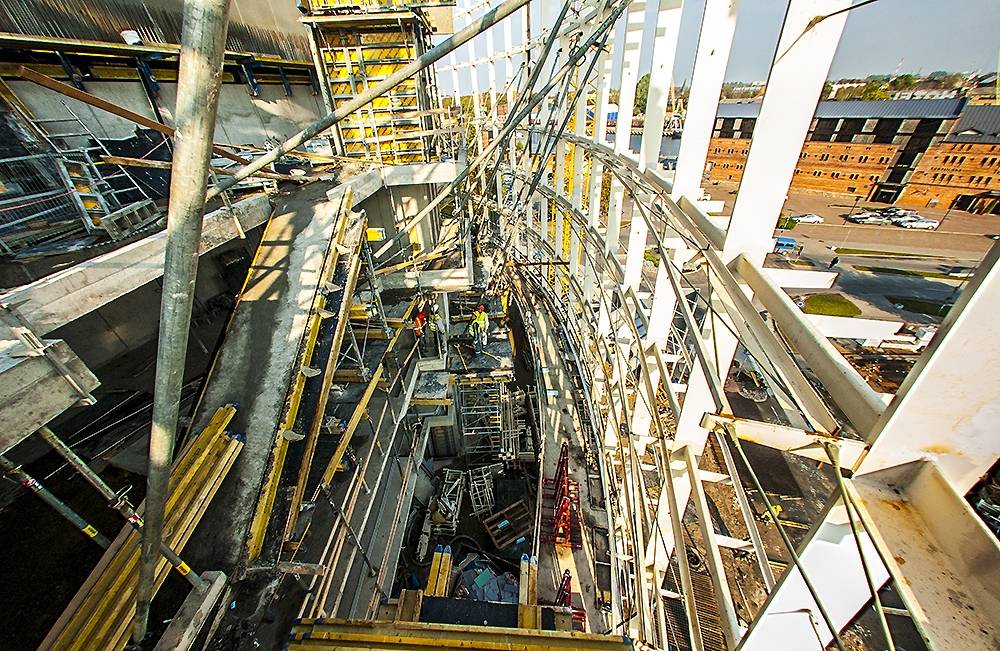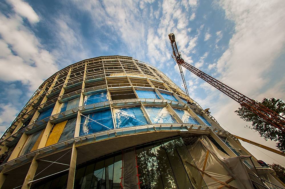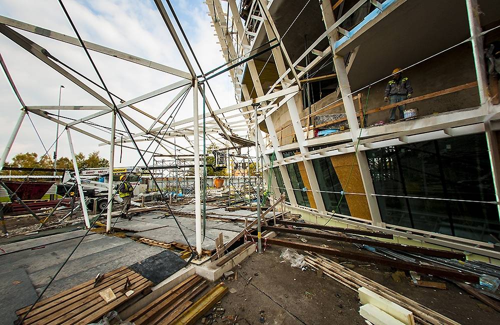 FOTO no Liepājas koncertzāles “Lielais dzintars” būvniecības procesa.