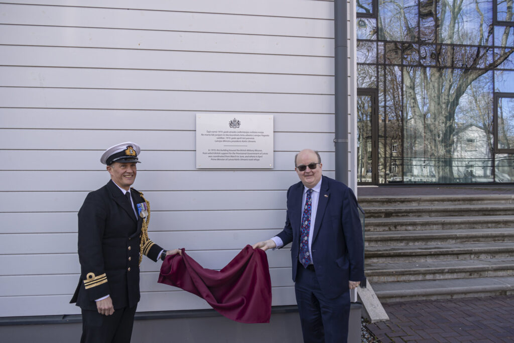FOTO: Liepājā atklāj piemiņas plāksni Lielbritānijas atbalstam Latvijas cīņā par brīvību un neatkarību