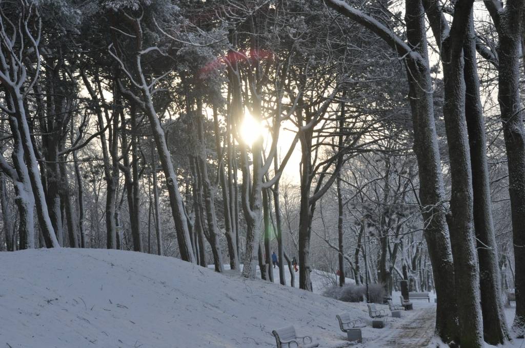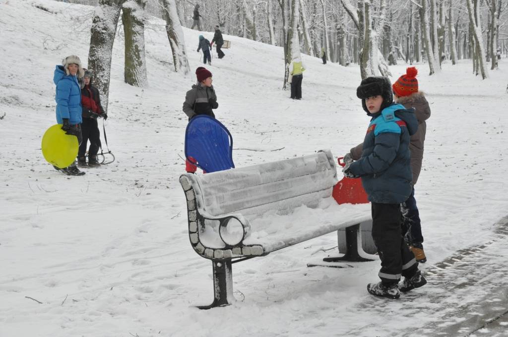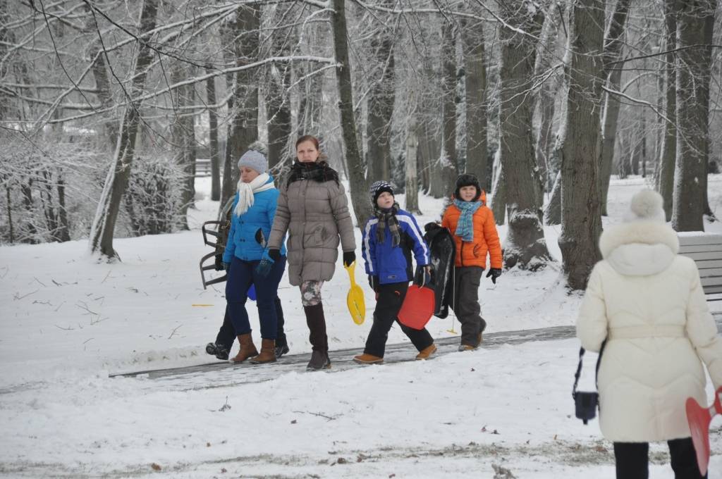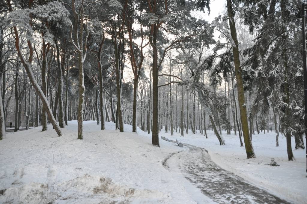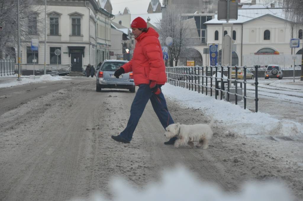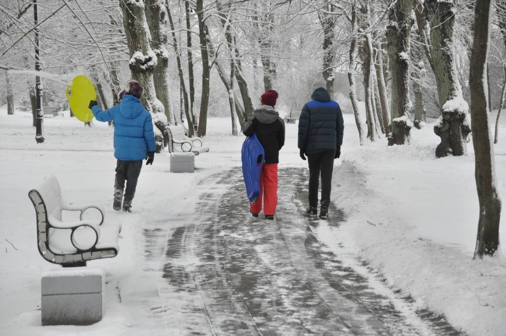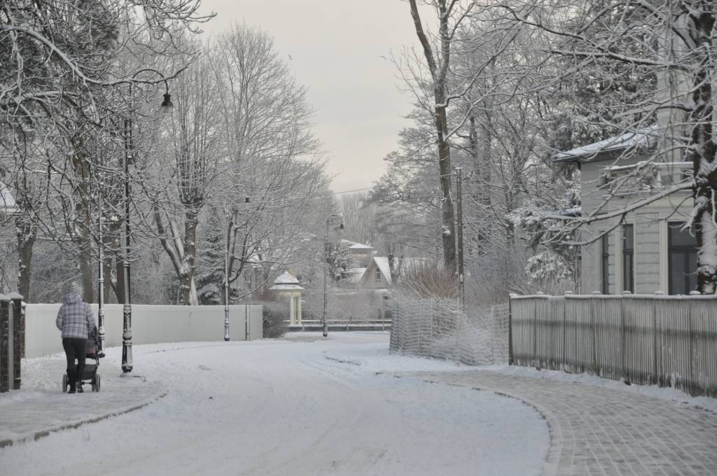 FOTO: Liepājā iedzīvotāji priecājas par sniegu; sniegputeni prognozē arī Vecgada naktī