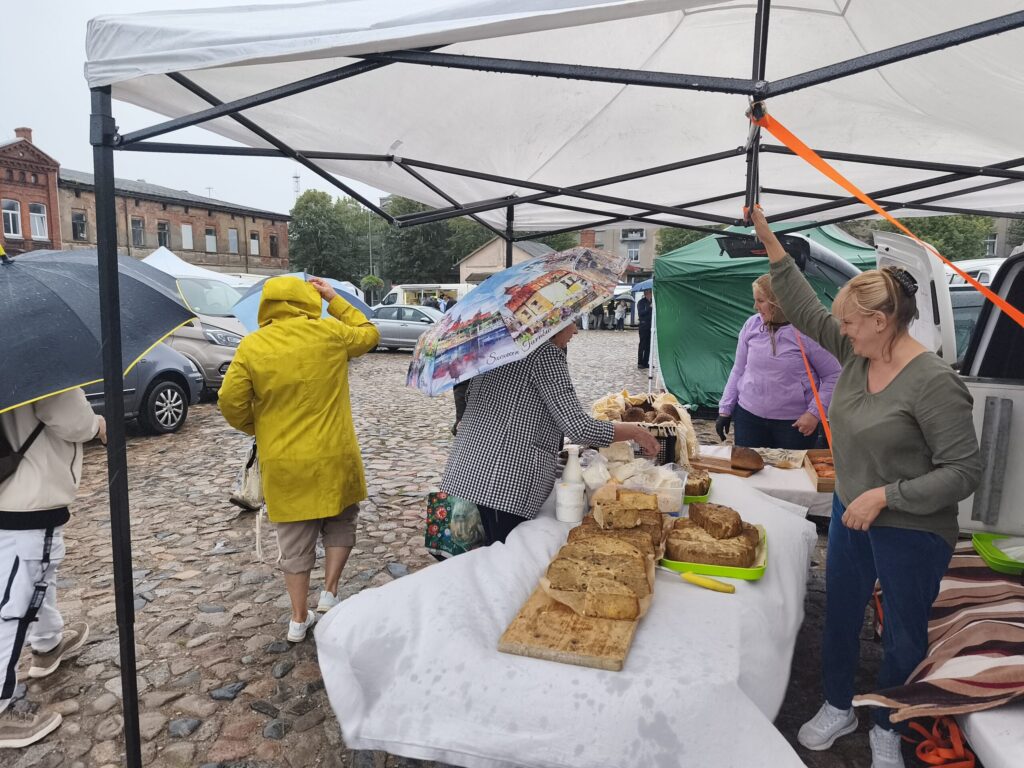 Ceturtdien, 11. septembrī, lietus un spēcīgs vējš nesaudzēja Jaunliepājas vakara tirdziņa pircējus un tirgotajus, kur pirmo reizi notika Maizes karaļu svētki.