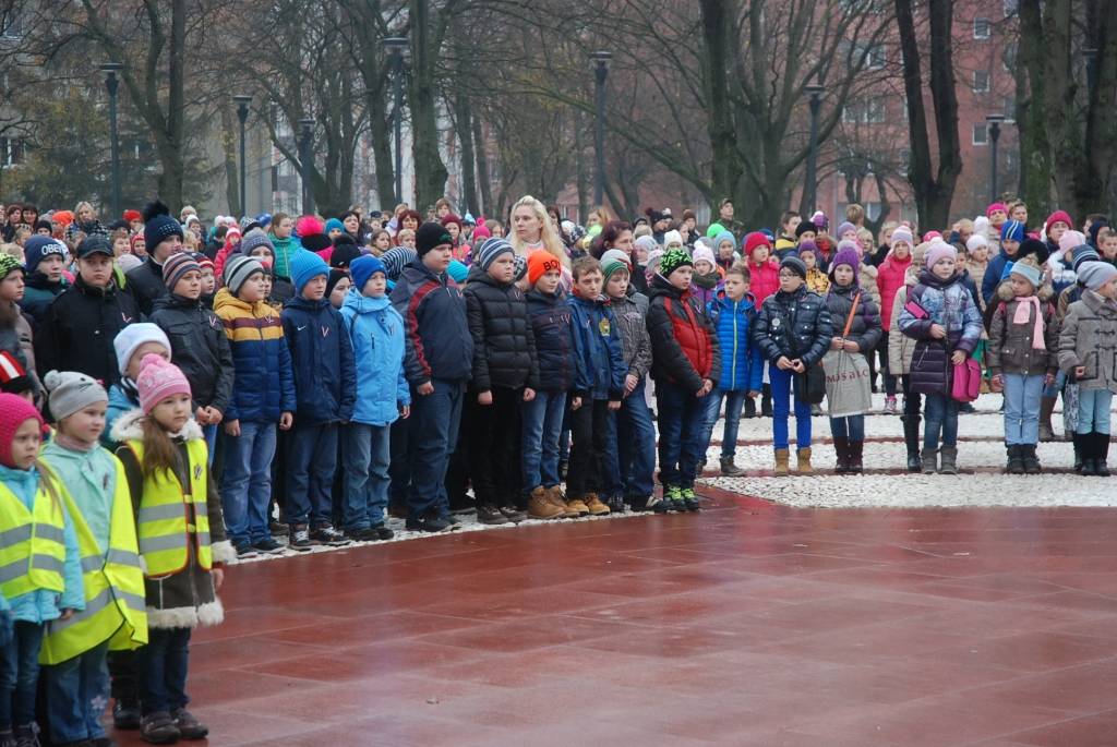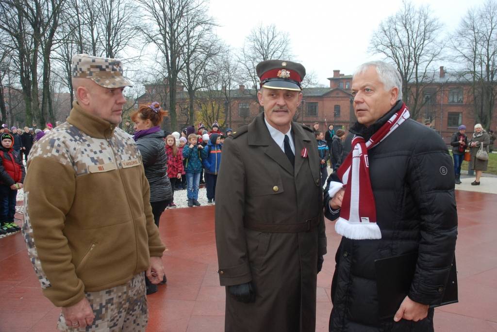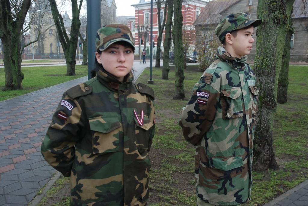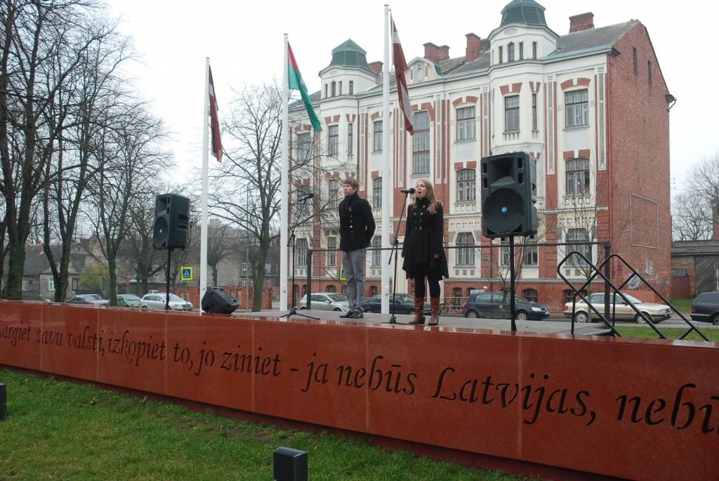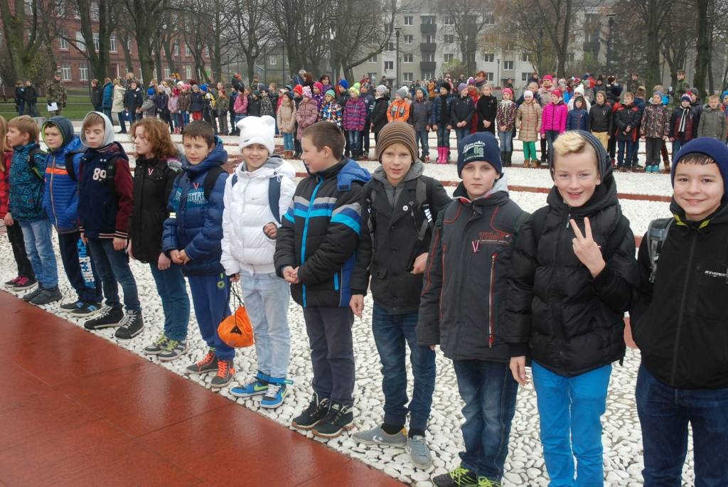 Lāčplēša dienā J.Čakstes laukumā Liepājā uz svinīgu akciju “Mēs par Latviju!” šodien pulcējās skolēni, kur viņiem stāstīja par Brīvības cīņu nozīmi Latvijas vēsturē. Liepājas Jaunsargu vienība demonstrēja arī ierindas mācību.