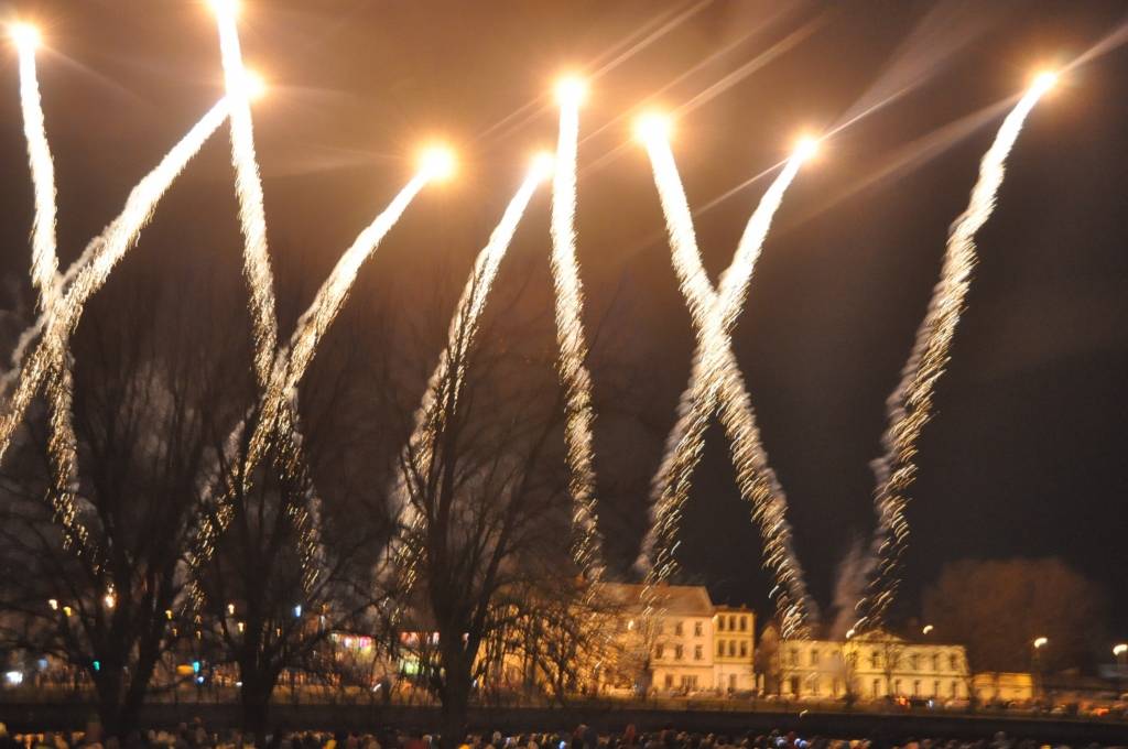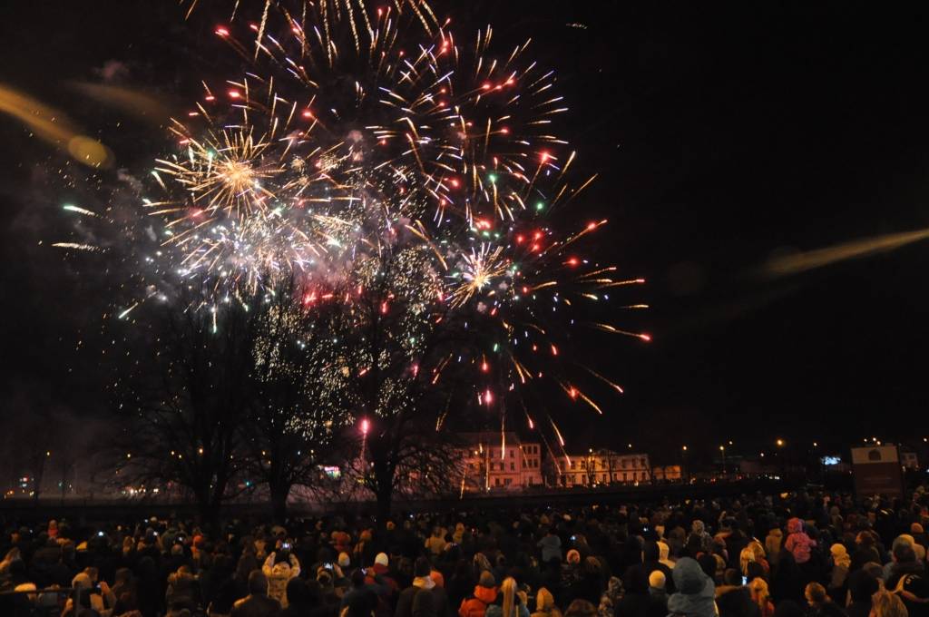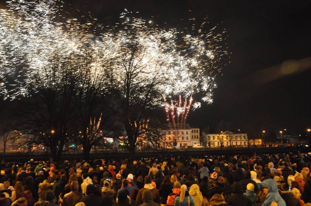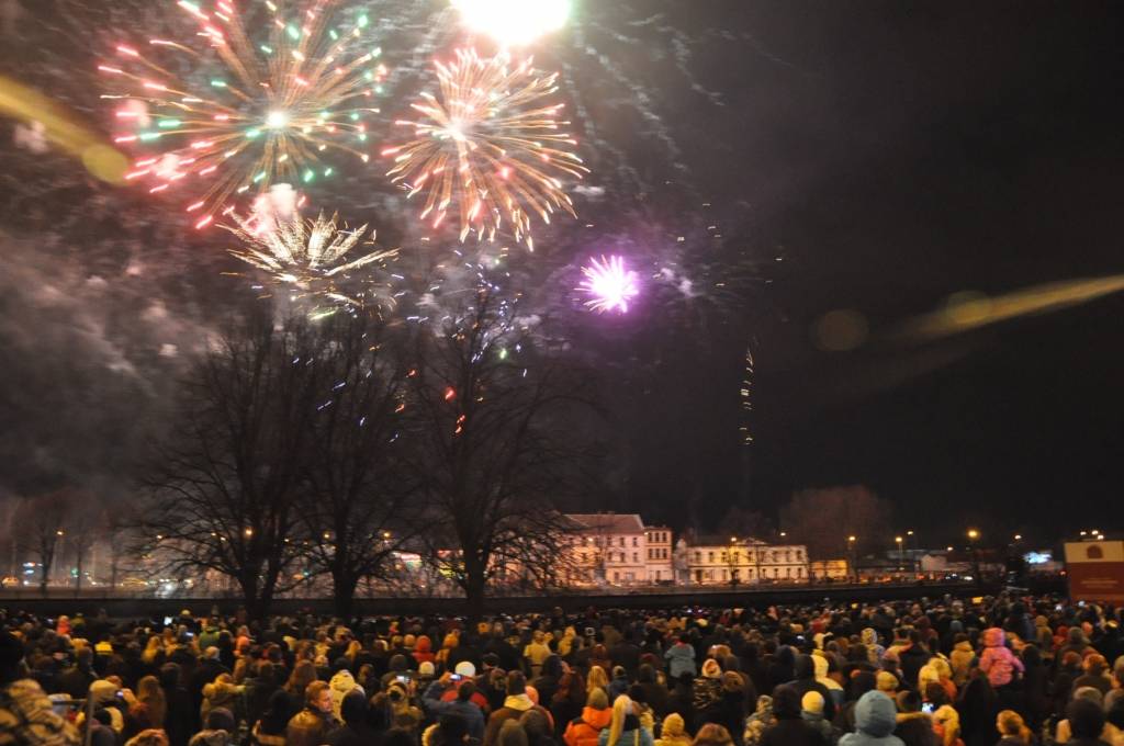 Svētku kulminācijā varēja vērot krāšņu salūtu ar muzikālu pavadījumu.