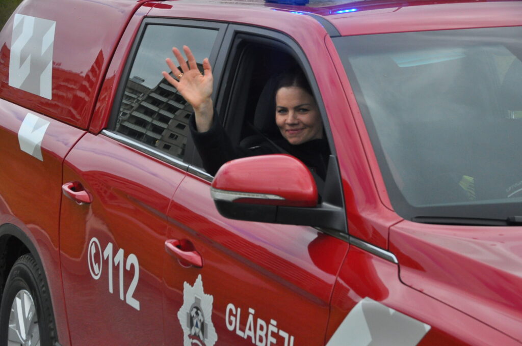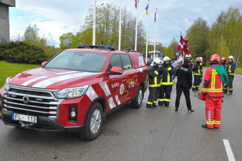 FOTO: Liepājā ugunsdzēsēji glābēji dodas parādes braucienā
