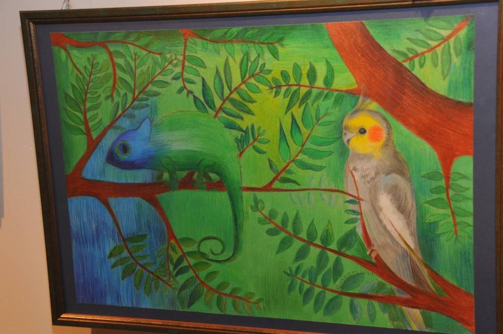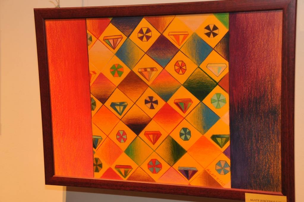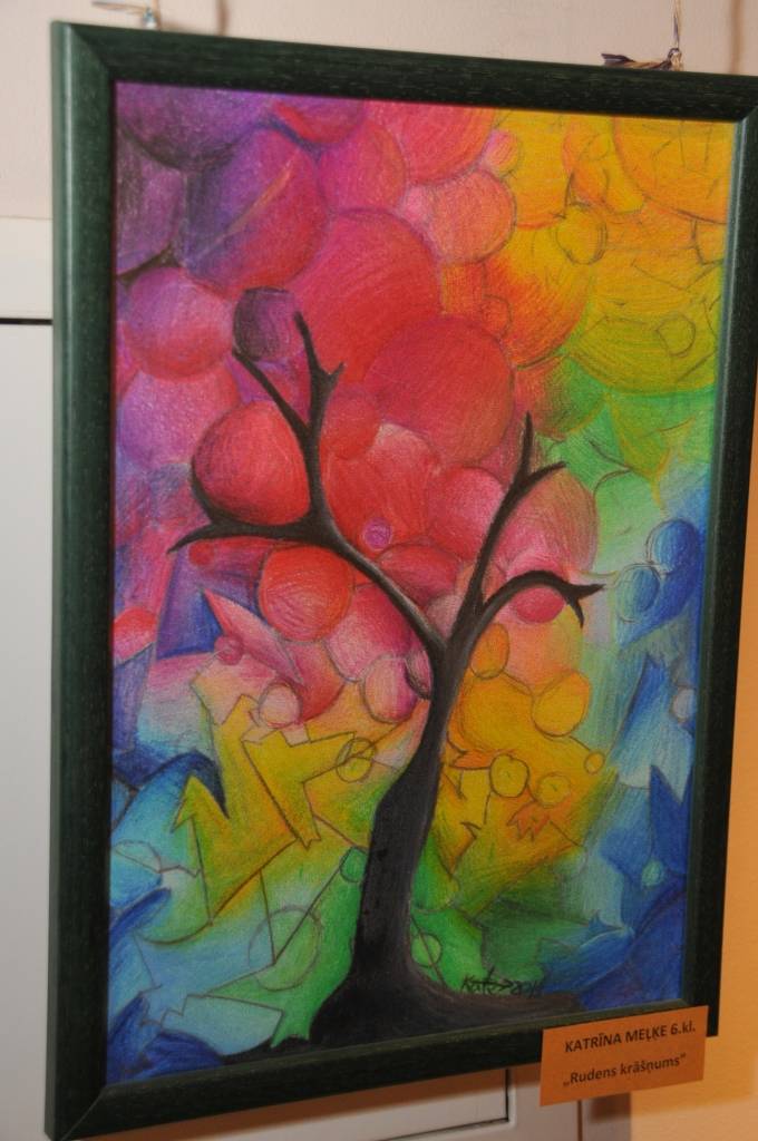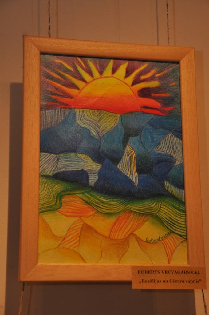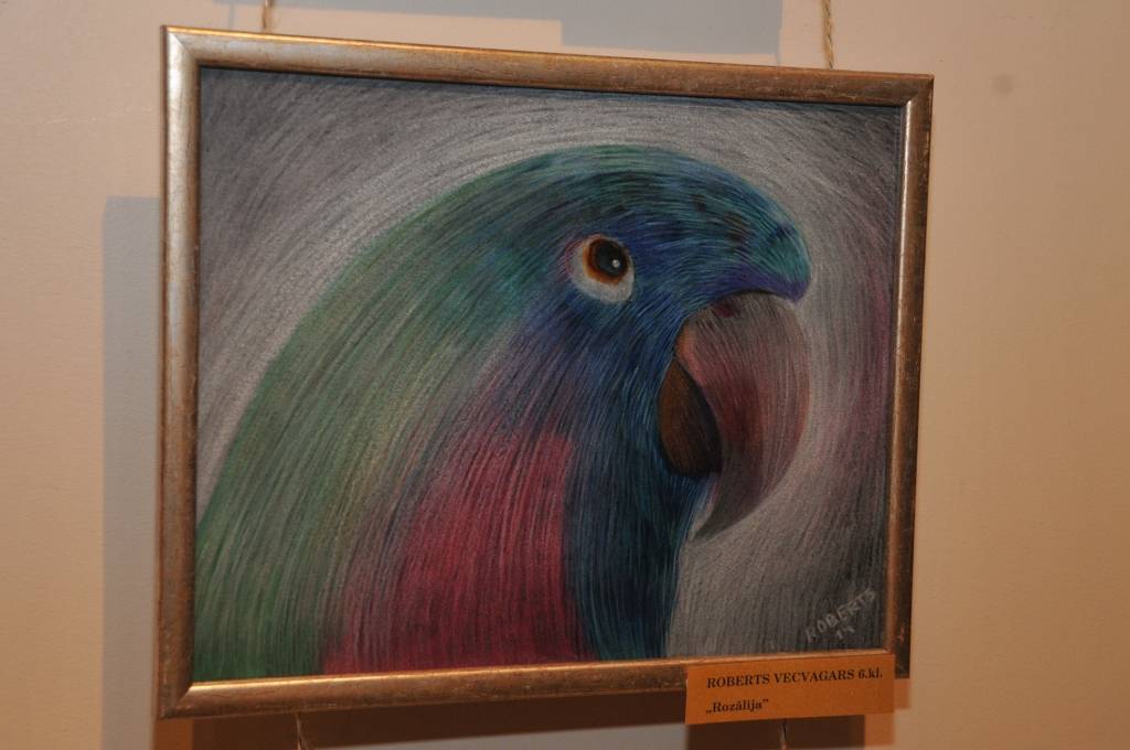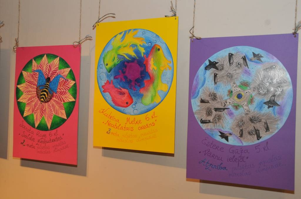 Izstādē redzami ne tikai skolēnu vizuālās mākslas fakultatīva apmeklējuma zīmējumi, bet arī pilsētas olimpiādes godalgotie darbi un mājturības nodarbībās radītās sienas gleznas.