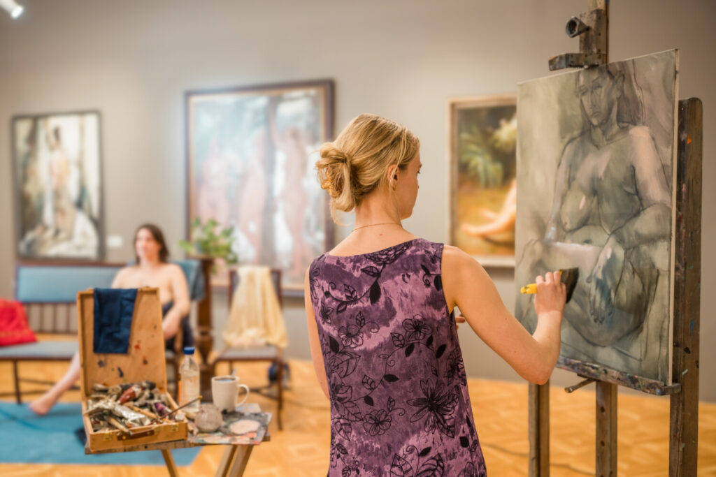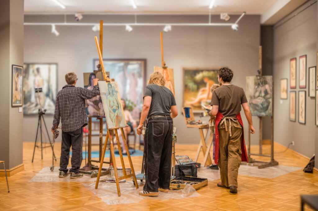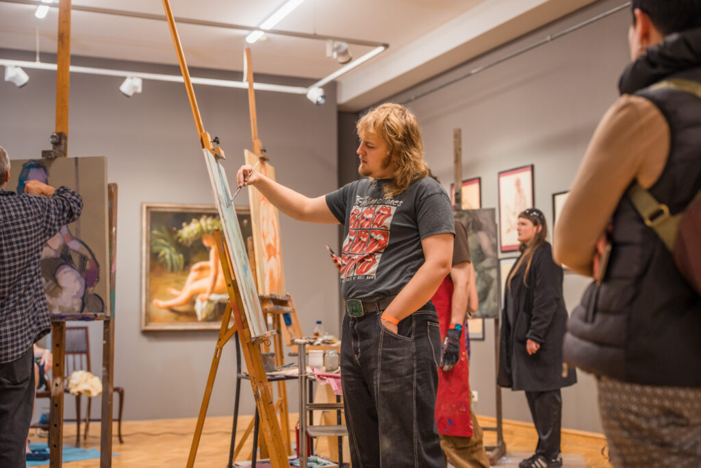 Kopā mākslinieki muzeja lielajā izstāžu zālē radīja īpašu radošo atmosfēru, kurā ikviens varēja vērot aktu tapšanas procesu – no pirmajām līnijām līdz gatavam mākslas darbam.