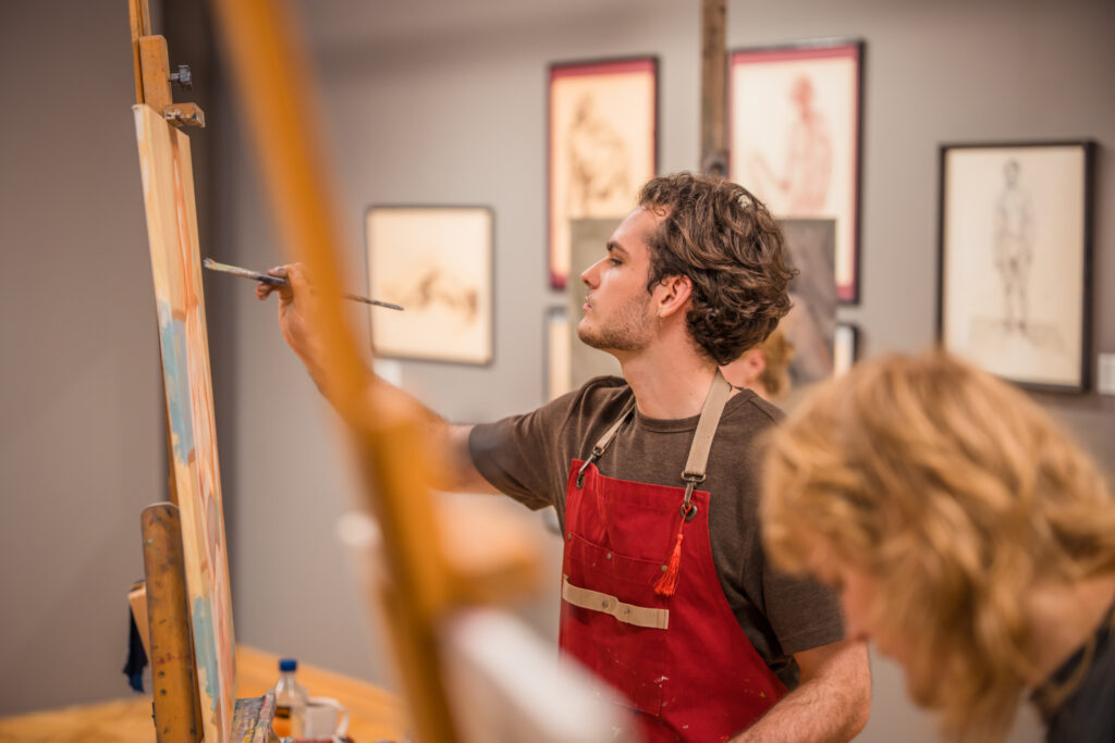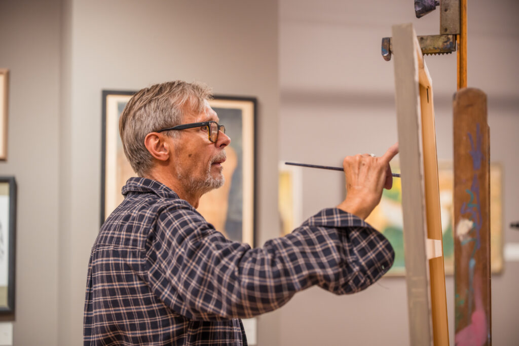 Pie molbertiem darbojās mākslinieks Uldis Rubezis un viņa vadītās studijas “Strūklaka” audzēkņi – Sofija Bumbule, Leons Skudrītis un Fandango Fonteins Kalita.