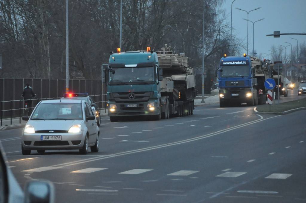 Liepājas pilsētai cauri dodas tanki, portālu informēja kāds lasītājs. Tie tiek transportēti kravas automašīnās konvoja pavadībā, piektdienas pēcpusdienā, ap pulksten 15.30, pārliecinājas portāls Ezerkrasta dzīvojamā masīva rajonā.