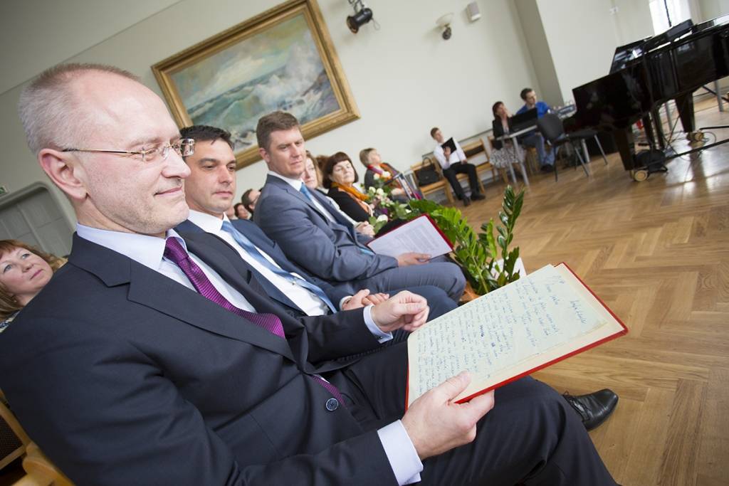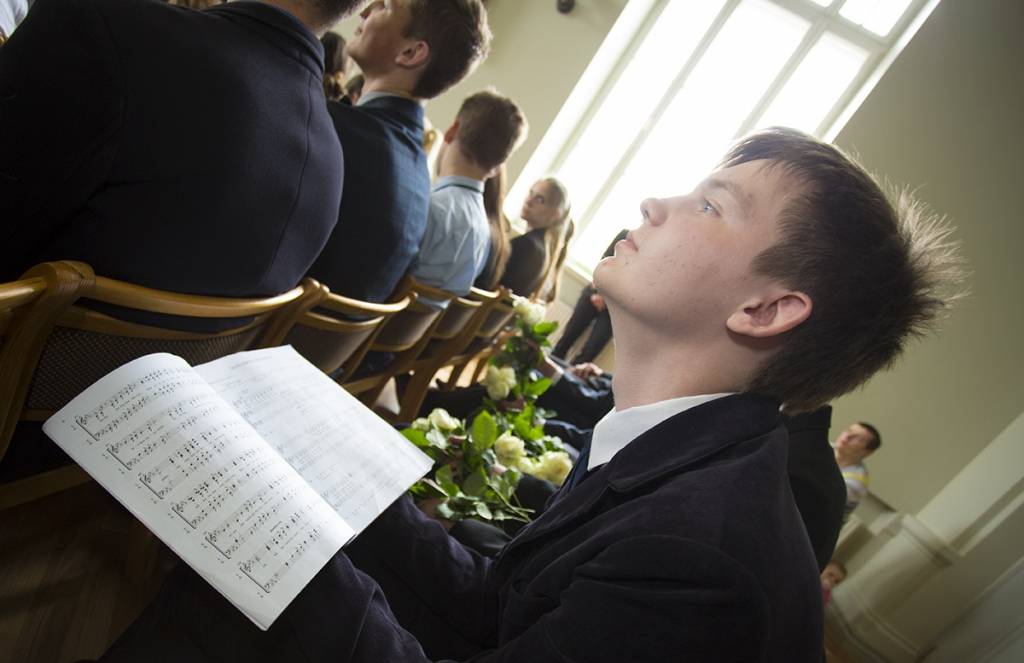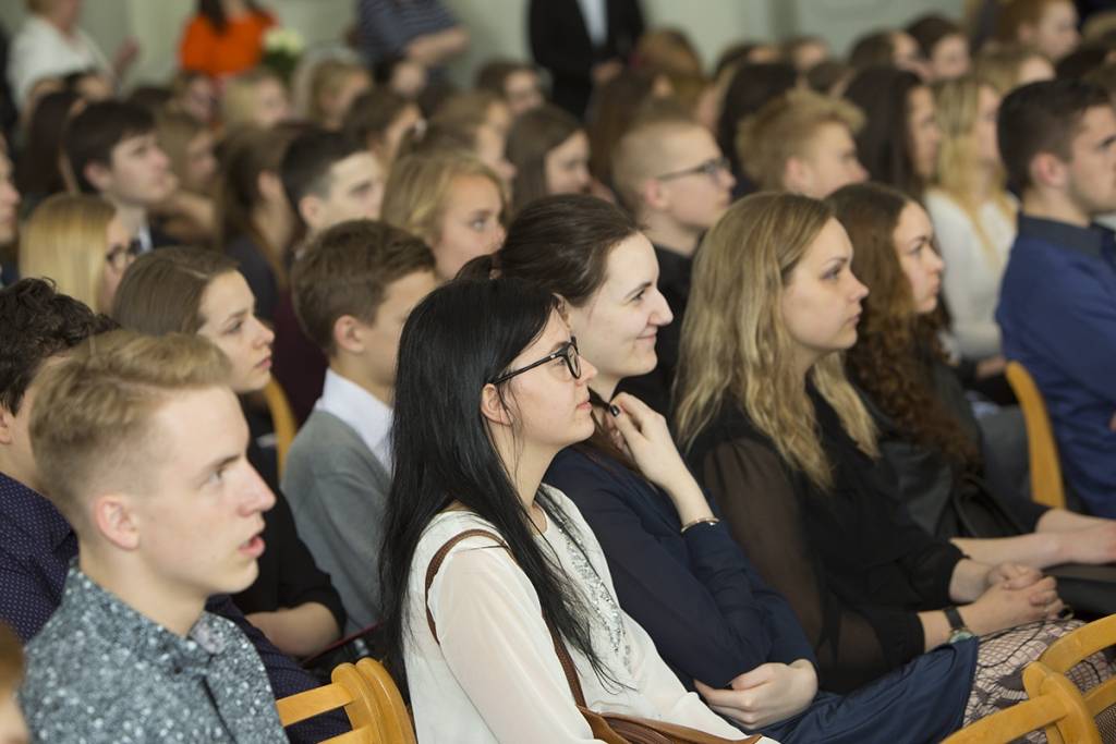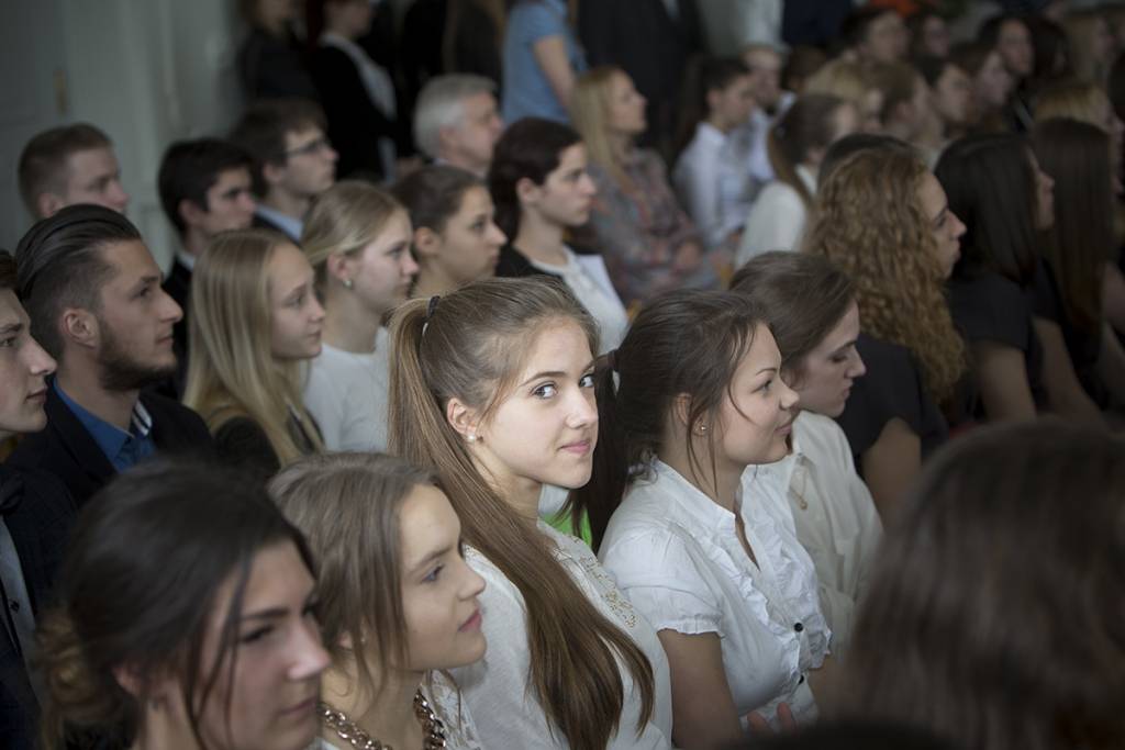 Piedāvājam foto no svinīgā pasākuma Liepājas Valsts 1.ģimnāzijā, kas veltīts tās 95 gadu jubilejai.