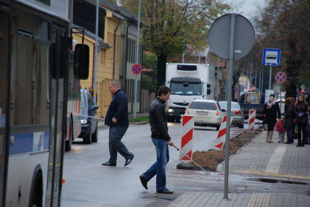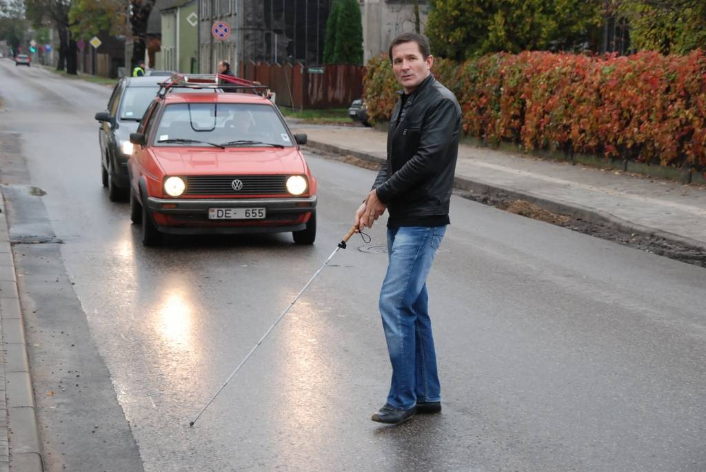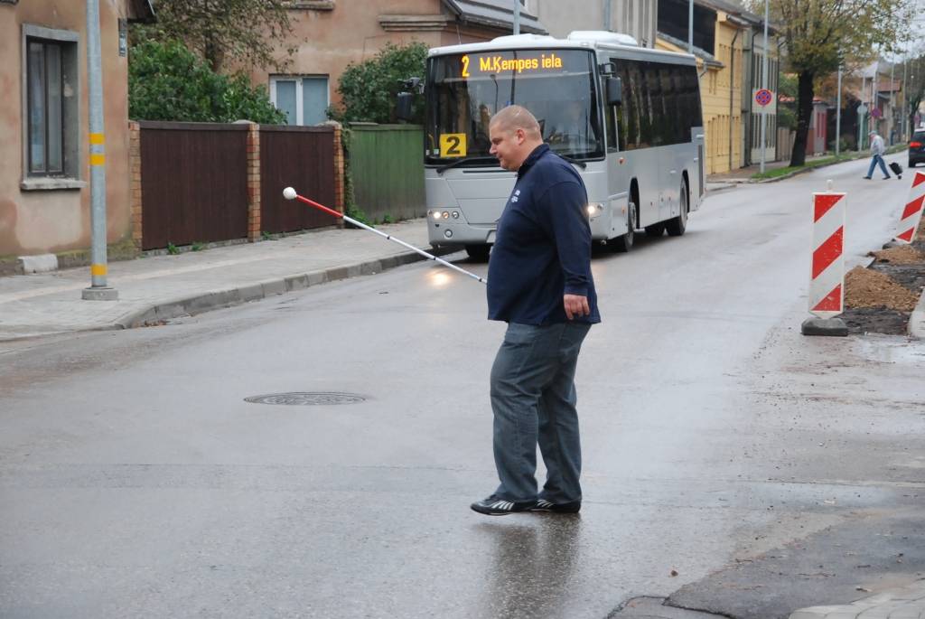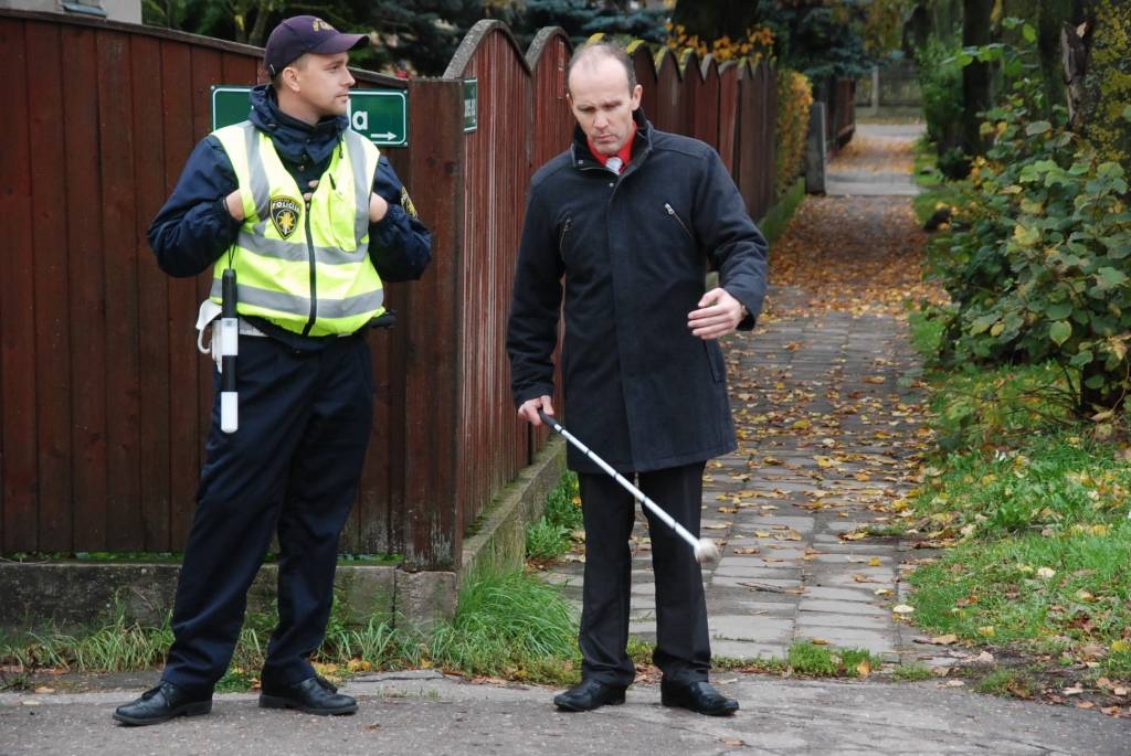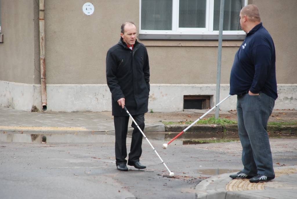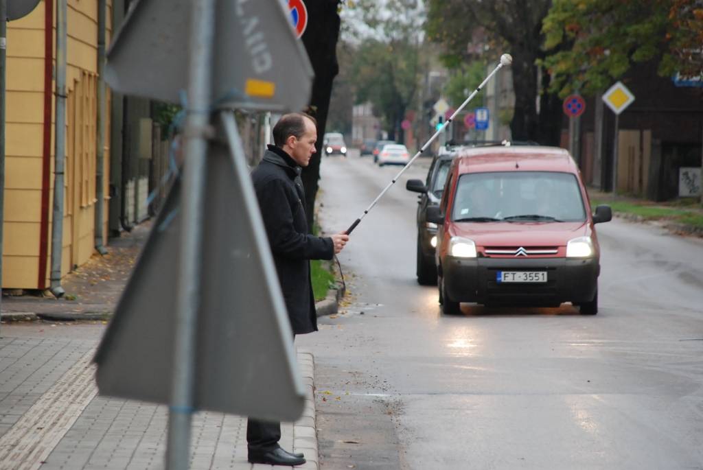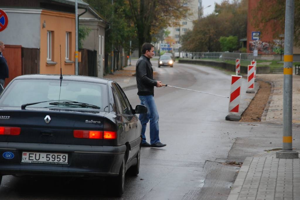 Rīta pusē K. Ūliha un Pērkones ielu krustojumā notika gadskārtējā akcija, kuras laikā brīvprātīgie centās šķērsot ielu ar baltā spieķa palīdzību.