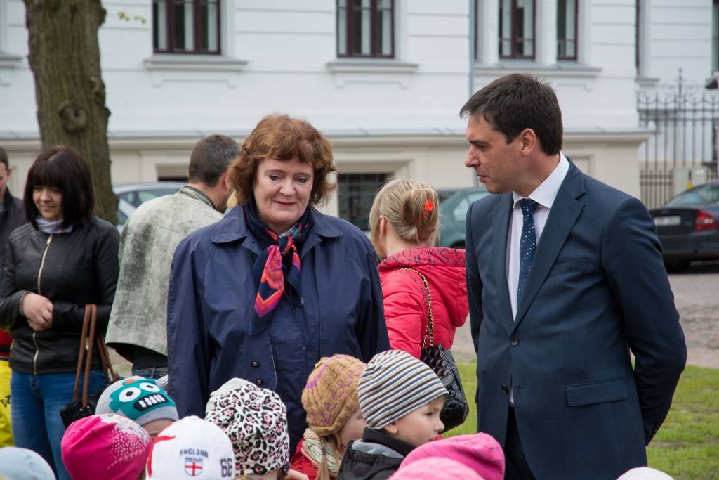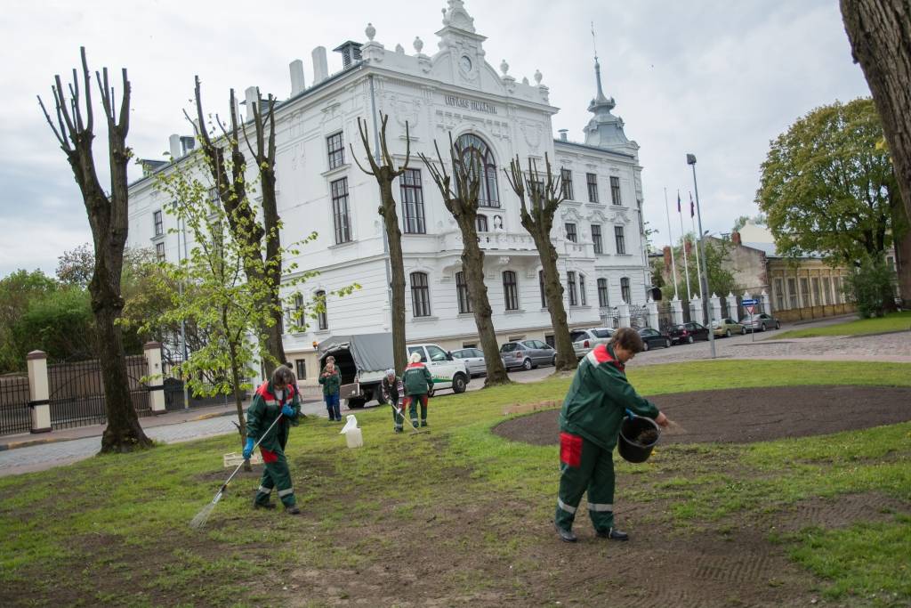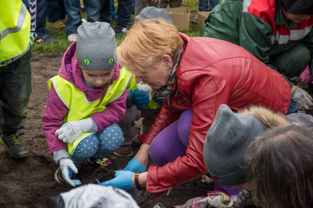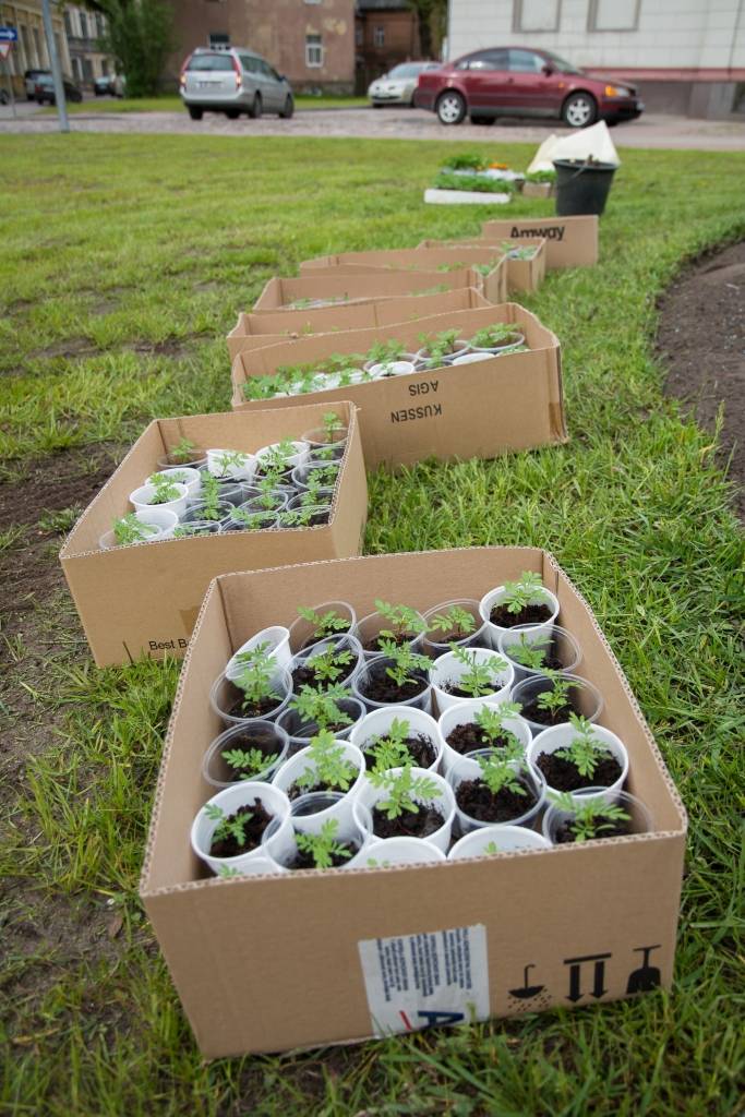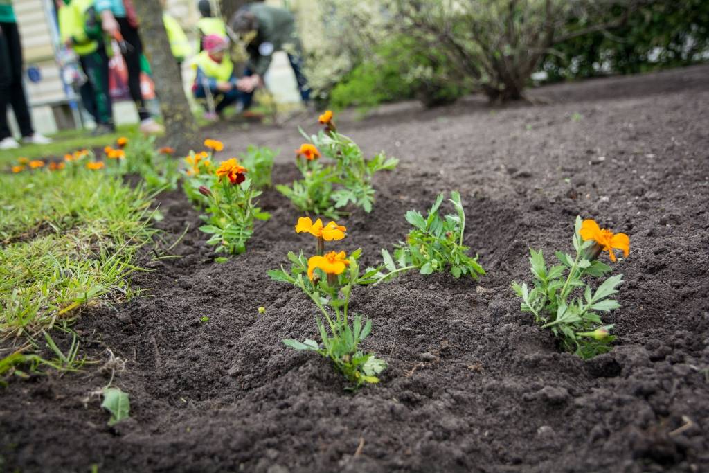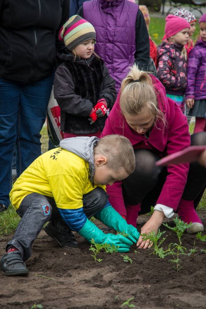 Trešdien, 20. maijā, mazie liepājnieki stādīja pašu audzētos puķu stādiņus dobē “Saules aplis” iepretim Liepājas Valsts 1. ģimnāzijai.