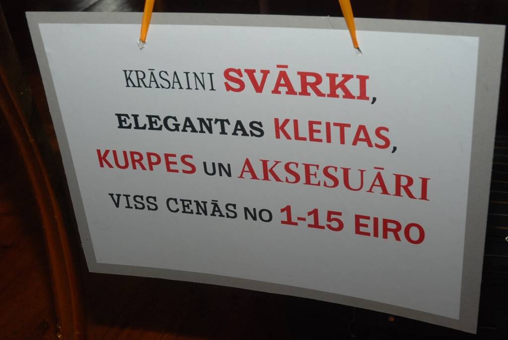 Piedāvājam foto no tā dēvētā drēbju un mantu tirdziņa jeb Andeles – Mandeles, kas sestdien notika “Fontaine” viesnīcas telpās Liepājā.