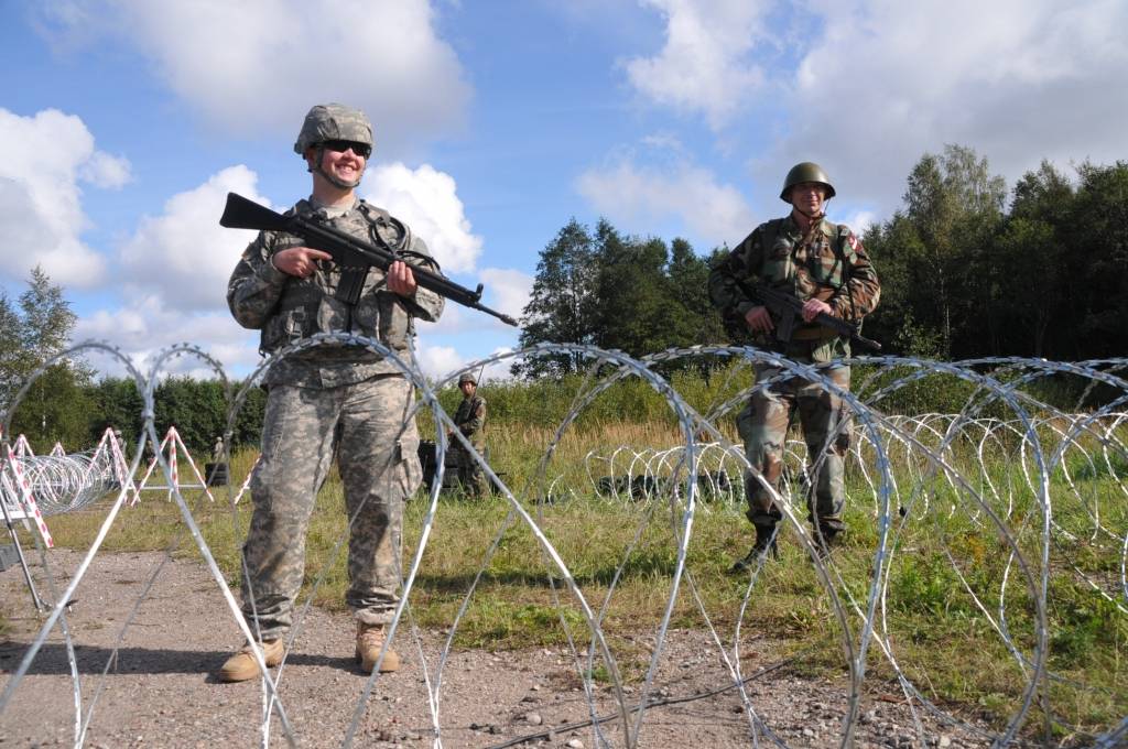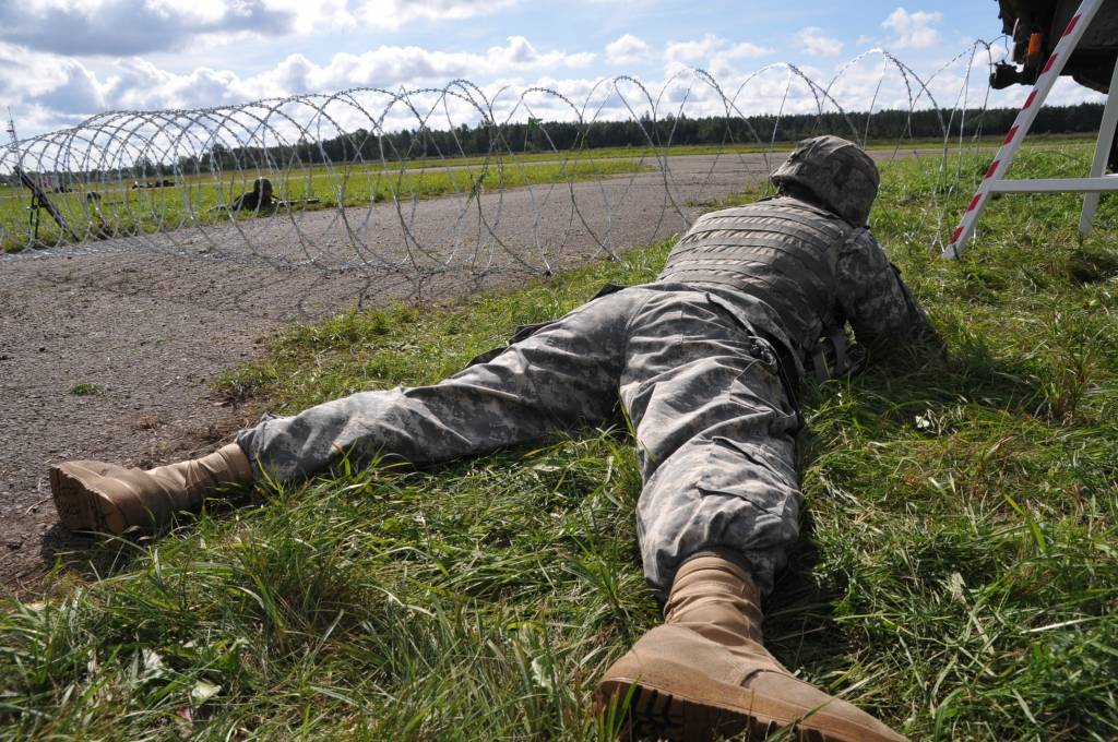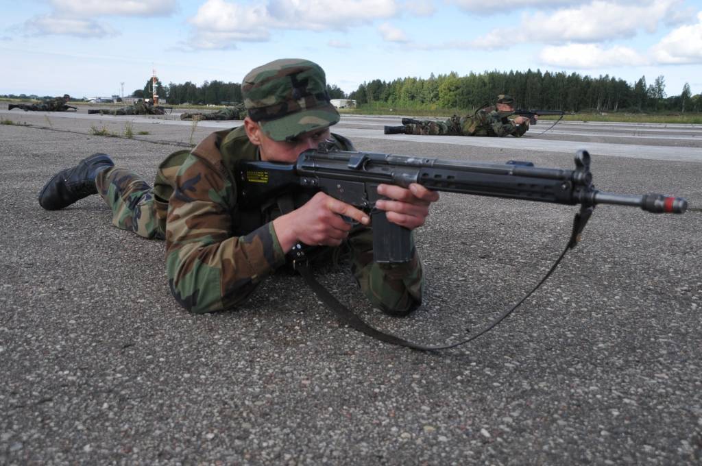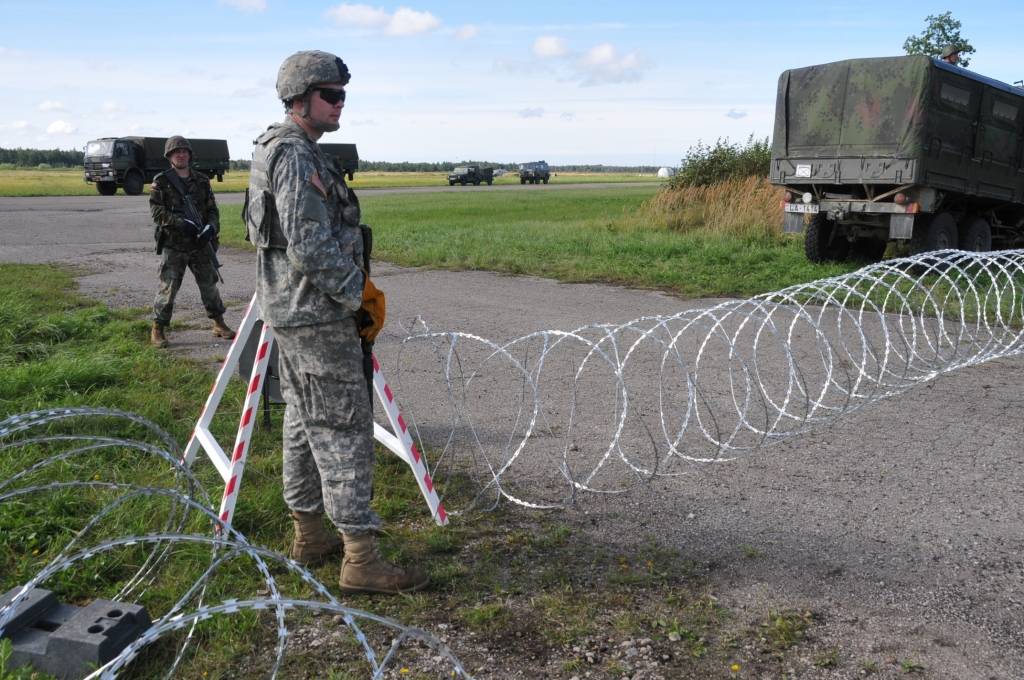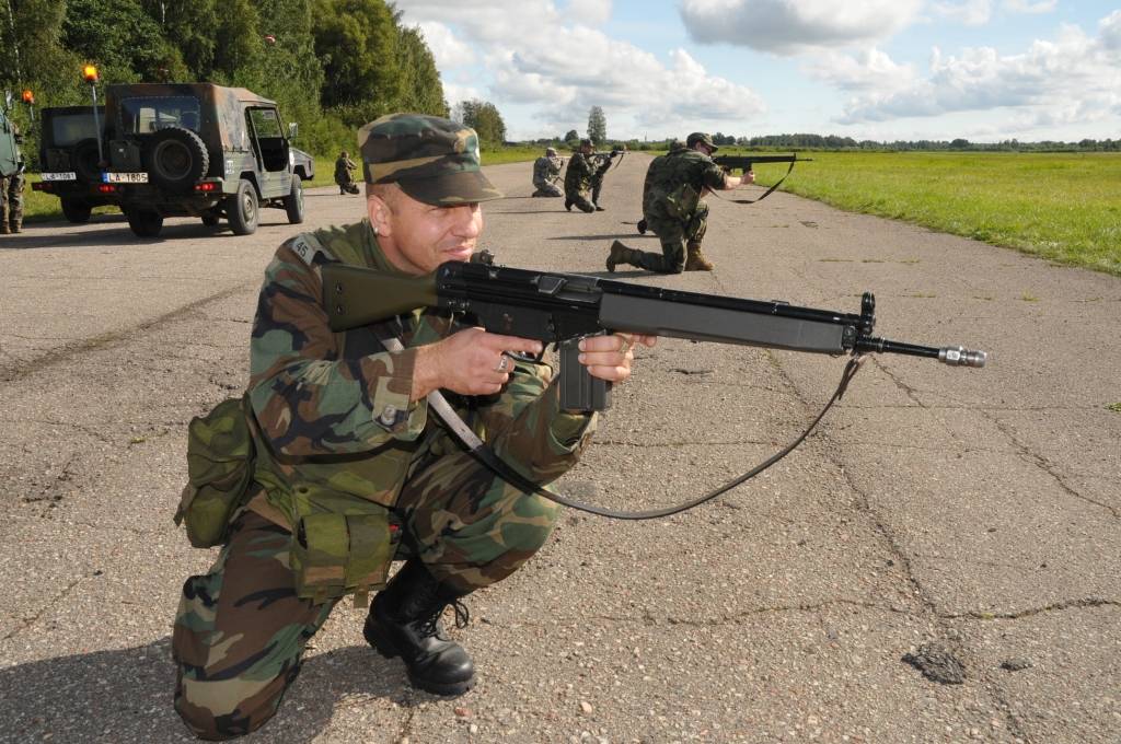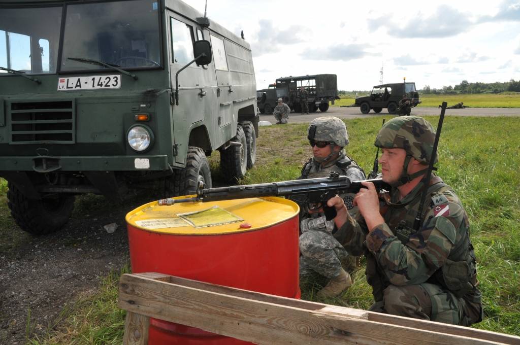 Foto no Liepājas lidostas teritorijas, kur svētdien, 31. augustā, Latvijas armija sadarbībā ar ASV karavīriem rīkoja militārās aizsardzības mācības.