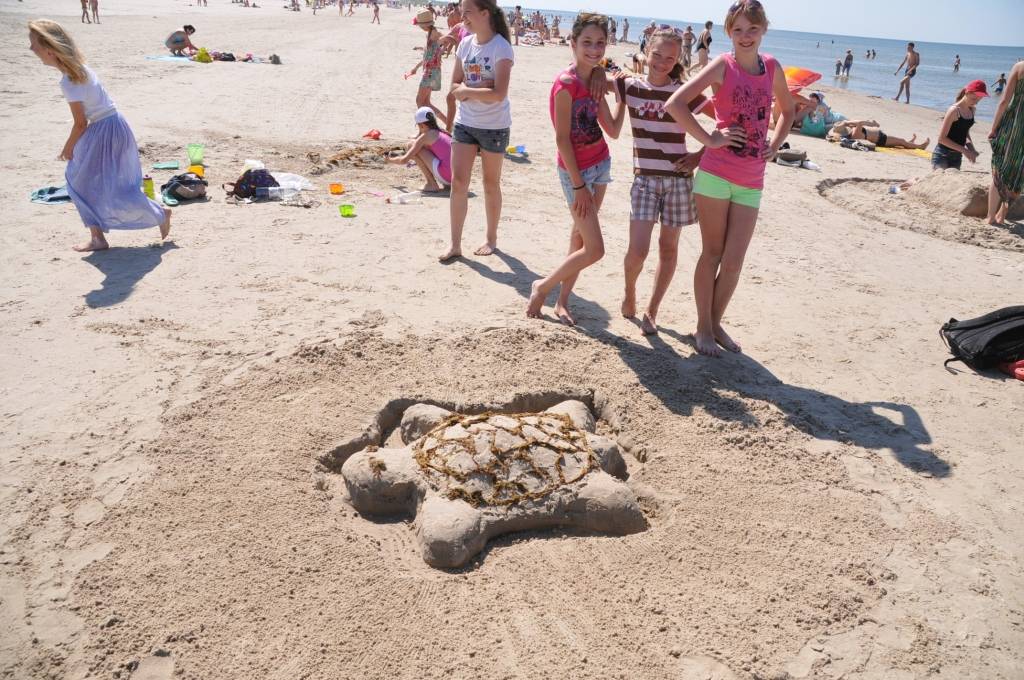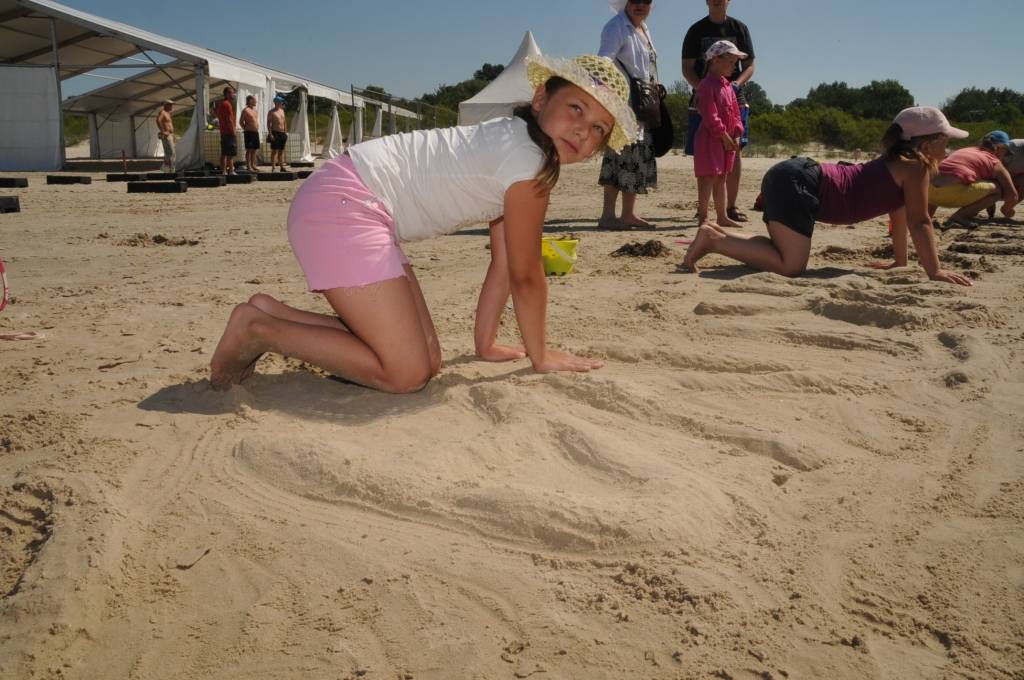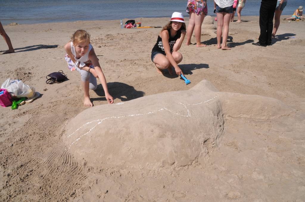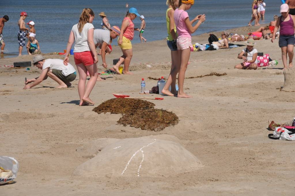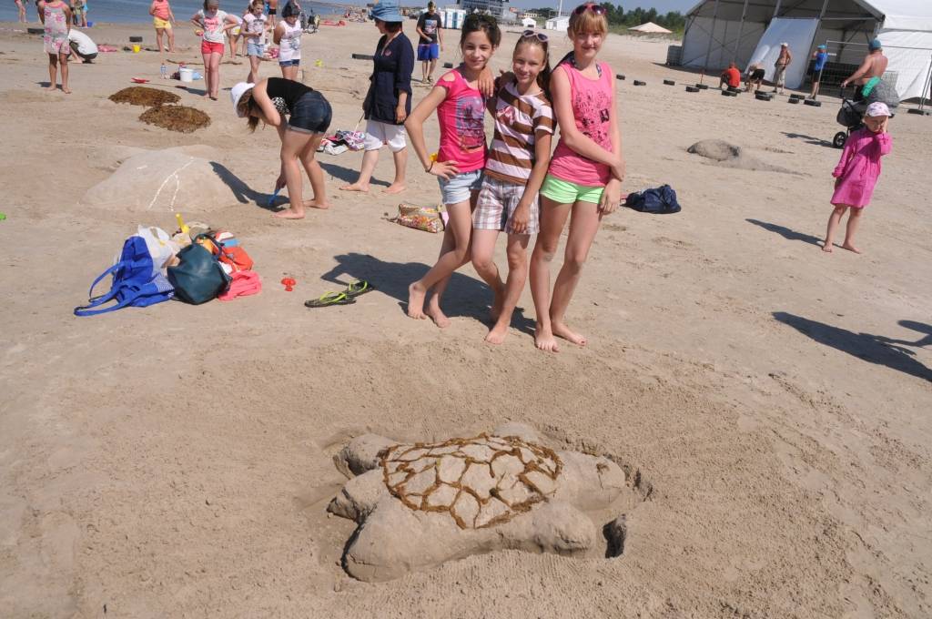 Trīs grobiņnieces Rēzija, Terēze un Adriana portālam pastāstīja, ka astoņkāji smiltīs nolēmušas veidot, jo citiem tāds nebūs. “Visi jau jūras tēmā iedomājas zivis, bet mums ir astoņkājis. Gribējām būt citādas,” saka Rēzija no Grobiņas bērnu mākslas skolas.