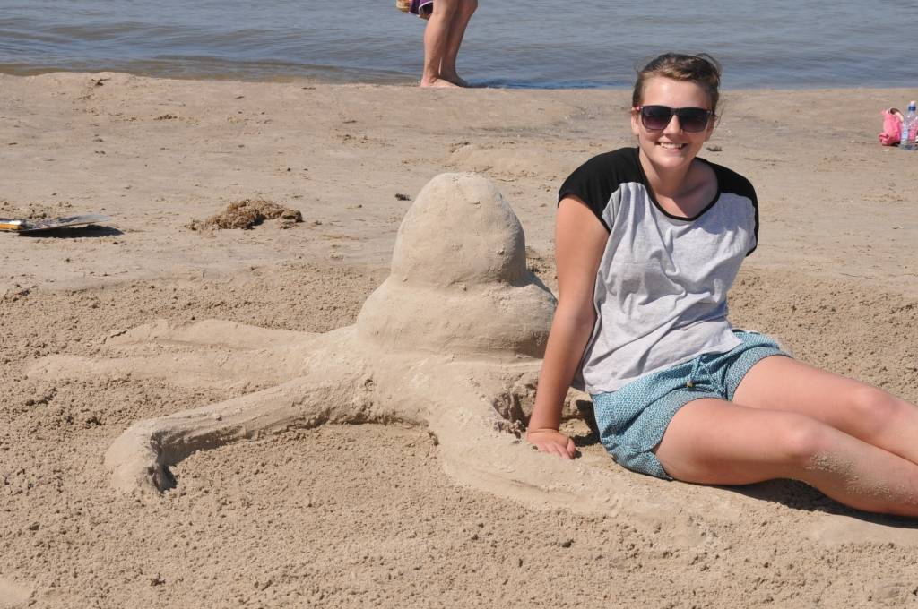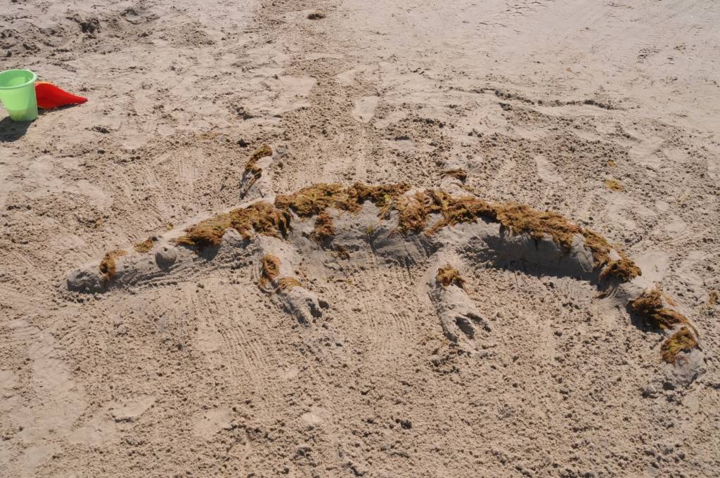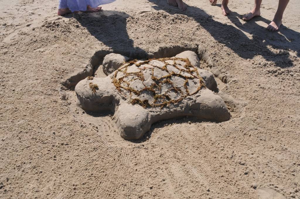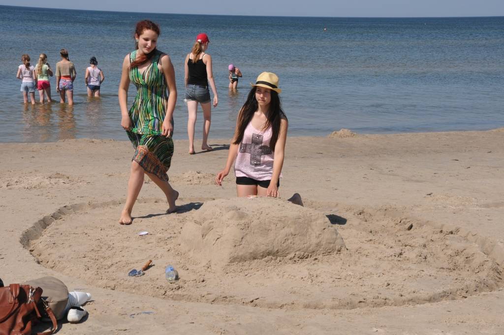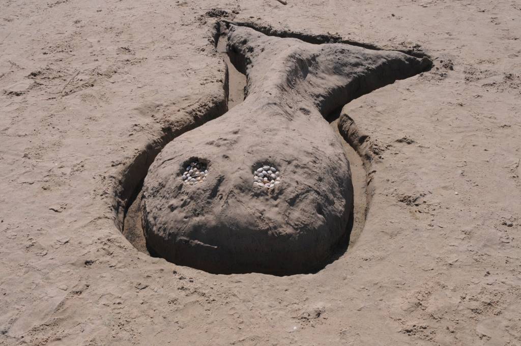 Trīs grobiņnieces Rēzija, Terēze un Adriana portālam pastāstīja, ka astoņkāji smiltīs nolēmušas veidot, jo citiem tāds nebūs. “Visi jau jūras tēmā iedomājas zivis, bet mums ir astoņkājis. Gribējām būt citādas,” saka Rēzija no Grobiņas bērnu mākslas skolas.