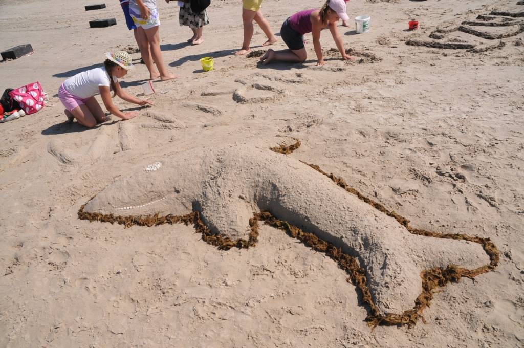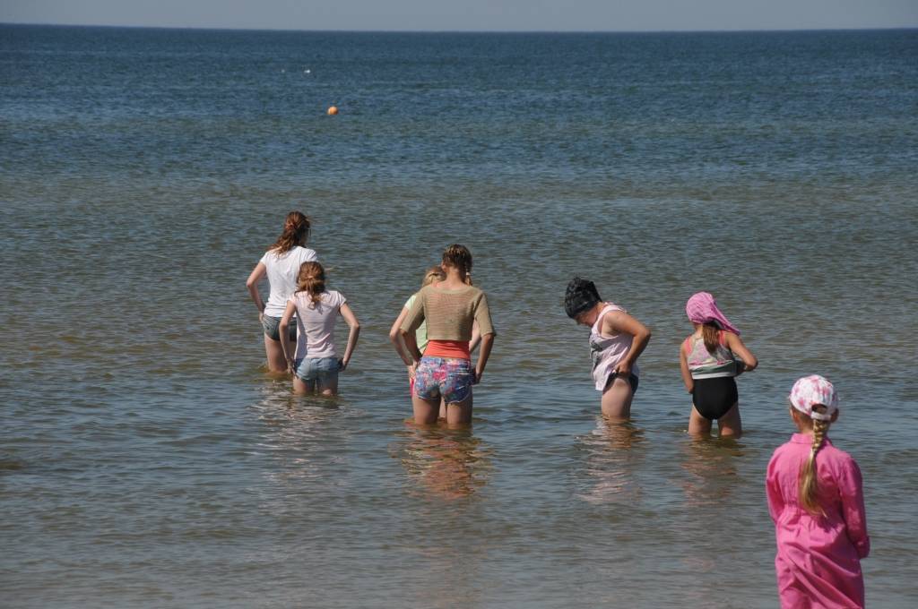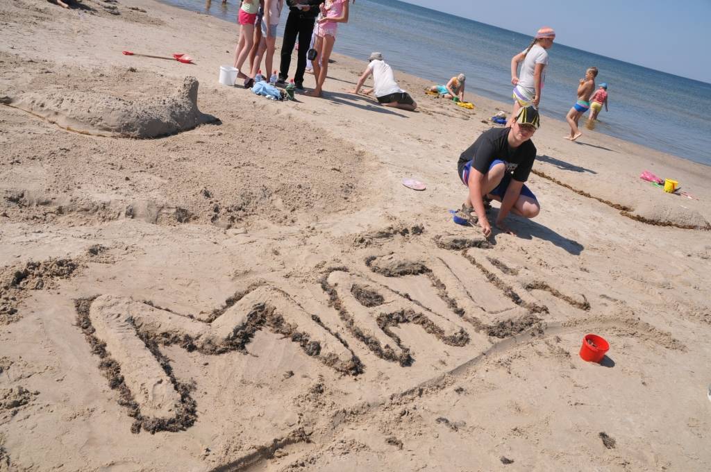 Bērnus visu nedēļu pieskata četras skolotājas un viena audzinātāja. 40 bērnu “Mazās Marīnas” kolektīva pieskatīšana ir atbildīgs darbs, tomēr darba augļi ir prieks, ko saņem ne tikai dalībnieki. Šodien katrs pludmales apmeklētājs redzēs bērnu veidotās figūras pludmales smiltīs.