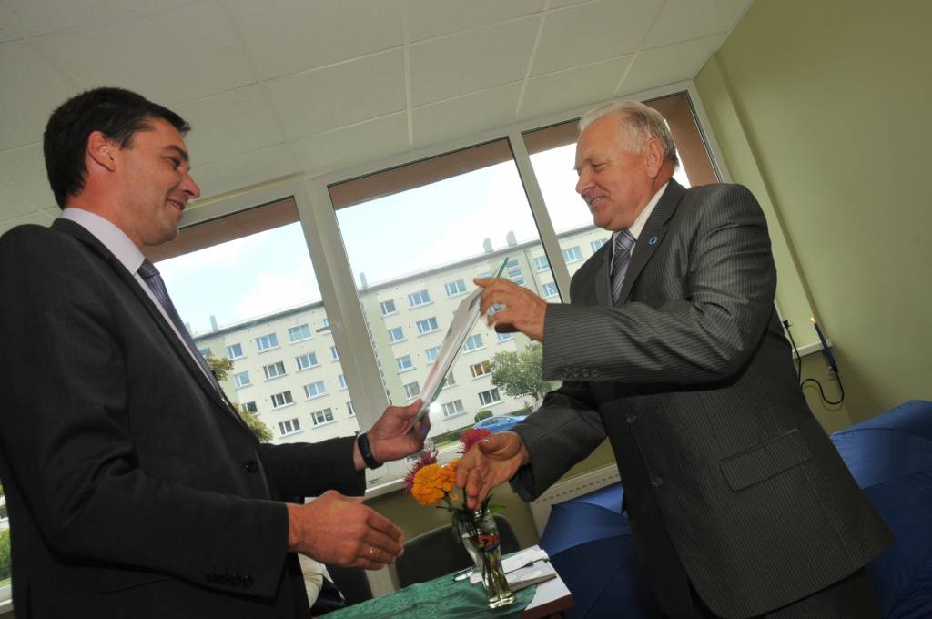 Liepājas diabēta nūjošanas komandas sveicēju sarakstā bija arī Liepājas domes priekšsēdētāja vietnieks Gunārs Ansiņš. No domes nūjotājiem tika prāvs grauzādētu pistāciju un mandeļu pīrāgs, kā arī diplomi par panākumiem nūjošanas maratonos.