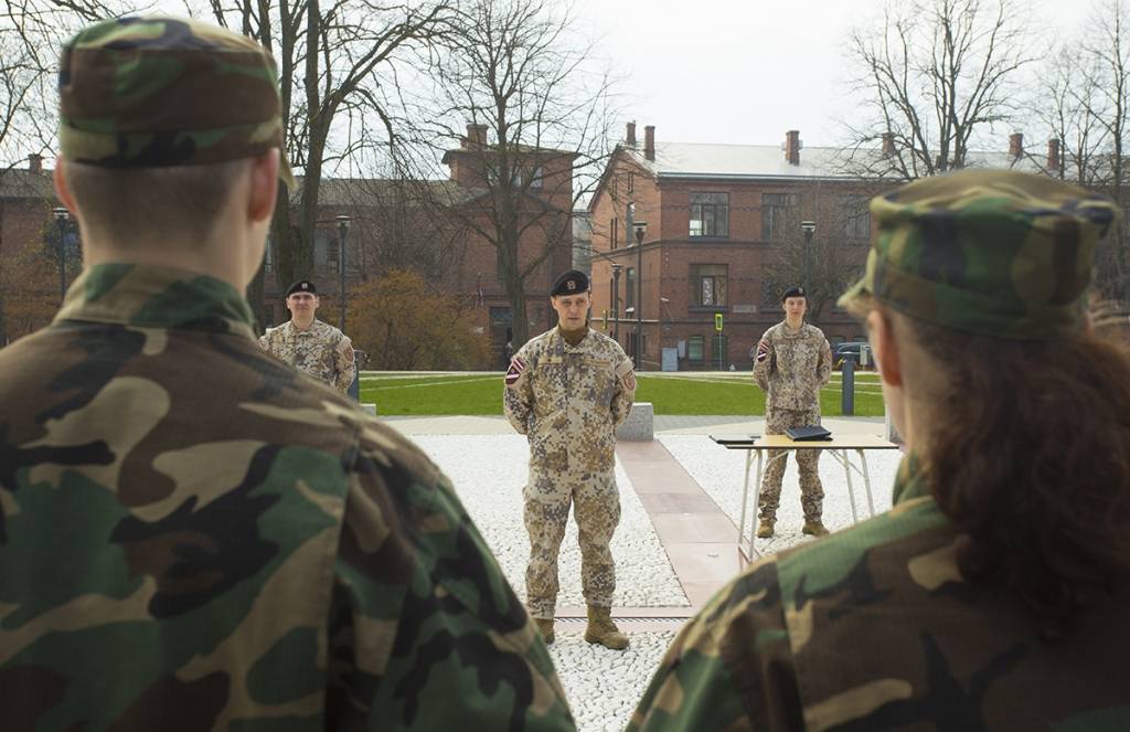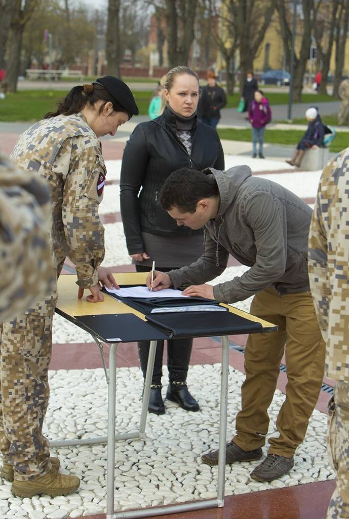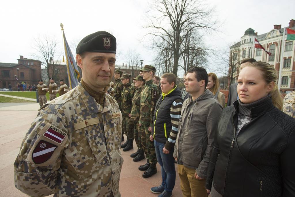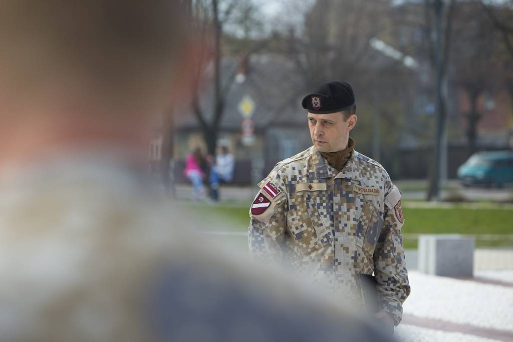 27.aprīlī Čakstes laukumā Liepājā 13 jaunie zemessargi deva svinīgo zvērestu, lai tiktu uzņemti Zemessardzē.
