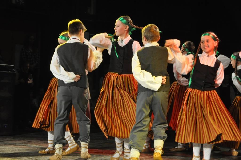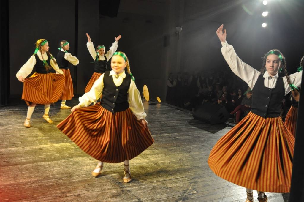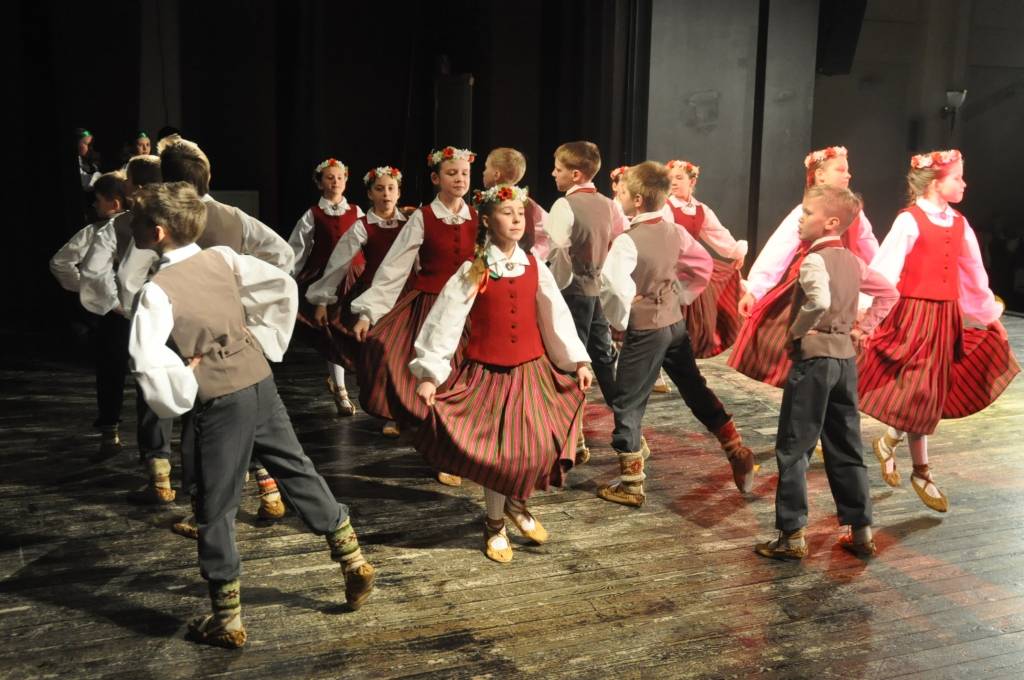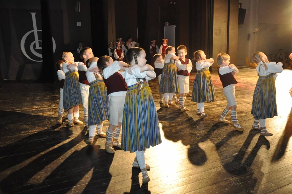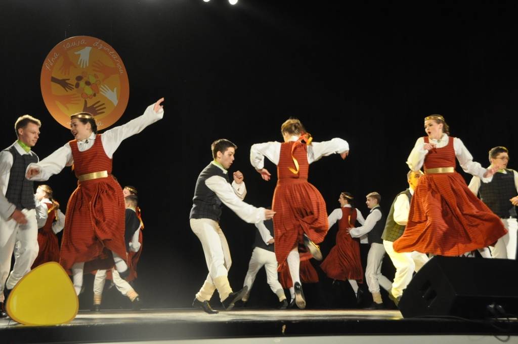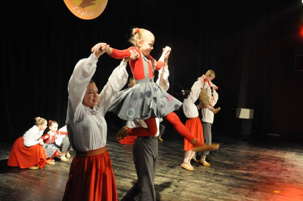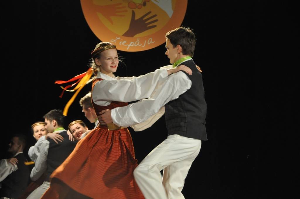 Liepājas Latviešu biedrības nama Lielajā zālē svētku dižkoncertā satikās septiņi tautas deju kolektīvi no Rīgas, Saldus un Liepājas, kurus kopā pulcināja Liepājas Tautas mākslas un kultūras centra bērnu deju kolektīva “Krustiņi” vadītāja Inta Āboliņa.