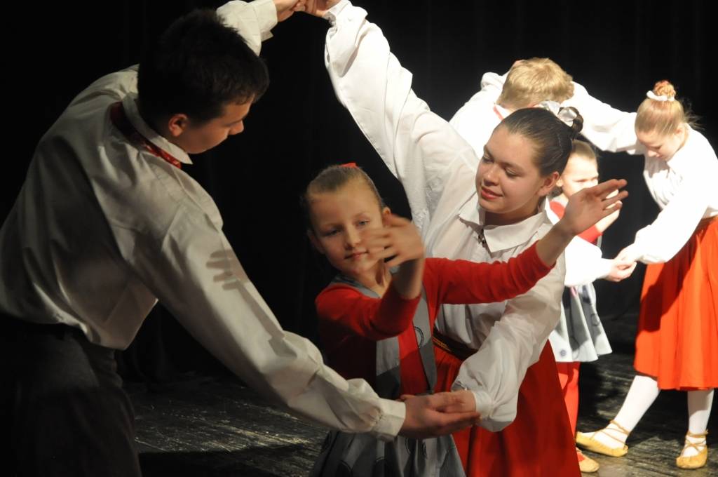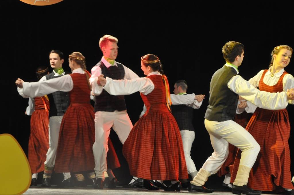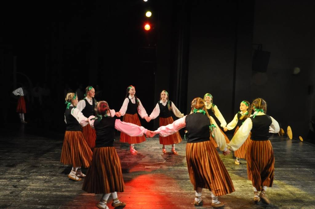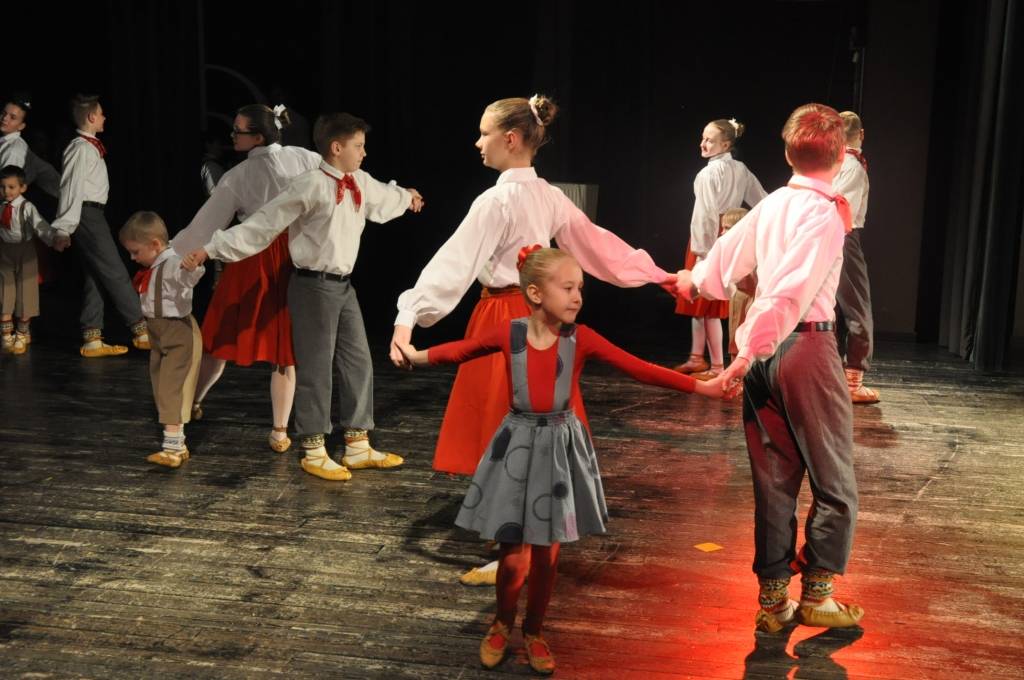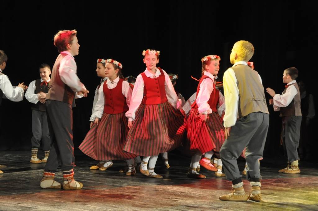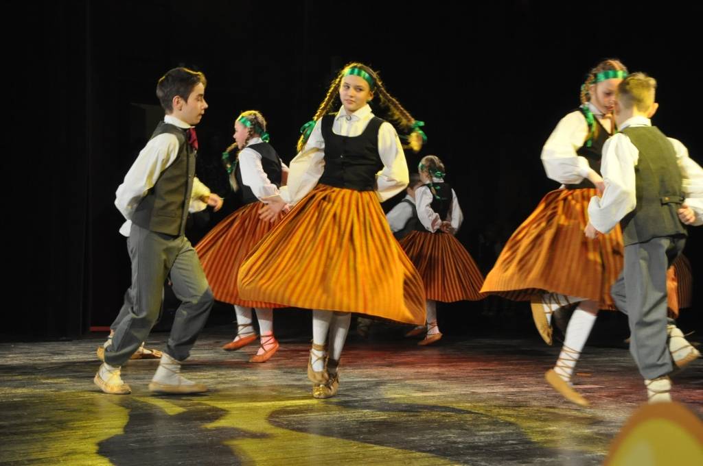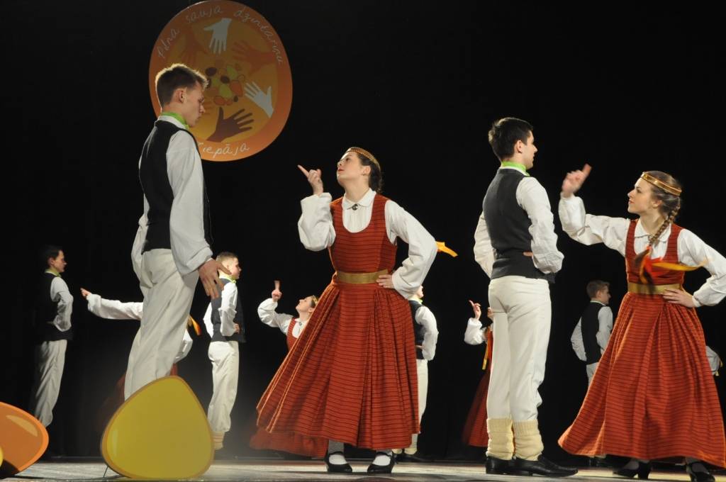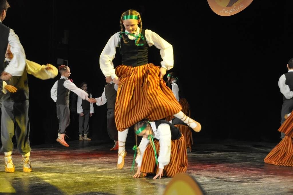 Liepājas Latviešu biedrības nama Lielajā zālē svētku dižkoncertā satikās septiņi tautas deju kolektīvi no Rīgas, Saldus un Liepājas, kurus kopā pulcināja Liepājas Tautas mākslas un kultūras centra bērnu deju kolektīva “Krustiņi” vadītāja Inta Āboliņa.