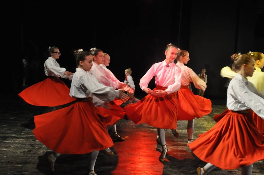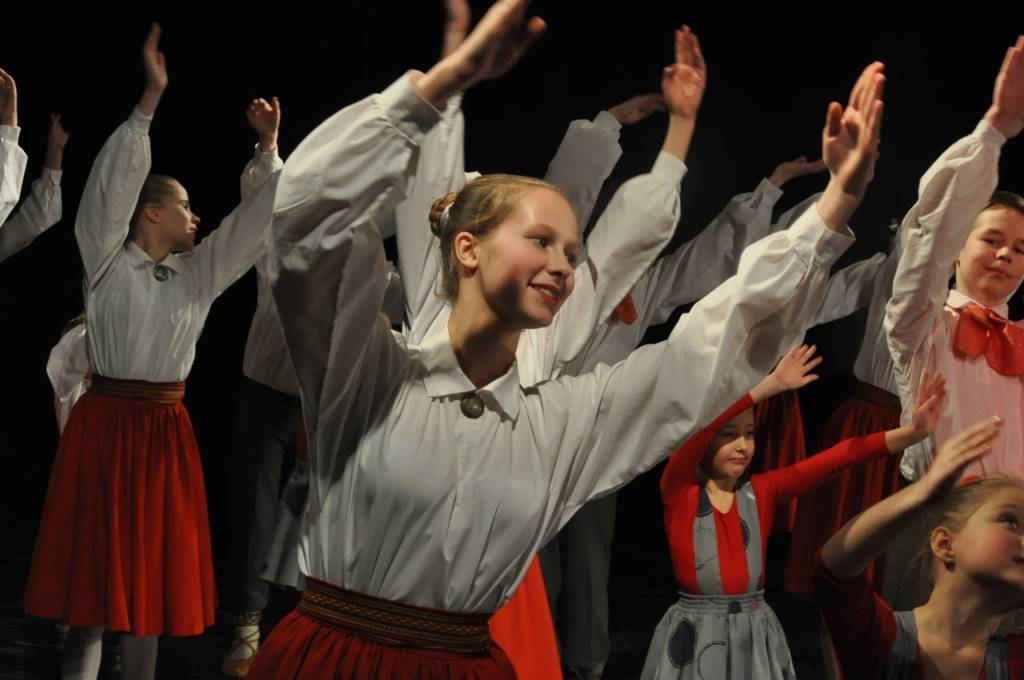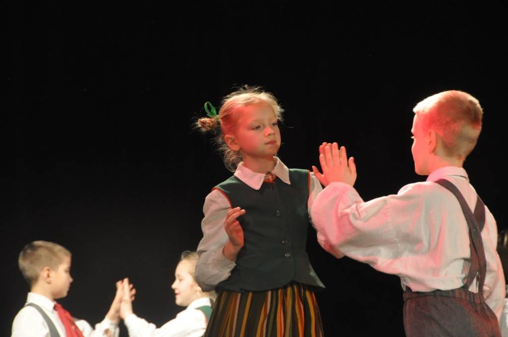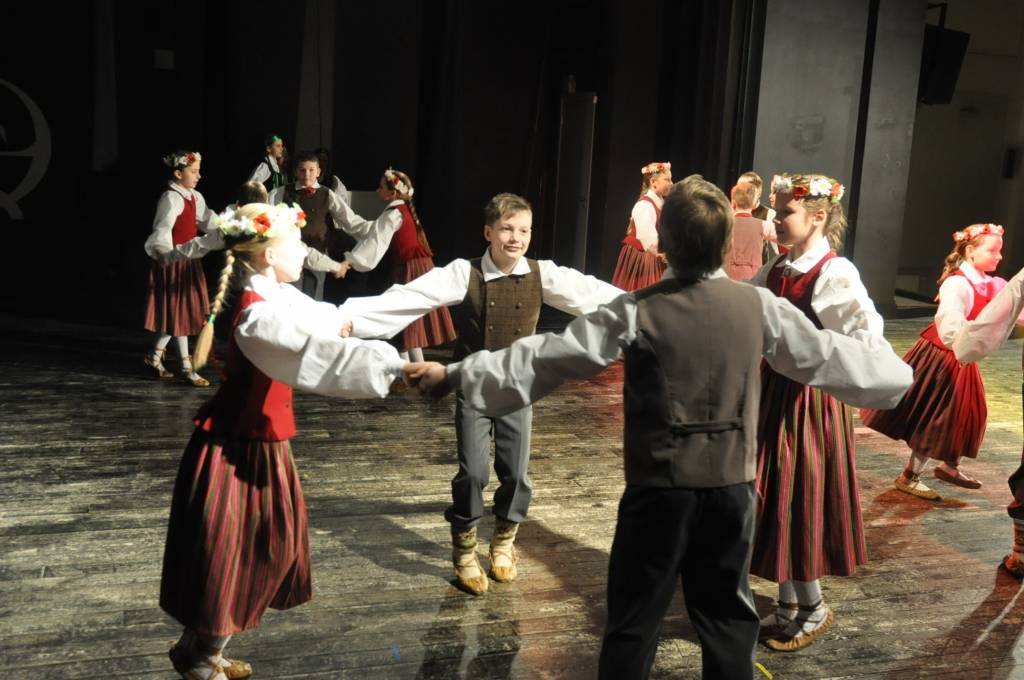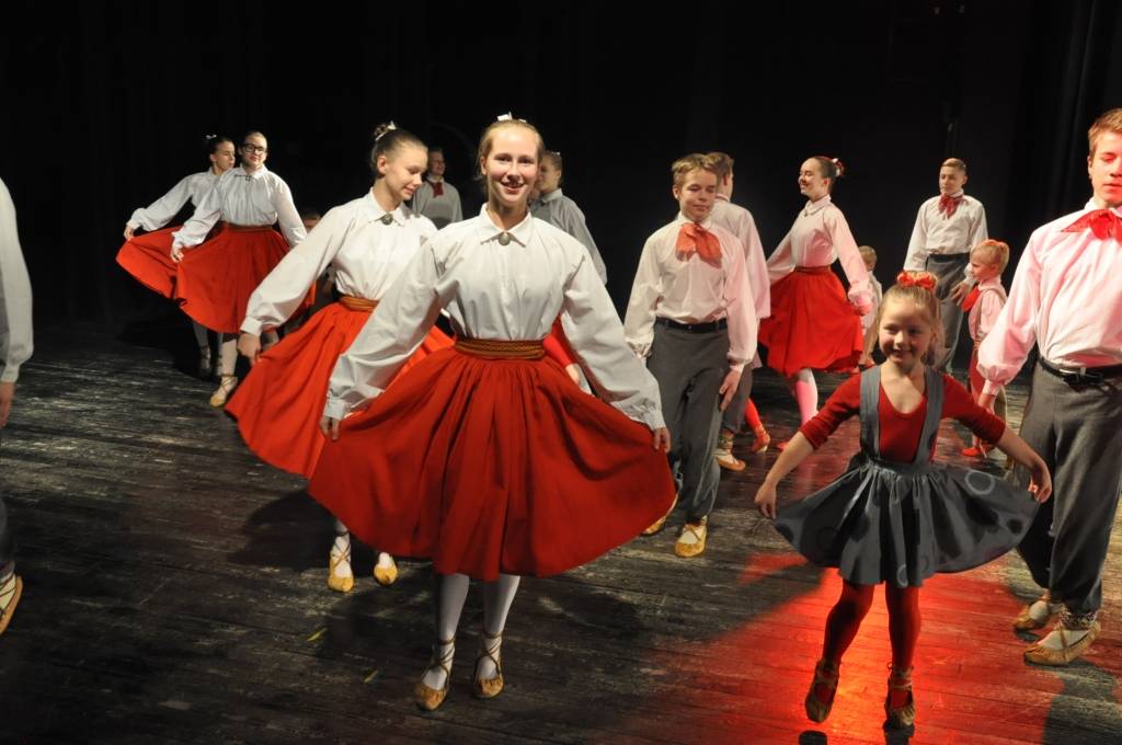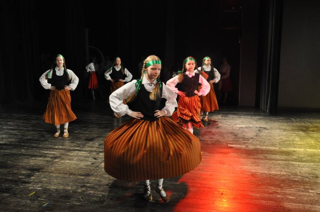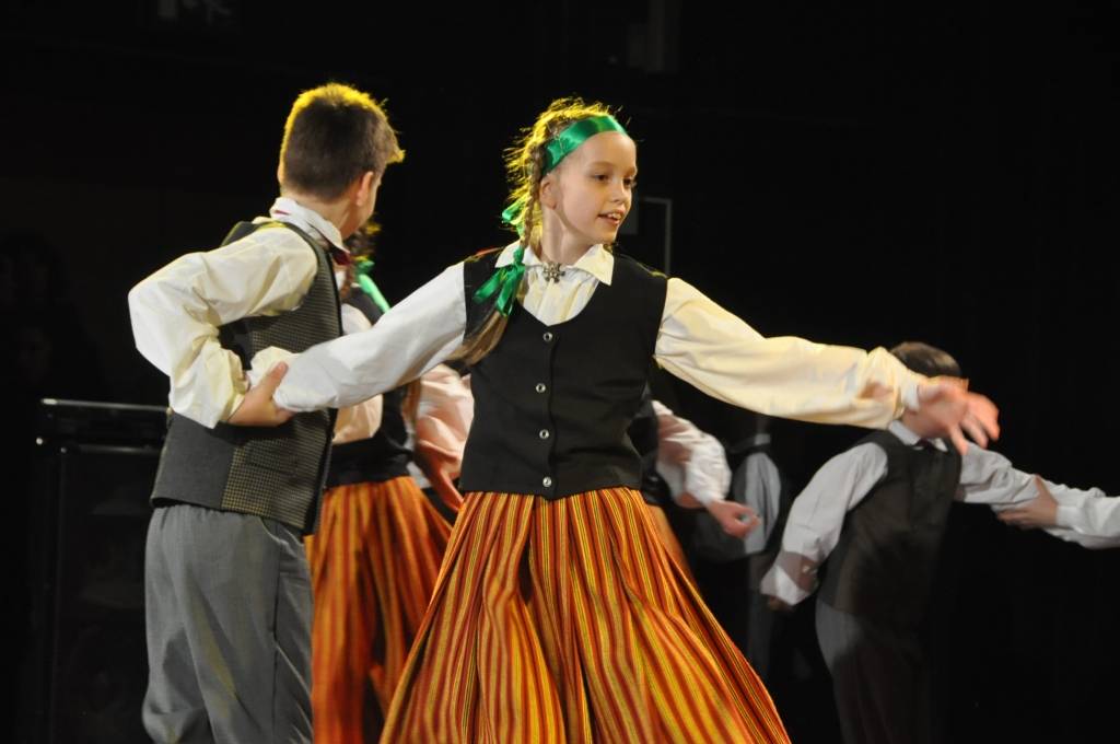 Liepājas Latviešu biedrības nama Lielajā zālē svētku dižkoncertā satikās septiņi tautas deju kolektīvi no Rīgas, Saldus un Liepājas, kurus kopā pulcināja Liepājas Tautas mākslas un kultūras centra bērnu deju kolektīva “Krustiņi” vadītāja Inta Āboliņa.
