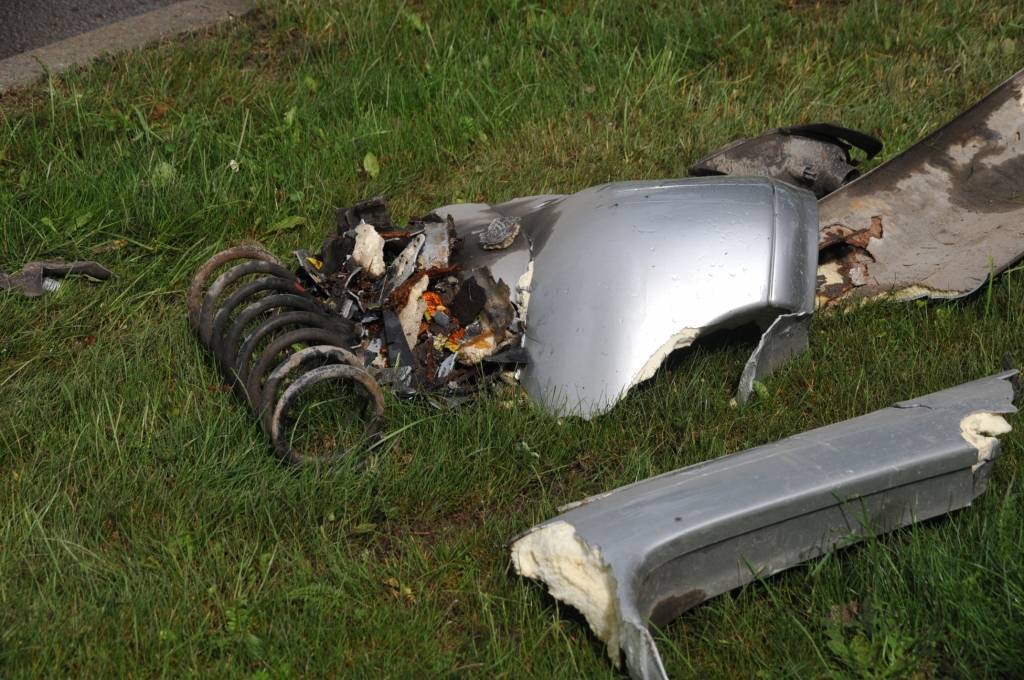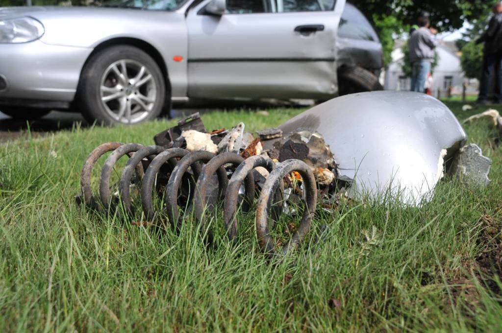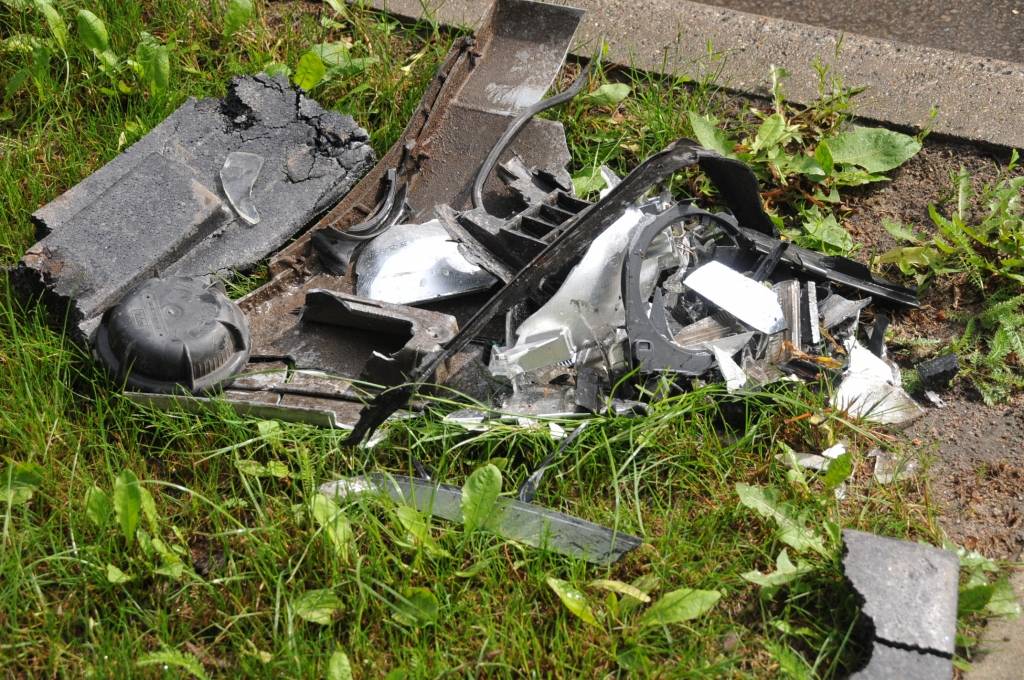 Pēc inerces “Ford” apmetusi loku ap savu asi un ar aizmugurējo daļu atdūrusies alejas liepā. Rezultātā “Ford” neglābjami bojāta mašīnas aizmugure, bet “Volvo” priekšējā daļa. Avārijas iespējamais cēlonis, automašīna “Audi” stāv bez skrambas. Ziņā aprakstīta avārijas vietā sastapto cilvēku stāstītā notikumu versija.