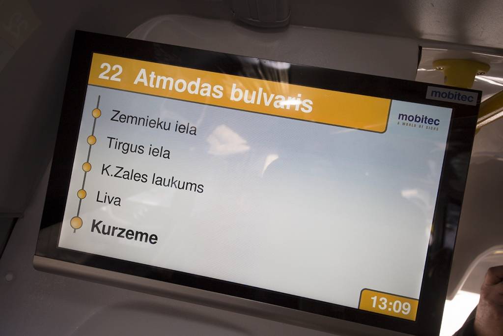 Paralēli ar vizuālo informāciju uz ekrāna, autobusā darbosies arī audio informācijas atskaņošanas iekārtas, kas automātiski informēs pasažierus par nākamās pieturvietas nosaukumu.
