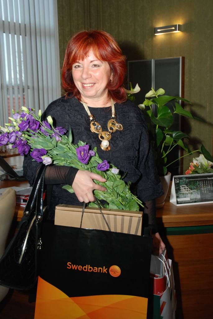 Skolotāja no “Swedbank” dāvanā saņēma portatīvo datoru. Šādu balvu Liepājas izcilākajiem skolotājiem “Swedbank” pasniedz jau 14. reizi.