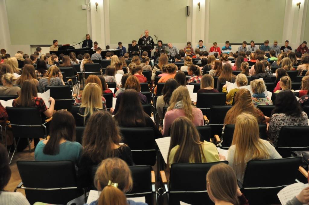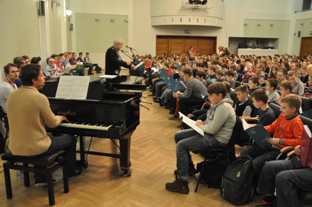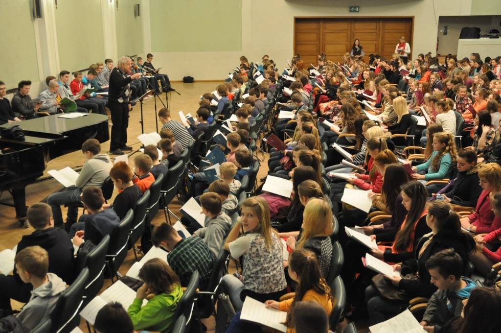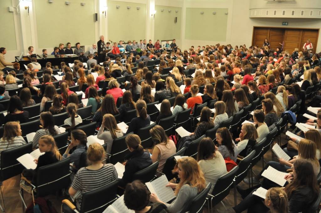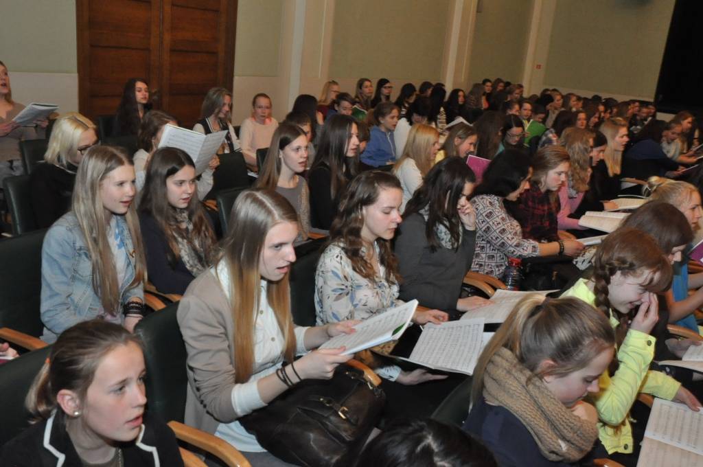 Piedāvājam foto no Liepājas Latviešu biedrības nama, kur pirmdien, 13. aprīlī, notika skolu koru kopmēģinājums, gatavojoties XI Latvijas skolu jaunatnes dziesmu un deju svētkiem!