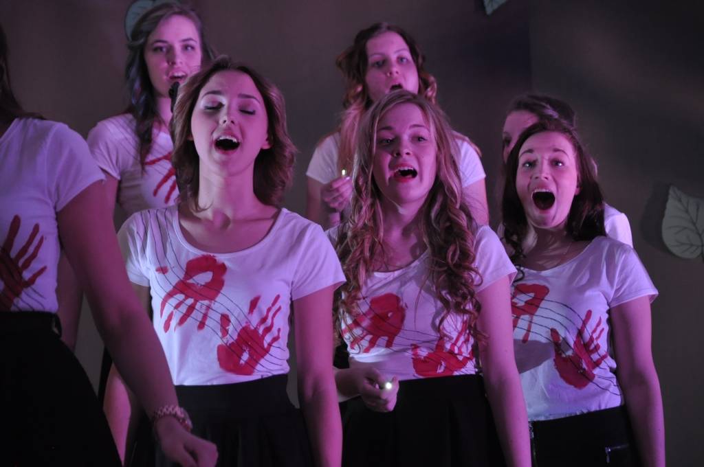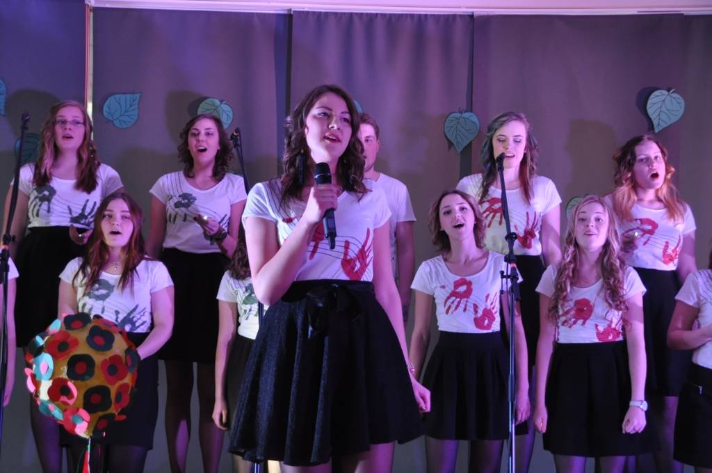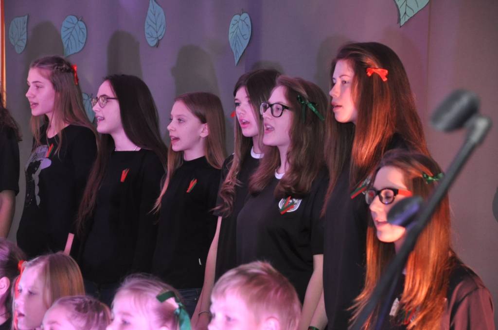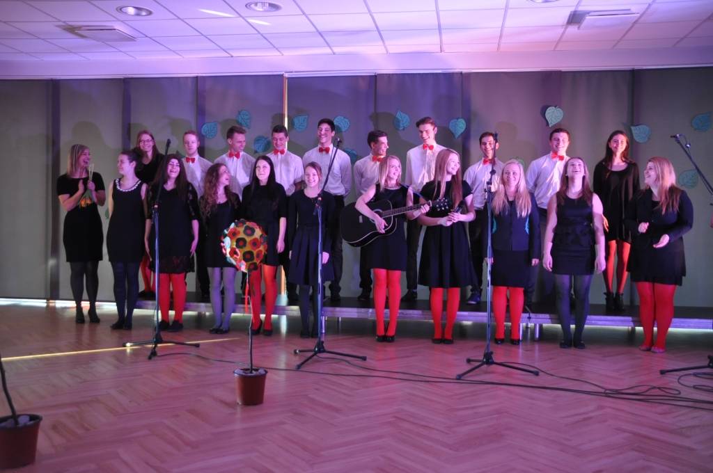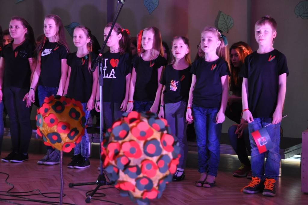 Tajos piedalījās sešu izglītības iestāžu izveidotie kori 16-20 skolēnu sastāvā no dažādām klasēm, kuri izpildīja dziesmu par Liepāju.