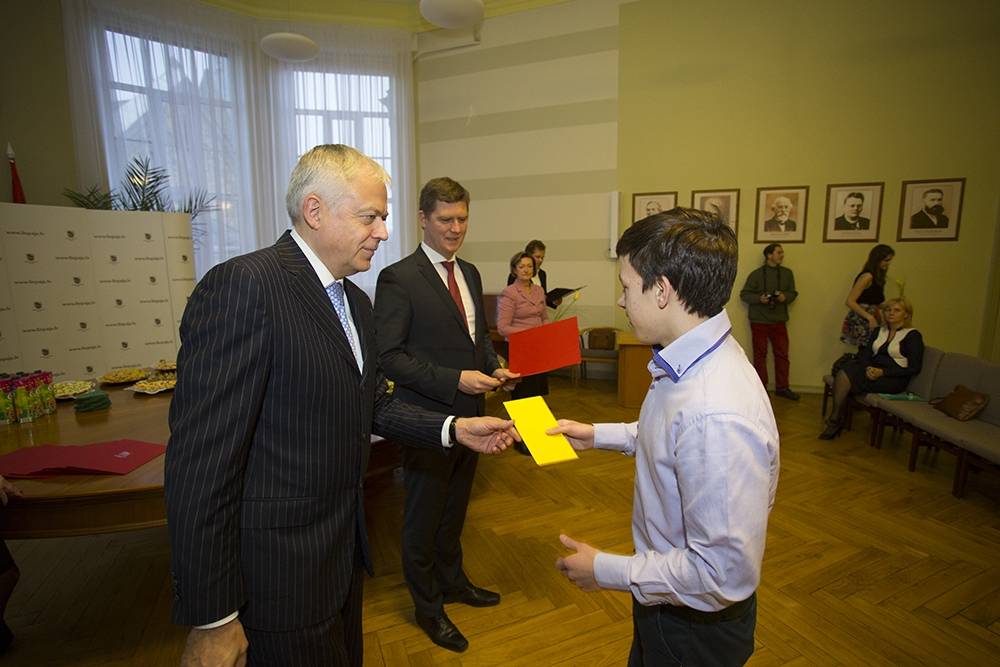 Skolēni saņēma Liepājas Domes pateicības rakstus un naudas prēmijas 70 eiro apmērā.