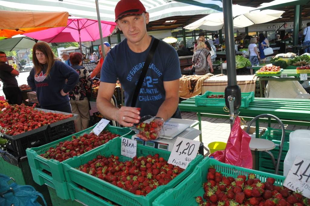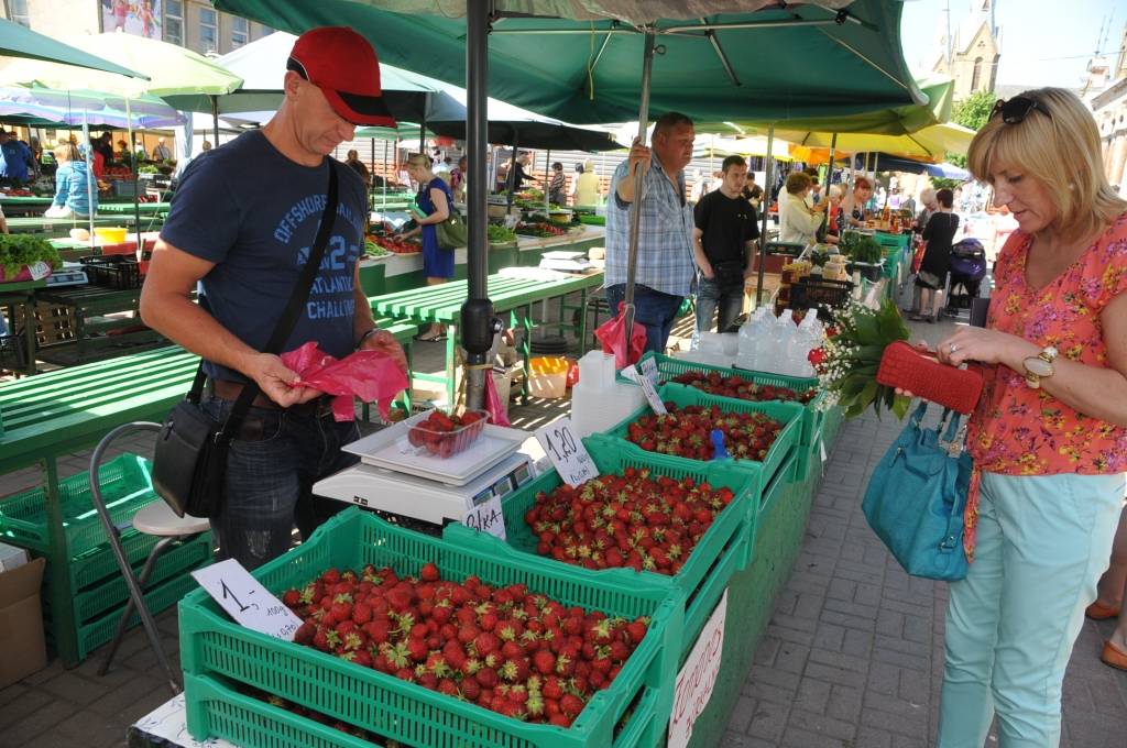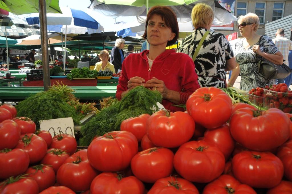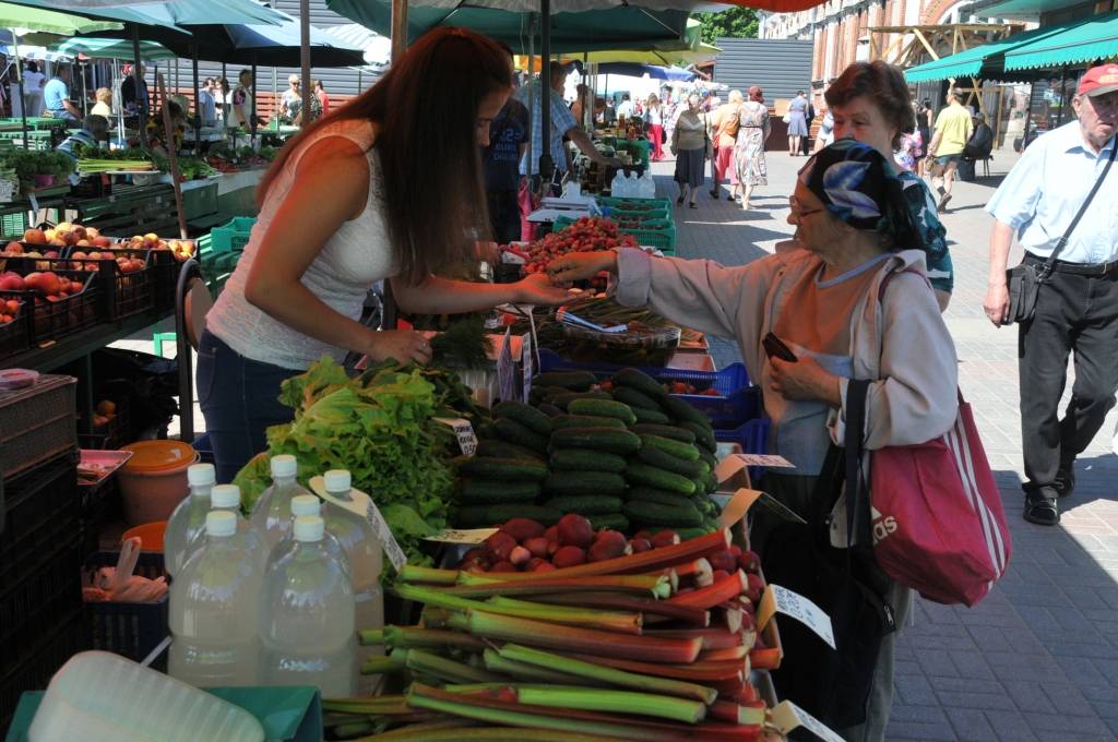 Liepājas Pētertirgū aktīva tirdzniecība ar pašmājās audzētiem labumiem norit pilnā sparā.