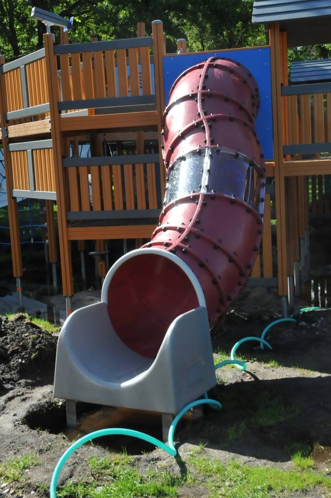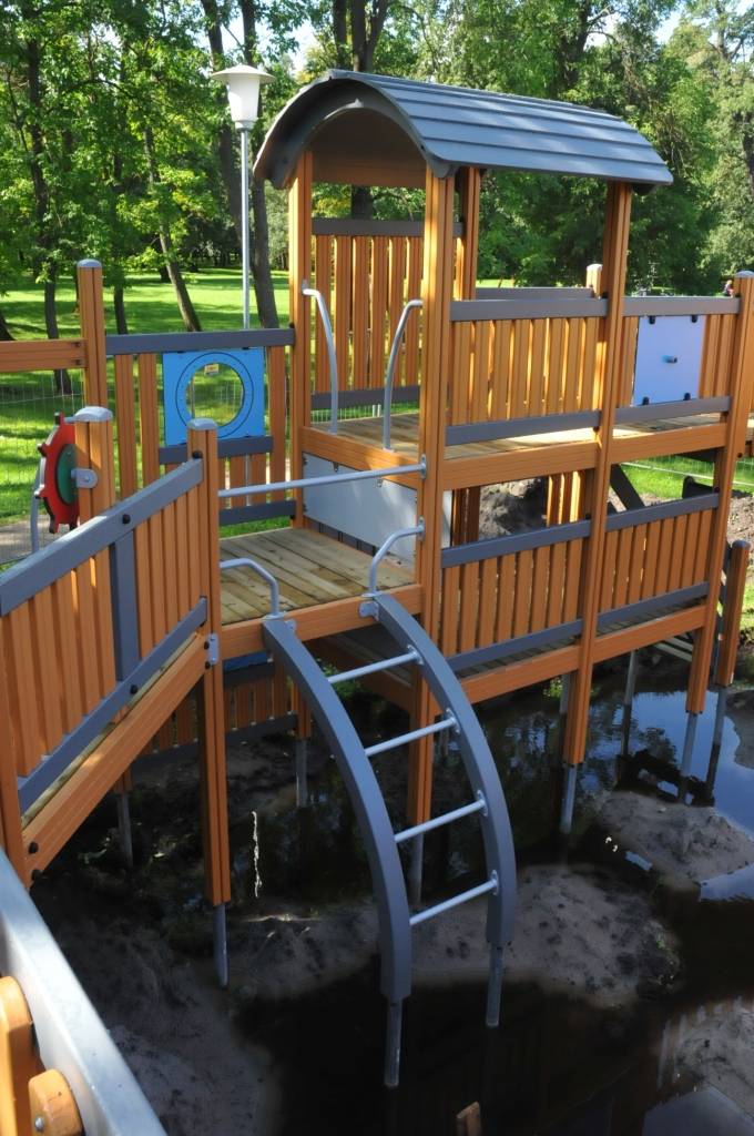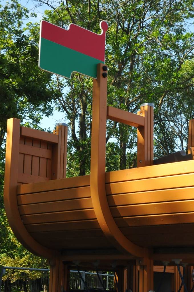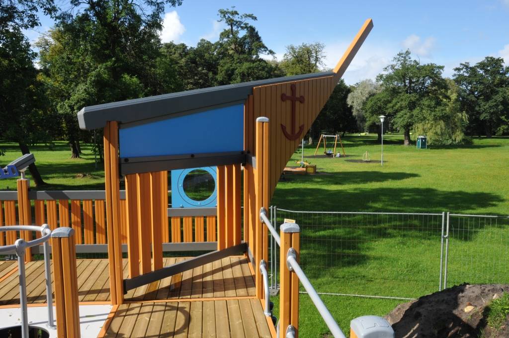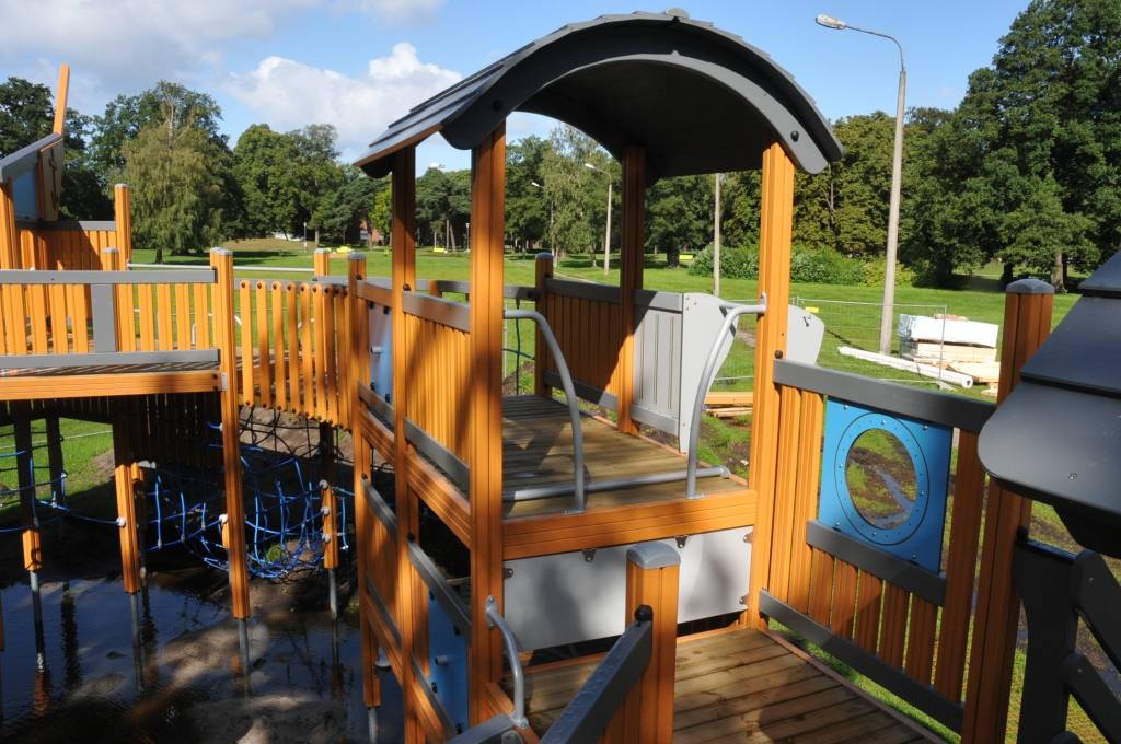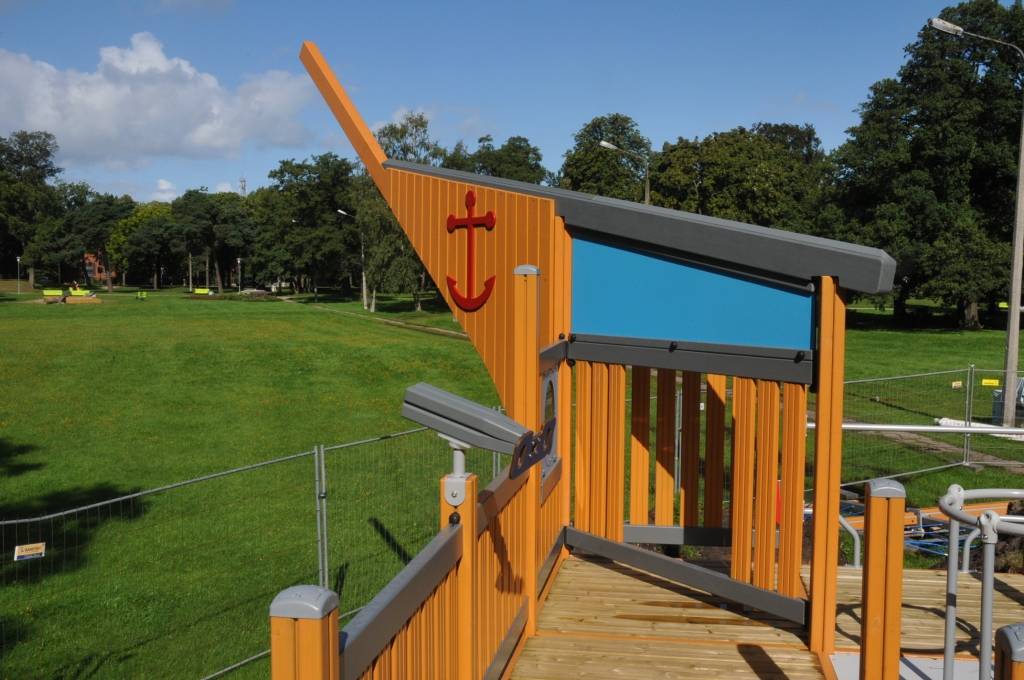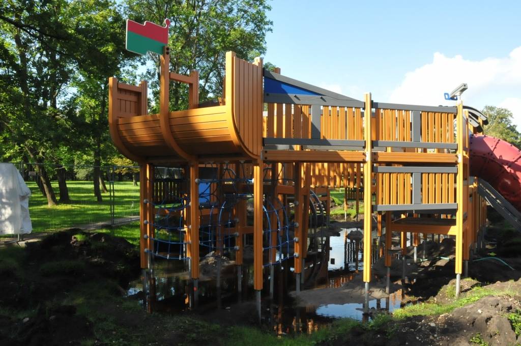 Liepājā, Raiņa parkā, top bērnu rotaļu laukuma iekārta “Pirātu kuģis”.