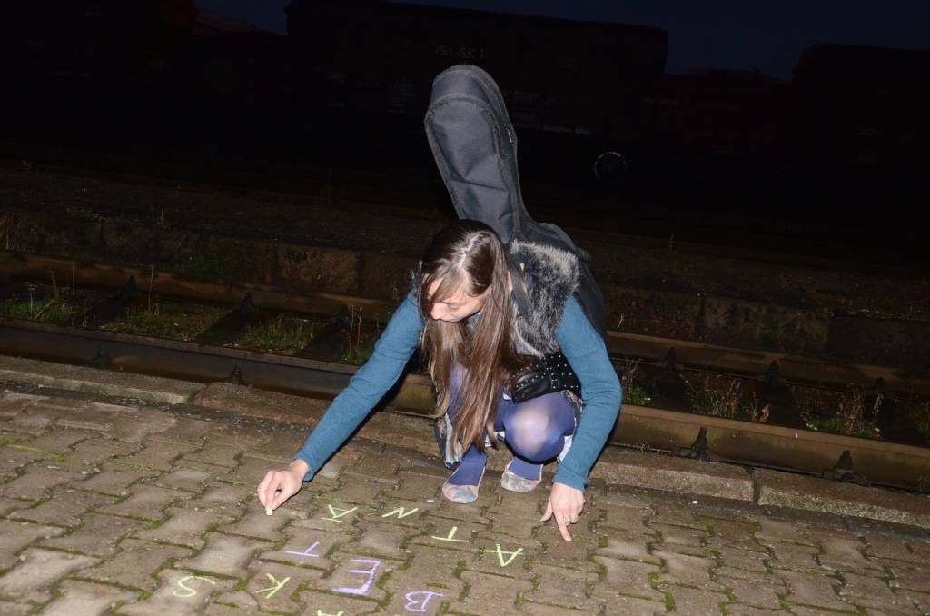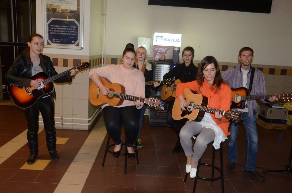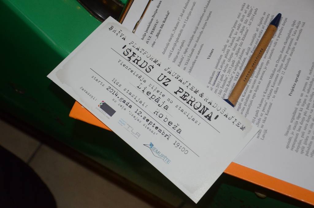 PAPILDINĀTS AR VIDEO. Liepājā Dzejas dienu laikā 12. septembra vakarā Dzelzceļa stacijā ar devīzi “Biļete līdz Robežai” notika muzikāli – literāra interaktīva akcija “Sirds uz perona”. Tajā piedalījās jaunie dzjenieki, dziesminieki un dzejas mīļotāji.