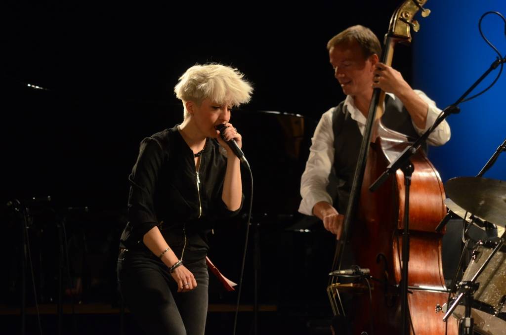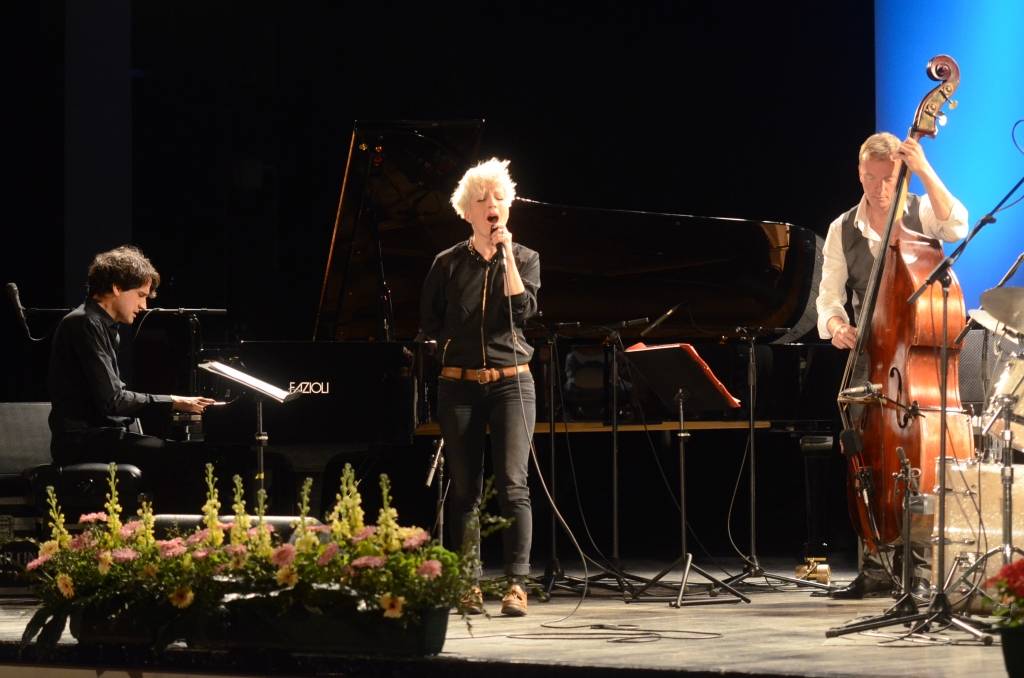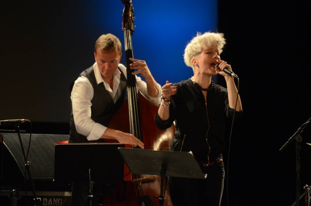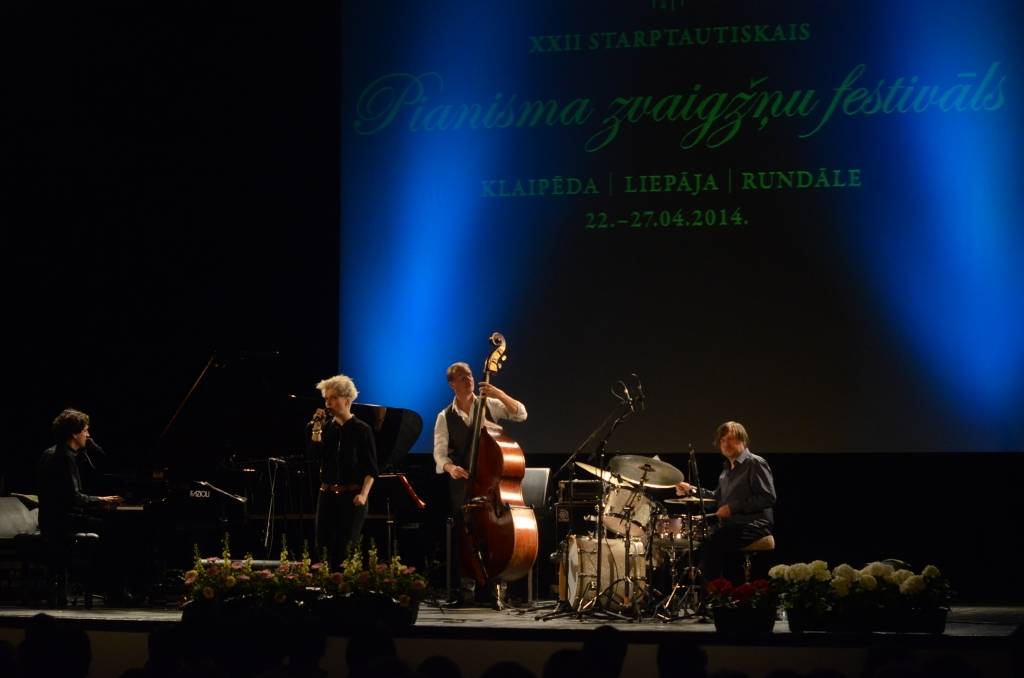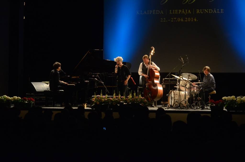 PAPILDINĀTS AR VIDEO. Starptautiskā Pianisma zvaigžņu festivāla koncertā “Franču džezs” piektdien, 25. aprīlī, Liepājas Latviešu biedrības namā uzstājās Batista Trotiņona ansamblis un dziedātāja Žanna Adeda.