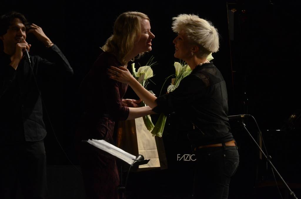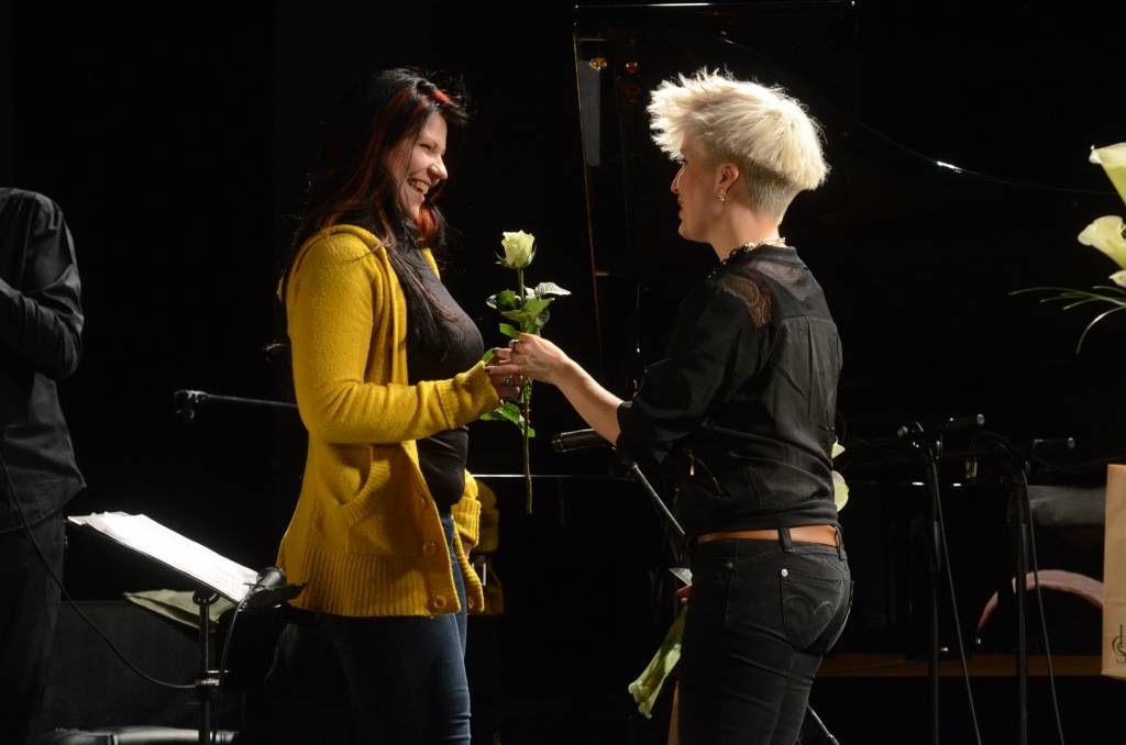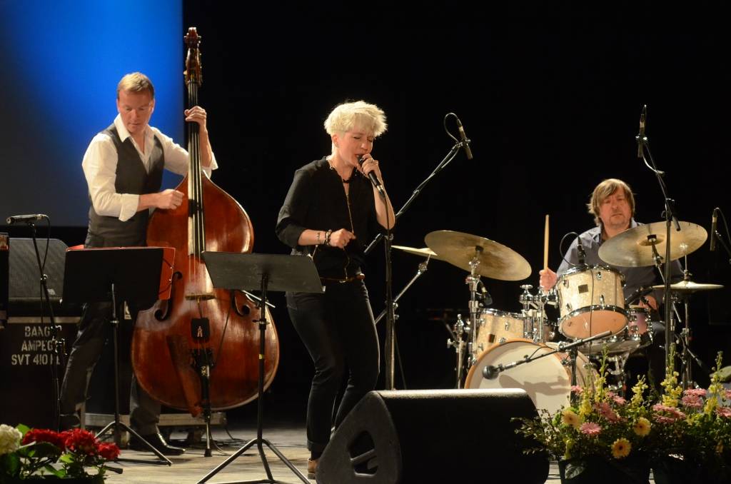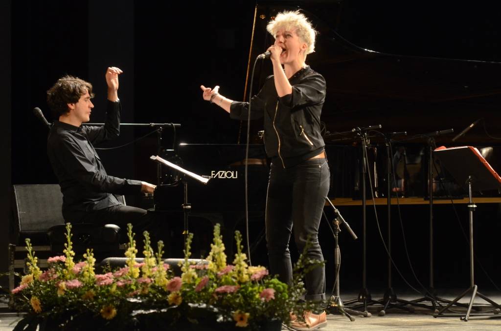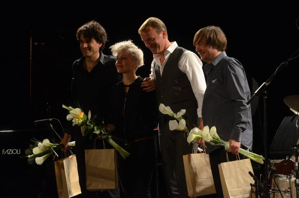 PAPILDINĀTS AR VIDEO. Starptautiskā Pianisma zvaigžņu festivāla koncertā “Franču džezs” piektdien, 25. aprīlī, Liepājas Latviešu biedrības namā uzstājās Batista Trotiņona ansamblis un dziedātāja Žanna Adeda.
