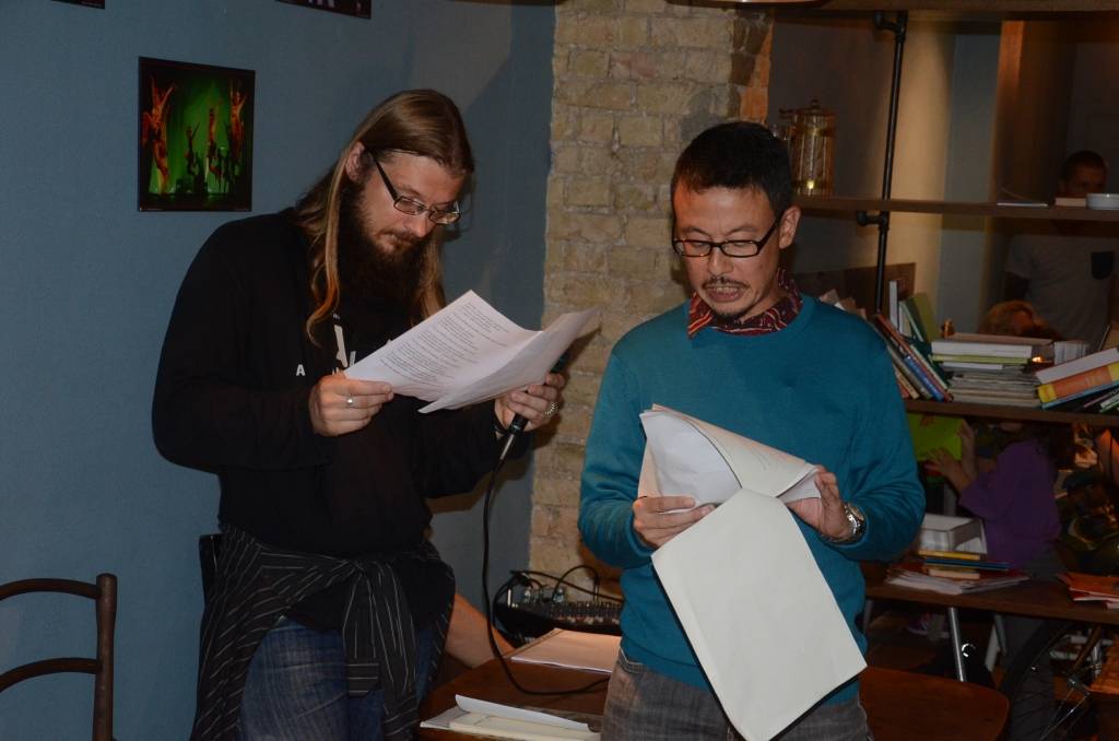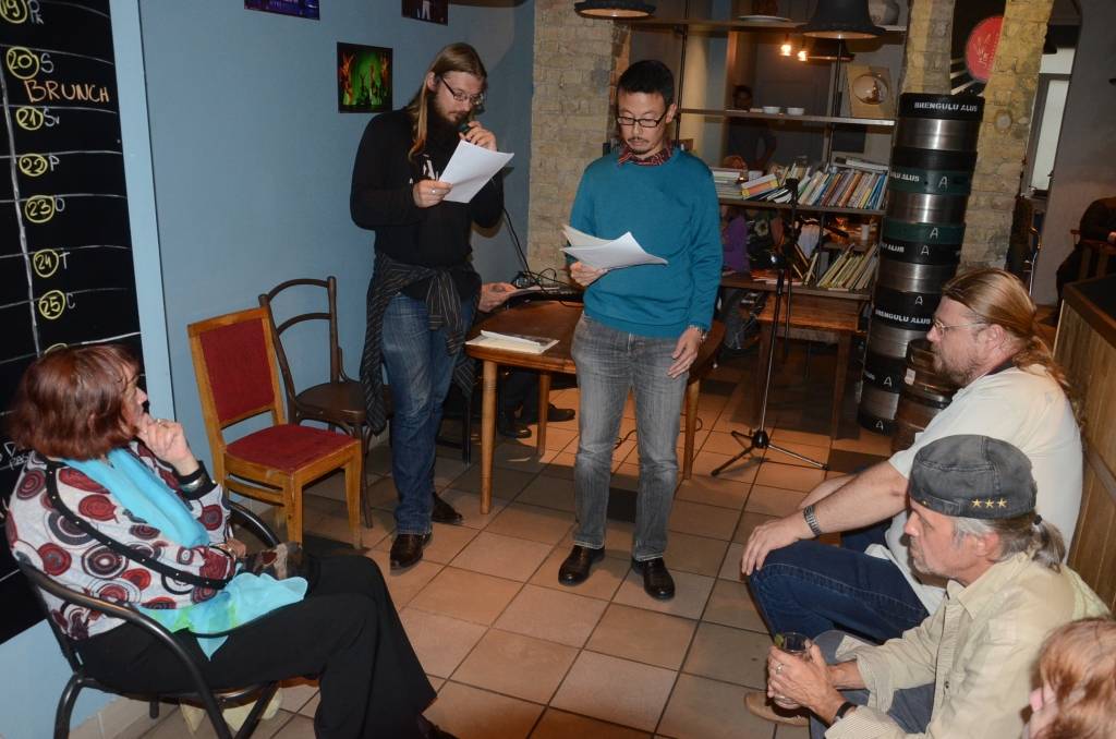 Liepājā Dzejas dienu laikā kafejnīcā “Darbnīca” viesojās Japānas dzejnieks Goro Takano. Autora tekstus Ivara Šteinberga tulkojumā lasīja Liepājas dzejnieks Valentīns.