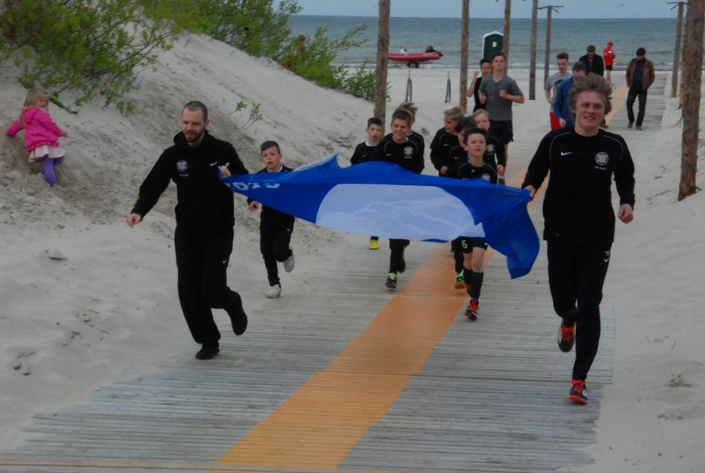 Vispirms Zilais karogs tika pacelts Dienvidrietumu pludmalē. No turienes ceļu uzsāka otrs karogs, ko nesa florbola kluba “Kurši” kapteinis Kaspars Klamers kopā ar Latvijas čempioniem “Kuršiem U10” trenera Mārtiņa Krūma vadībā.