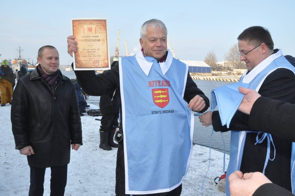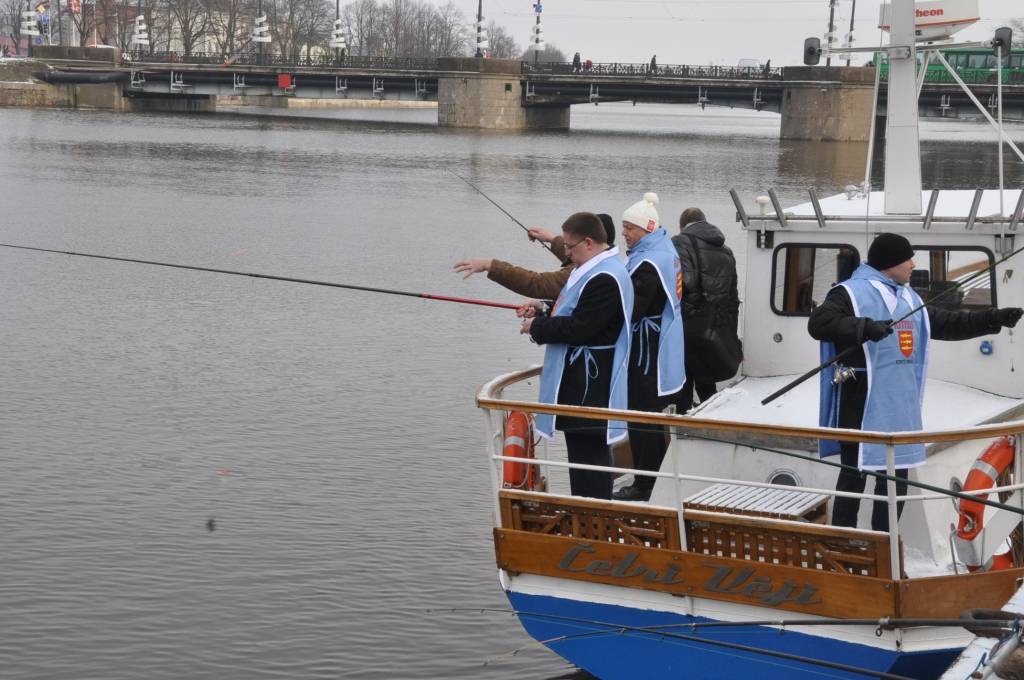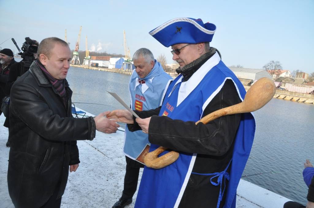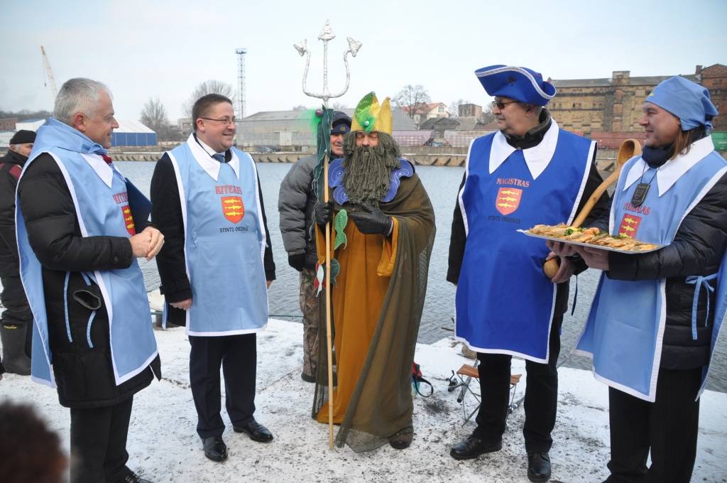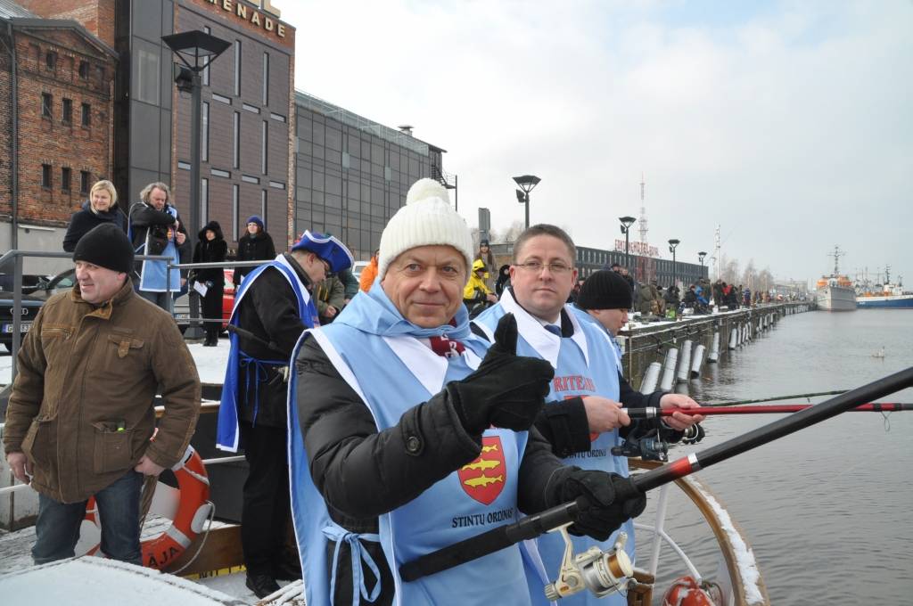 Otrdien, 3. februārī, pie viesnīcas “Hotel Promenade”, notika Liepājas pašvaldības uzņemšana Stinšu ordenī un simboliska stinšu makšķerēšana.