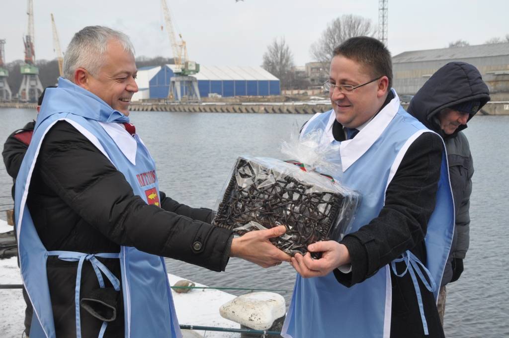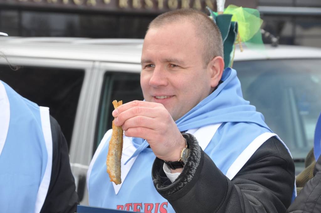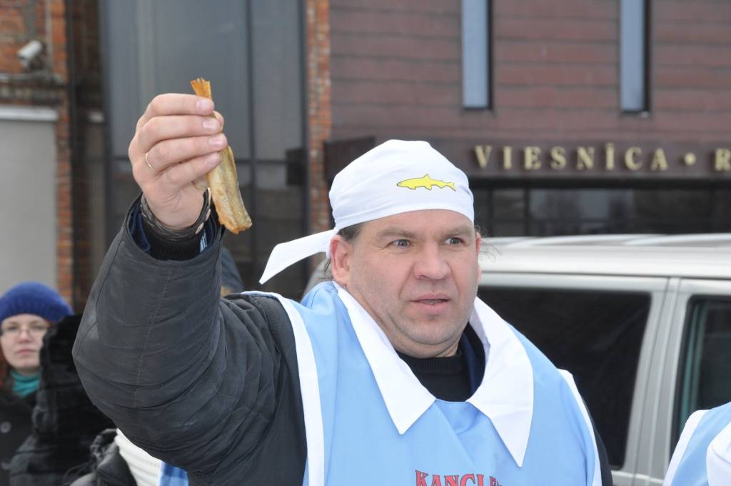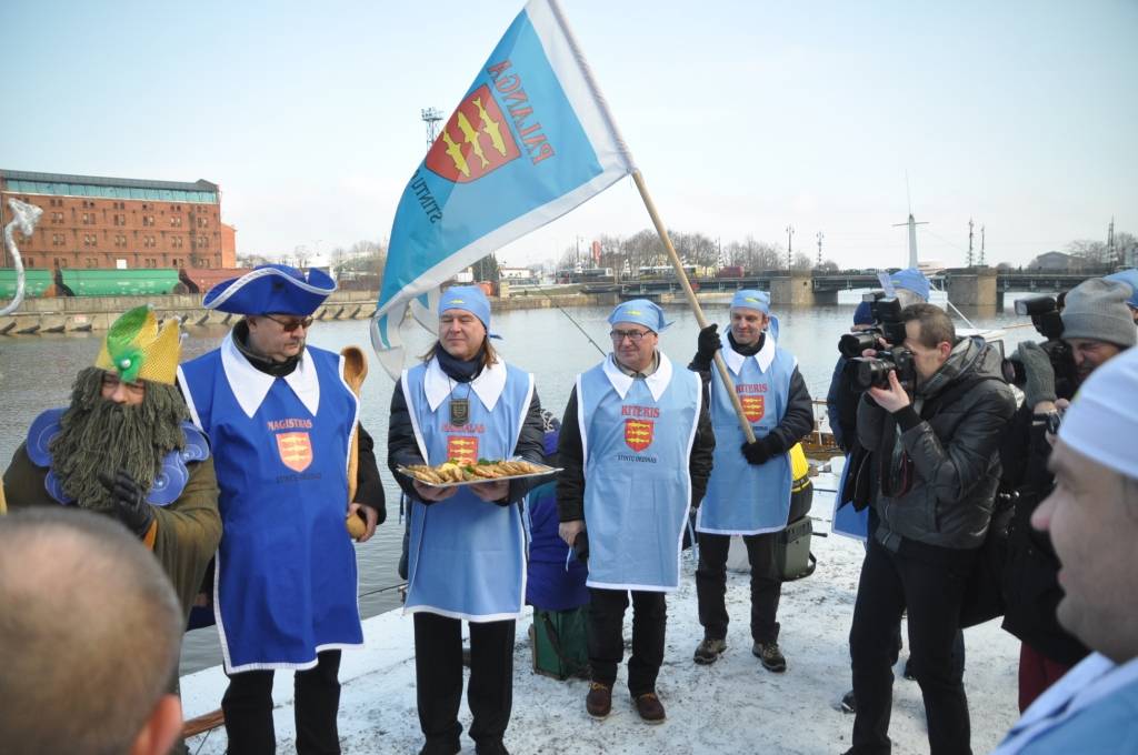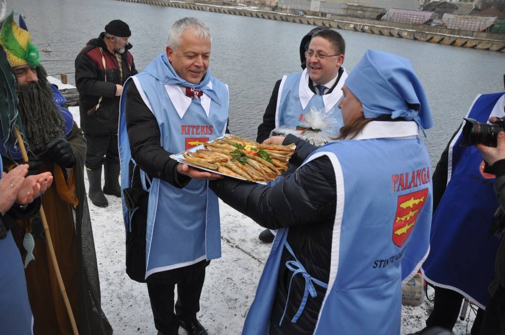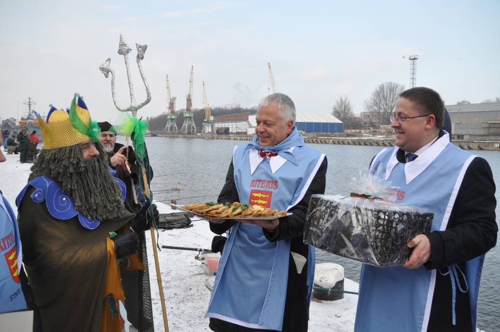 Otrdien, 3. februārī, pie viesnīcas “Hotel Promenade”, notika Liepājas pašvaldības uzņemšana Stinšu ordenī un simboliska stinšu makšķerēšana.