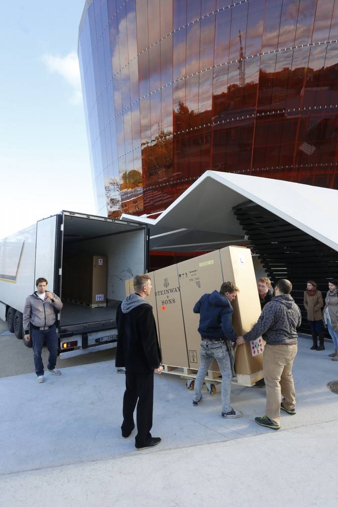 Pirmdien, 26.oktobrī, koncertzālē “Lielais dzintars” svinīgi tika saņemti no Hamburgas atvestie divi augstas klases koncertflīģeļi, kas iegādāti ar Liepājas pilsētas Domes atbalstu.