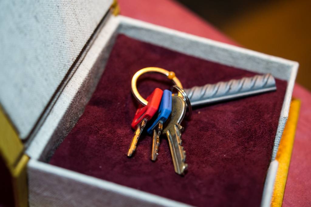 Velmers izteicās, ka simboliski nodotās “atslēgas” izmēra ziņā nevar salīdzināt ar metalurģijas milzi, toties ar tām ir iespējams iedarbināt “Liepājas metalurga” elektrokausēšanas ceha krāsni.