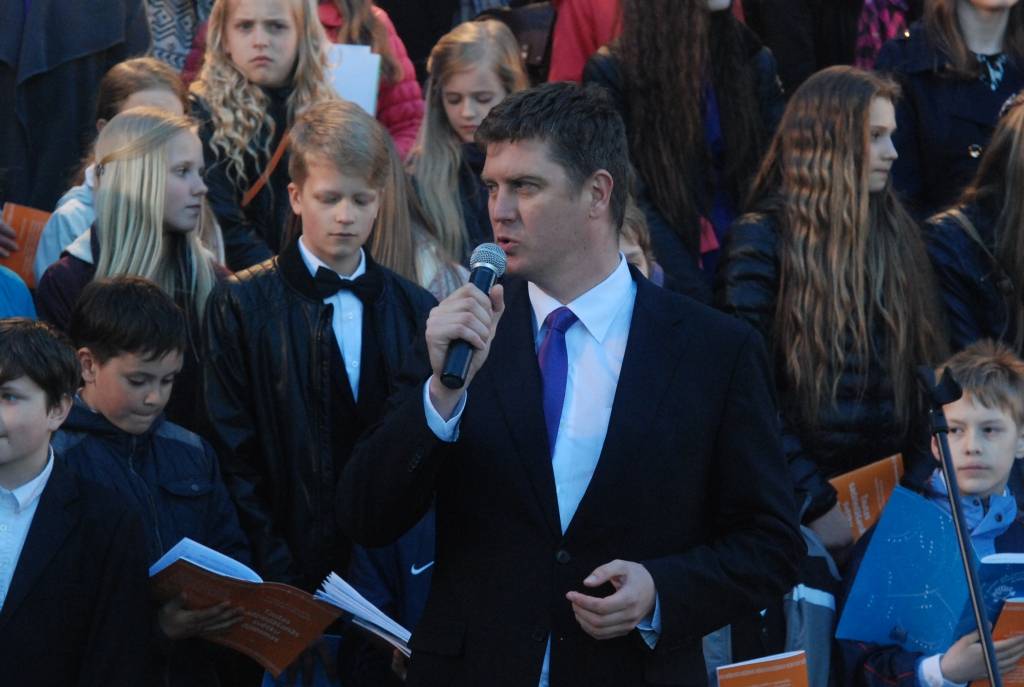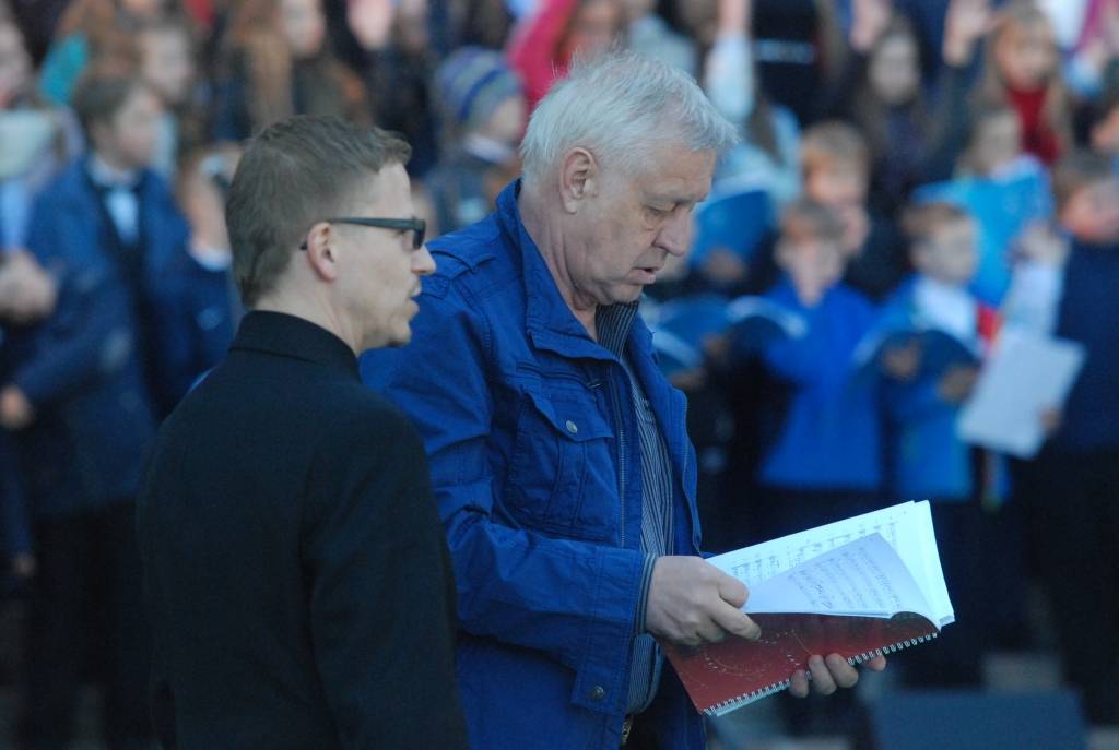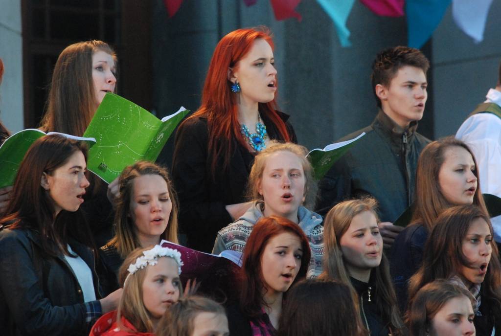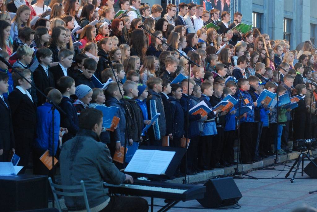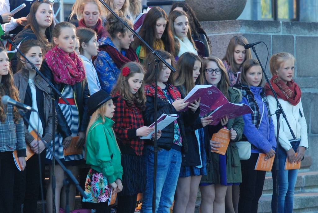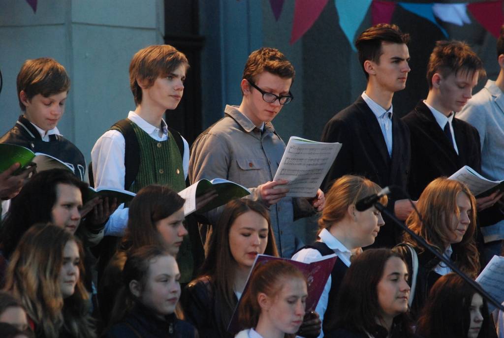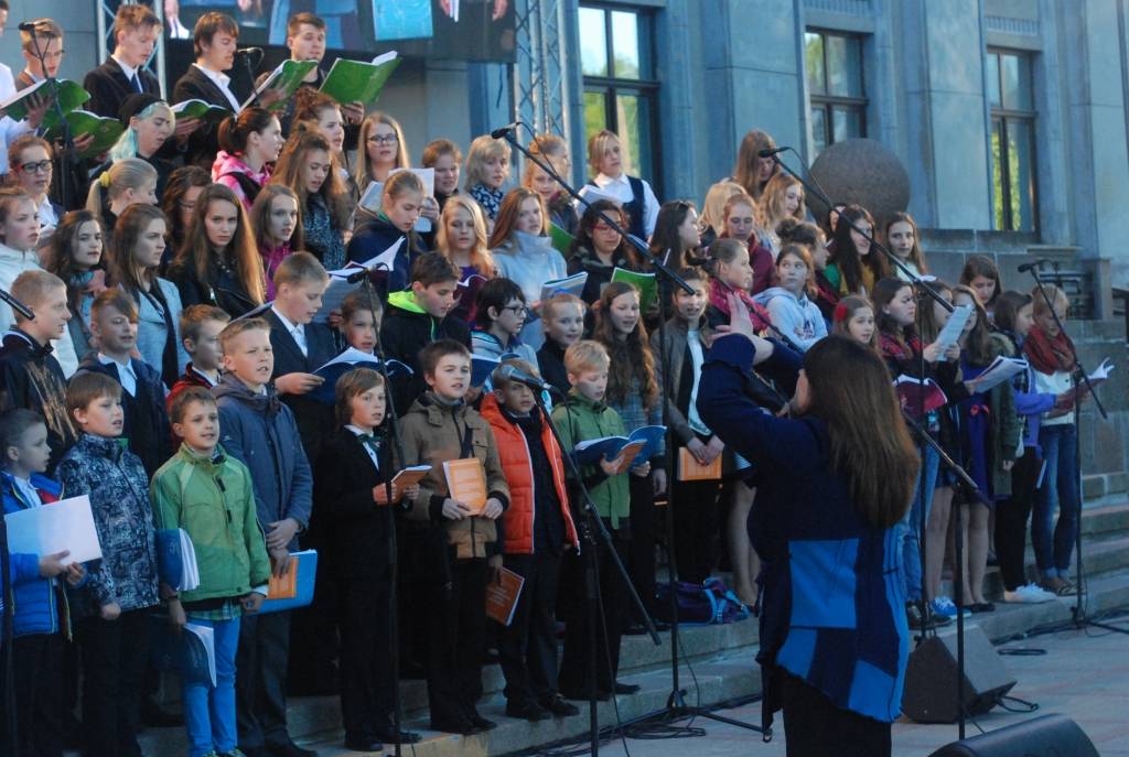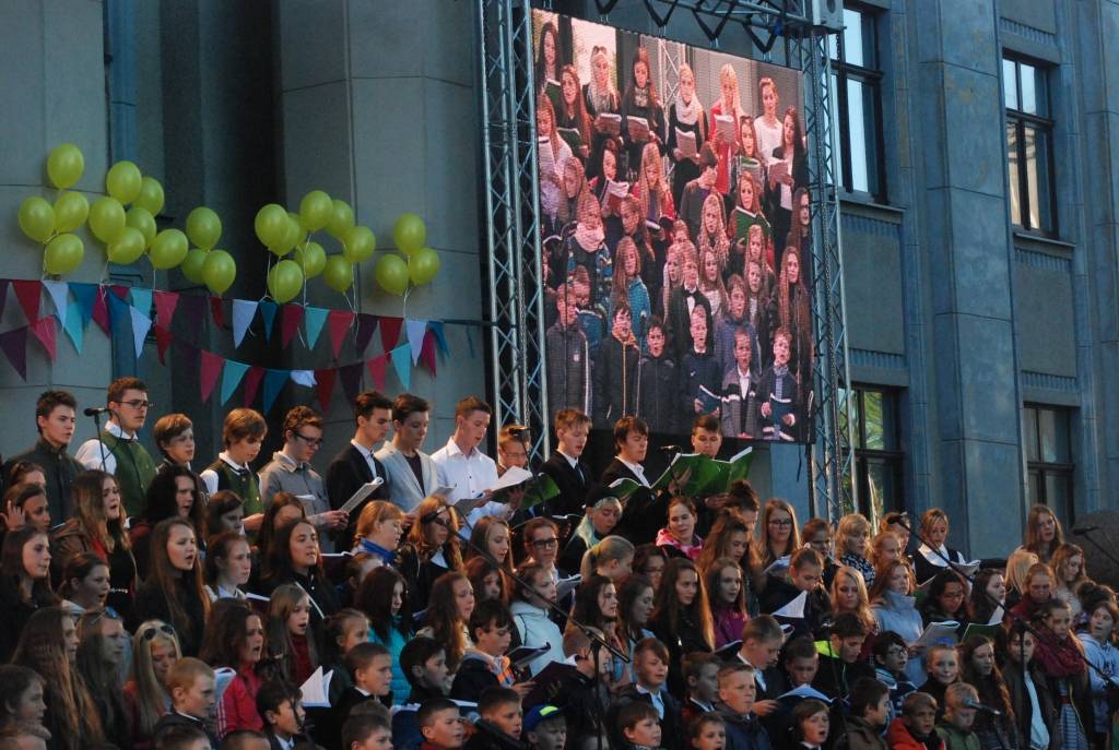 Universitātes kāpnes tapa par skatuvi koriem, kuri izpildīja dziesmas no skolu jaunatnes Dziesmu svētku repertuāra. Programmā bija arī Renāra Kaupera dziesma “Mana dziesma”.