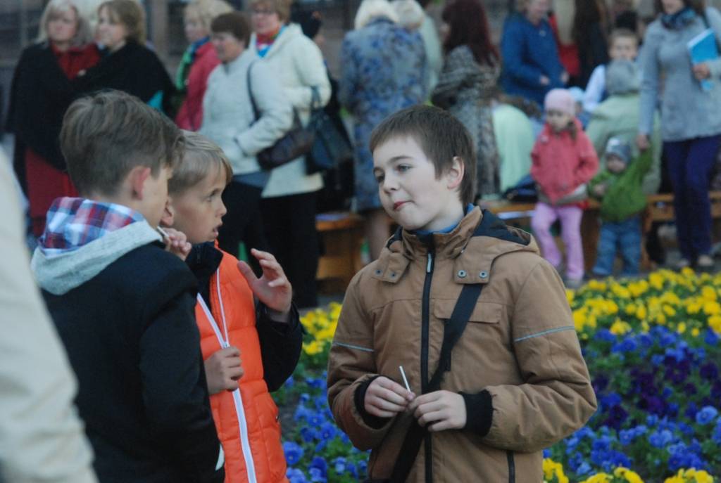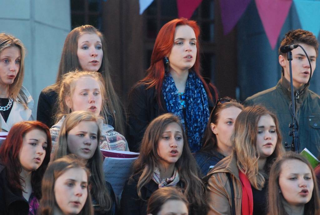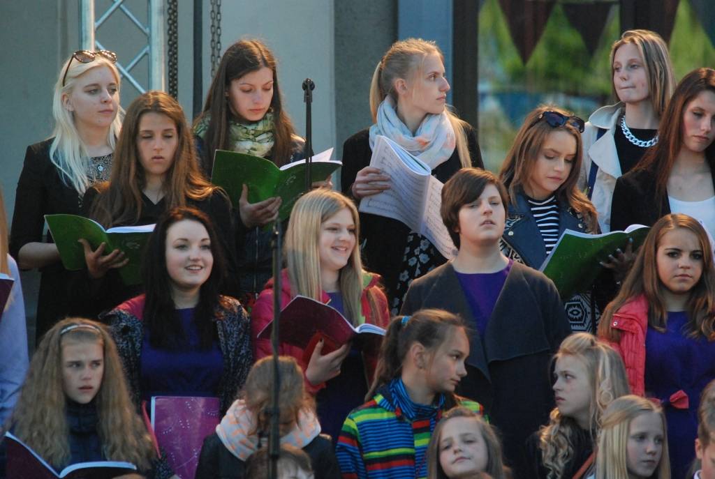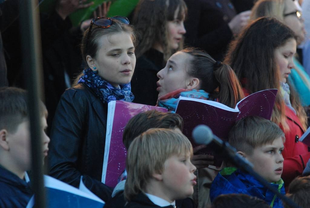 Aptuveni divu stundu garumā izmēģinājuši koncerta repertuāru, jaunie dziedātāji to septiņos vakarā publikai sniedza krāšņā koncertā.