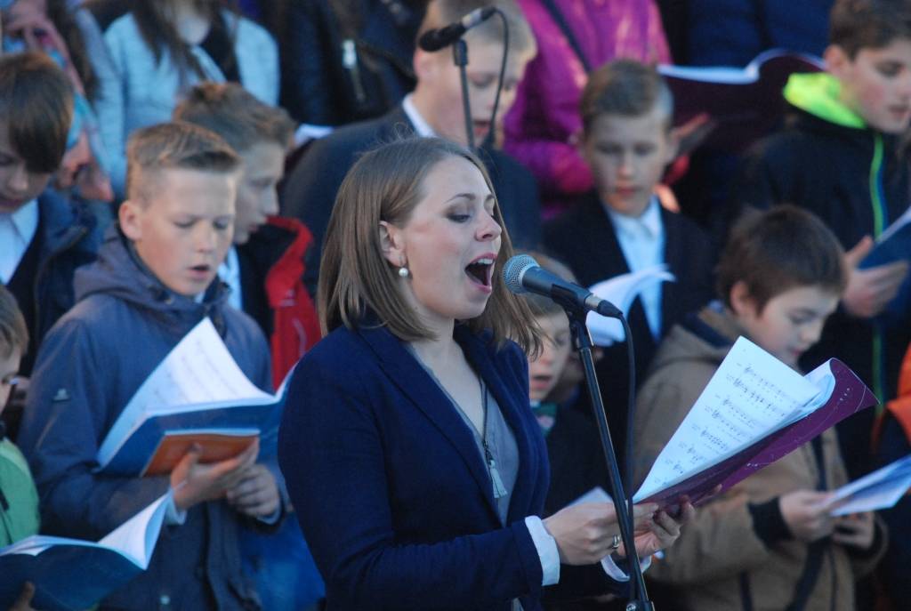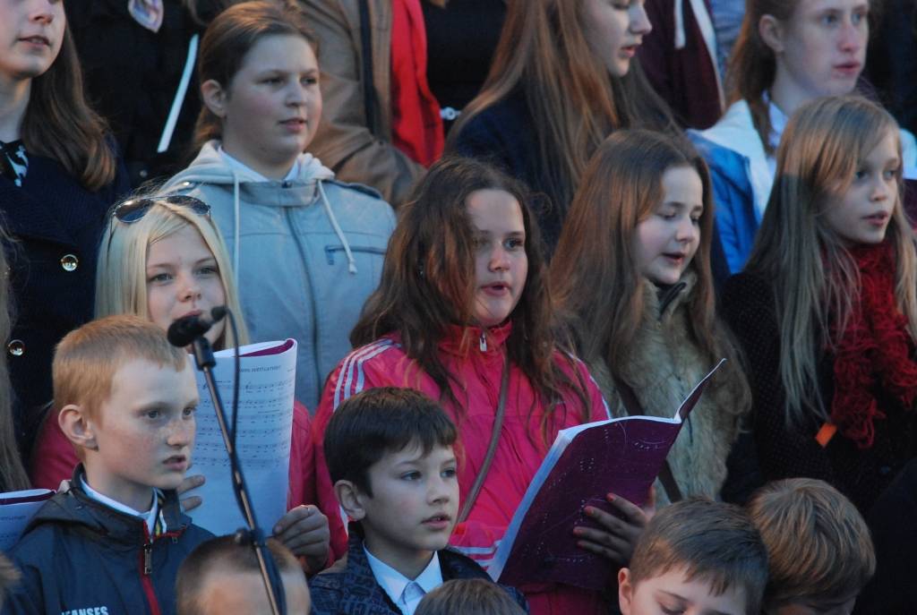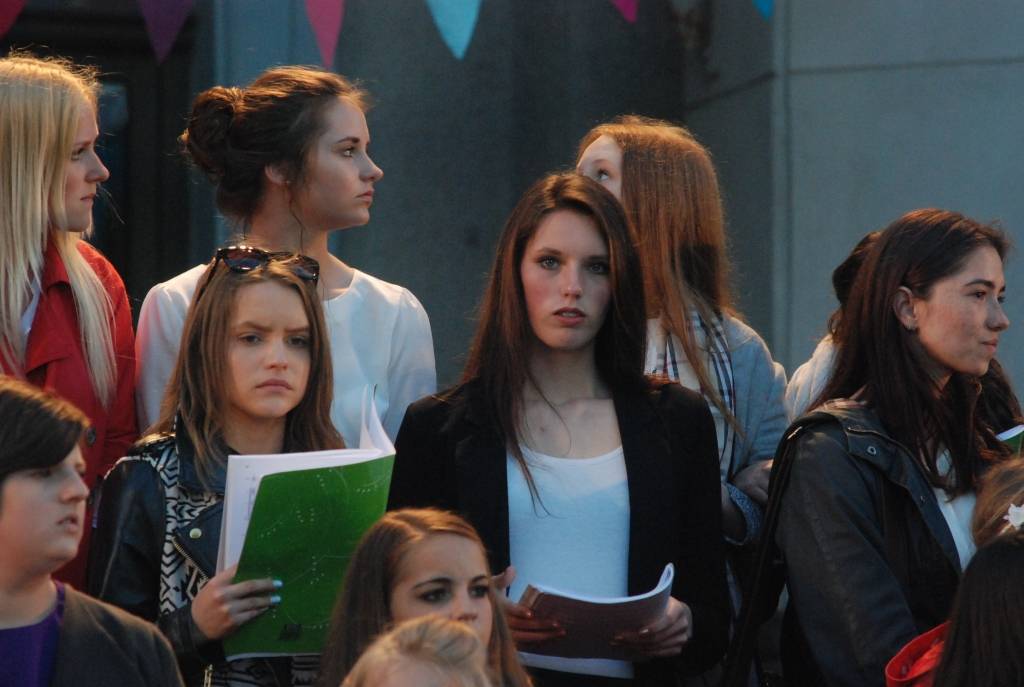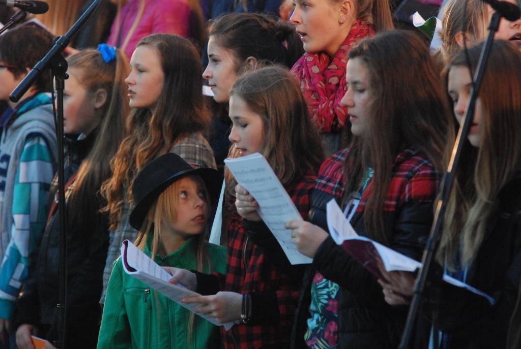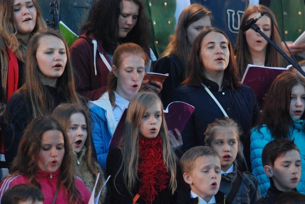 Aptuveni divu stundu garumā izmēģinājuši koncerta repertuāru, jaunie dziedātāji to septiņos vakarā publikai sniedza krāšņā koncertā.