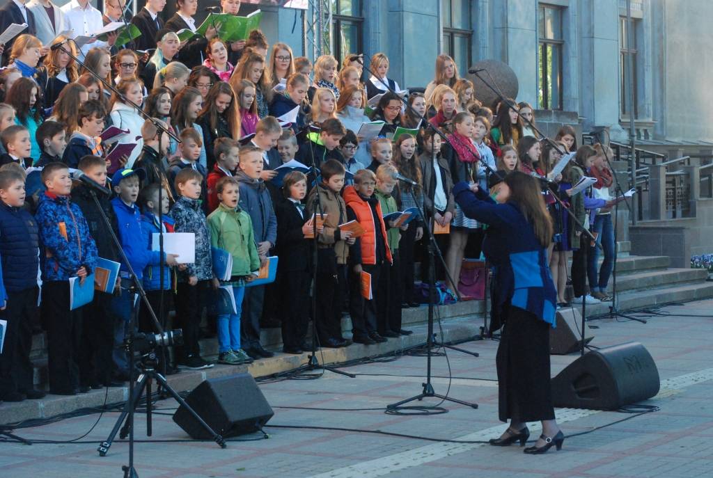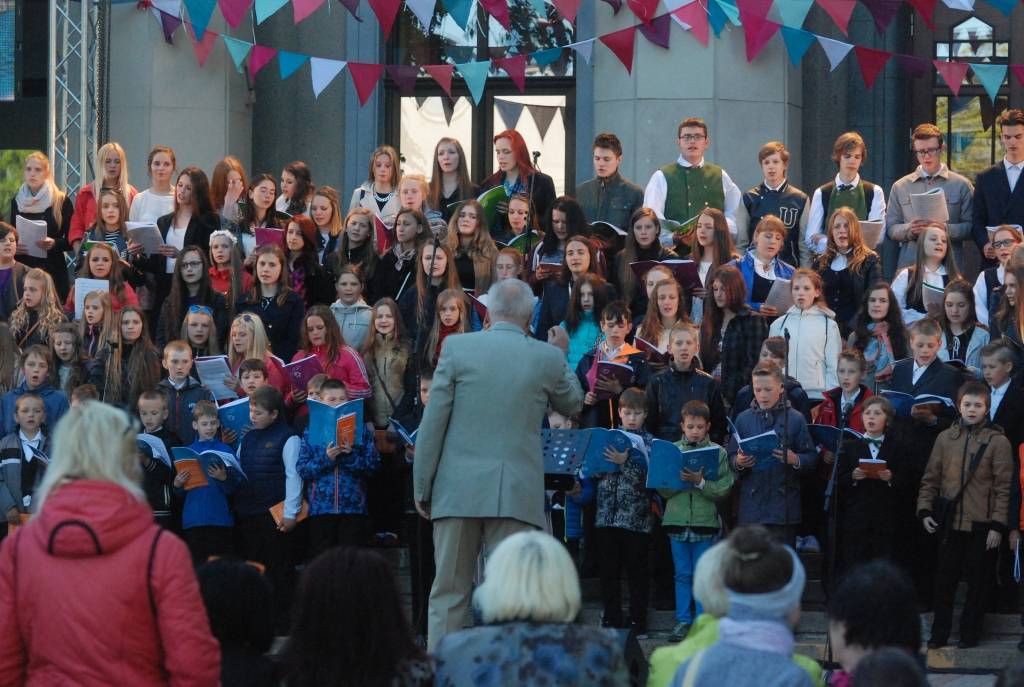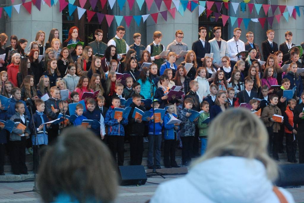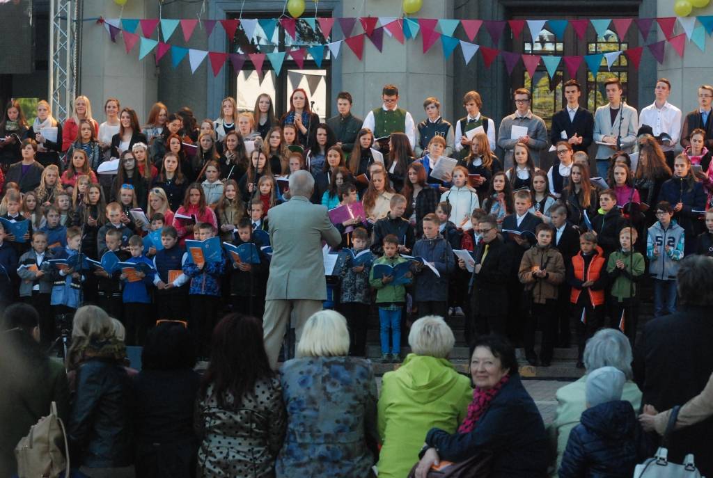 PAPILDINĀTS AR VIDEO. Piektdien, 29. maijā, uz kāpnēm pie Liepājas Universitātes pasākuma “Ģimenes svētki Liepājā” laikā notika Liepājas skolu koru koncerts.