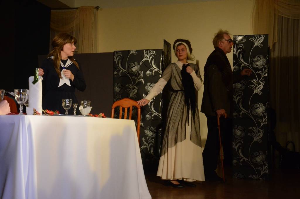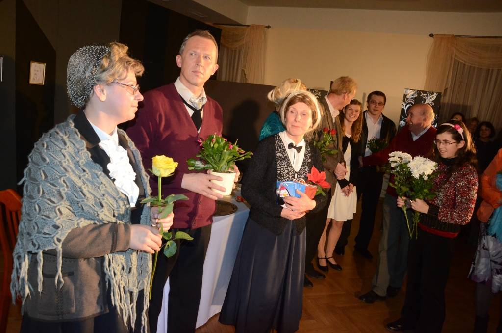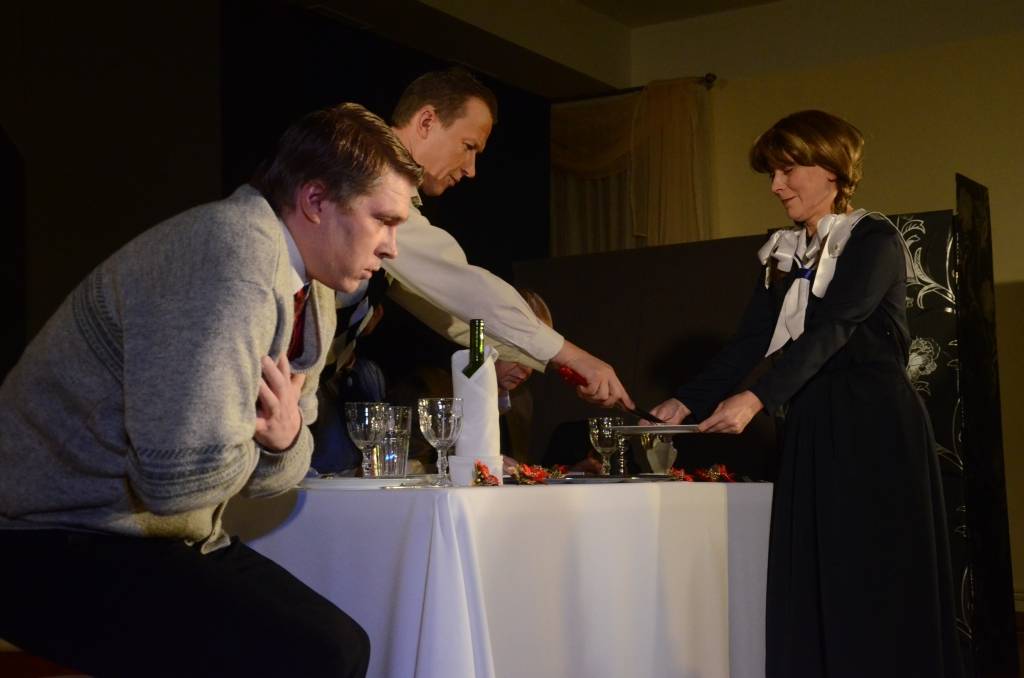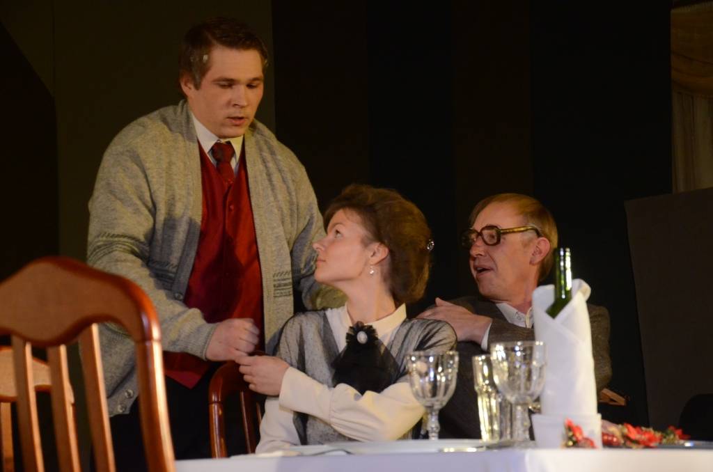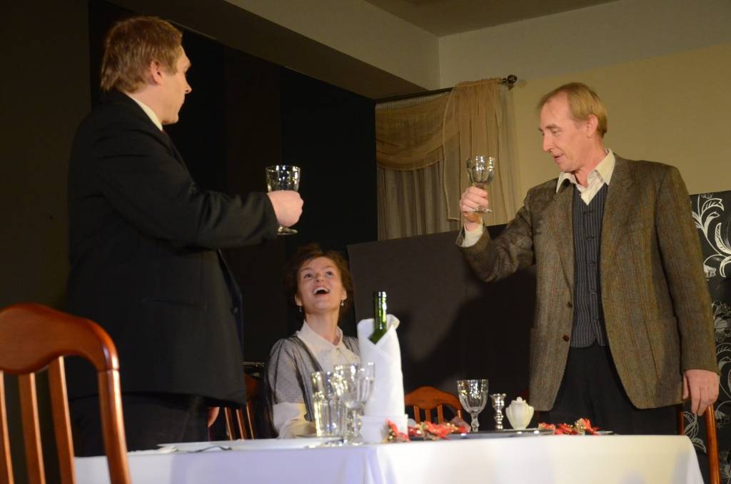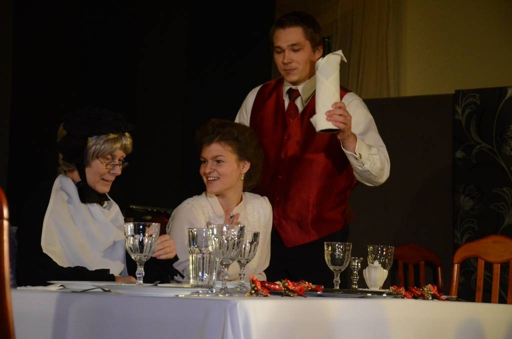 Liepājas Tautas teātris svētdien, 14. decembrī, Liepājas Latviešu biedrības nama Kamerzālē spēlēja pirmizrādi – Torntona Vaildera lugu “Ilgās Ziemassvētku pusdienas”.