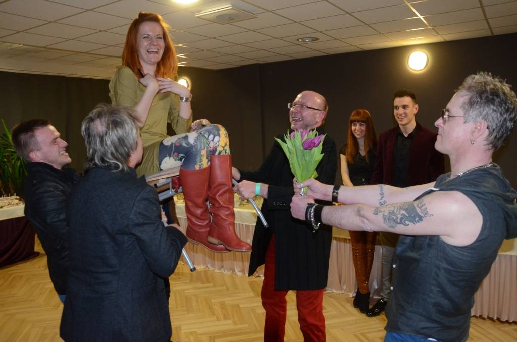 Mūziķis saņēma daudzas apsveikumus, notika kopīga fotogrāfēšanās. Liepājas Simfoniskā orķestra diriģents Jēkabs Ozoliņš jubilāram pat bija izcepis savus gardos eklērus.