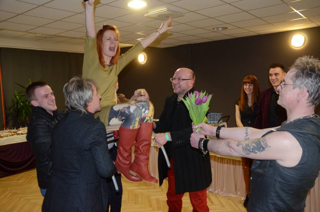 PAPILDINĀTS AR VIDEO. Liepājas rokmūziķis Ainars Virga svētdien, 6. aprīlī, Liepājas Olimpiskajā centrā pēc sava nospēlētā 50 gadu jubilejas koncerta “Kādā brīnišķā dienā” tika sumināts apaļajā jubilejā.