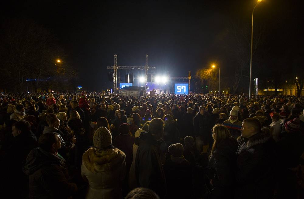 Liepājnieki un Liepājas viesi Rožu laukumā pulcējās jau no plkst. 23:00, kur ar izklaidējošu programmu uzstājās Lauris Reiniks kopā ar MC Orķestri, informē Kultūras pārvalde.