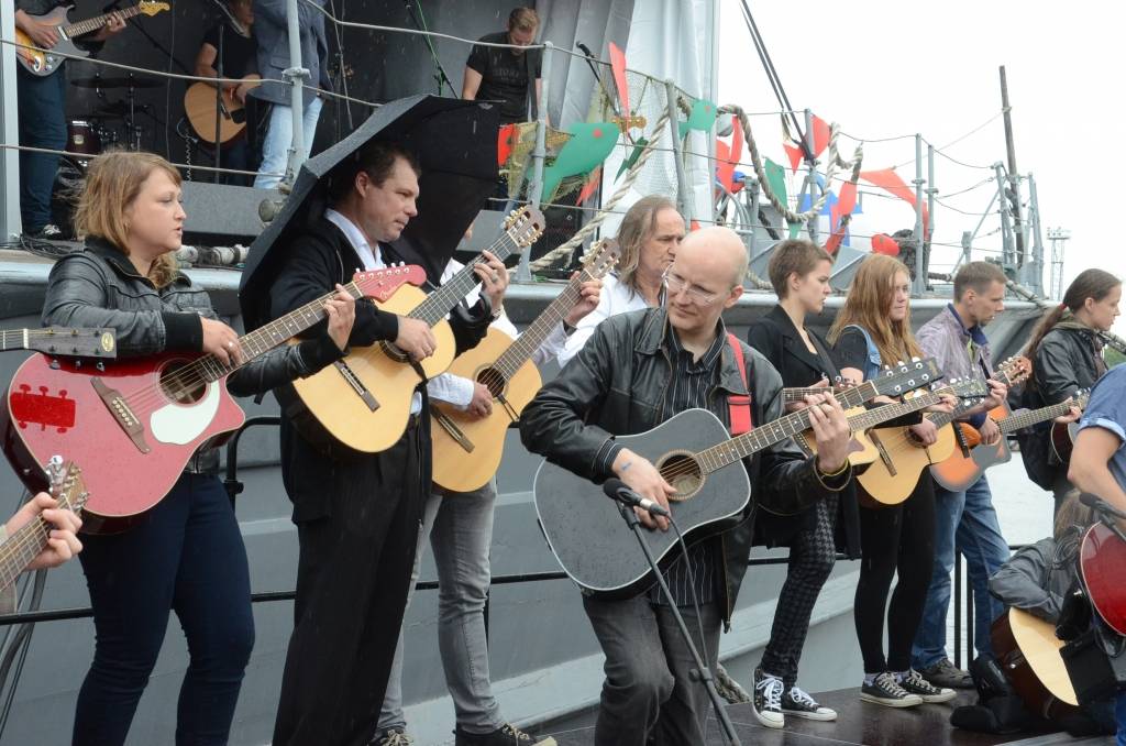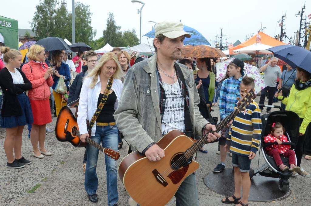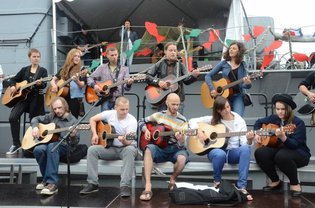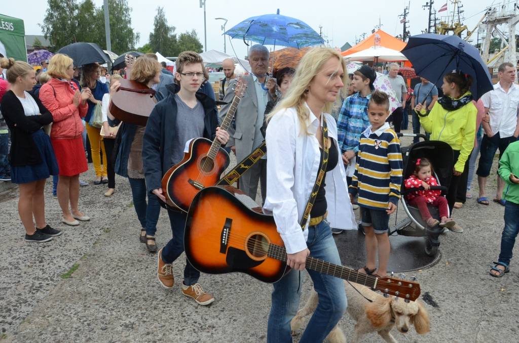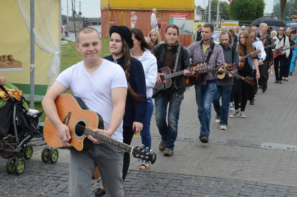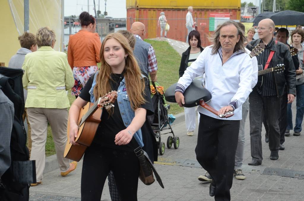 Promenādē ģitāristi saspēlējās kopā ar Liepājas mūziķi Ivo Fominu. Jūras svētku laikā visu pēcpusdienu ģitāristi muzicē uz vienas no skatuvēm.